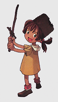 Upon hearing of the Wizard of Darkness’ approach, King Allucaneet ordered the Hero Summon spell to be cast. The Hero Summon spell is a special magical power that is handed down, generation to generation, amongst only the princesses of Allucaneet. A Closely guarded state secret, this power is only used as a last resort when the kingdom is faced with great danger. It grants its user the ability to summon a hero through incantations made over a specially prepared crystal of Binchotite. The summoned hero called upon to defeat the Wizard of Darkness was a two-sworded fencer named Musashi. Musashi accepted the princess’ task and set on a journey to defeat the Wizard of Darkness.