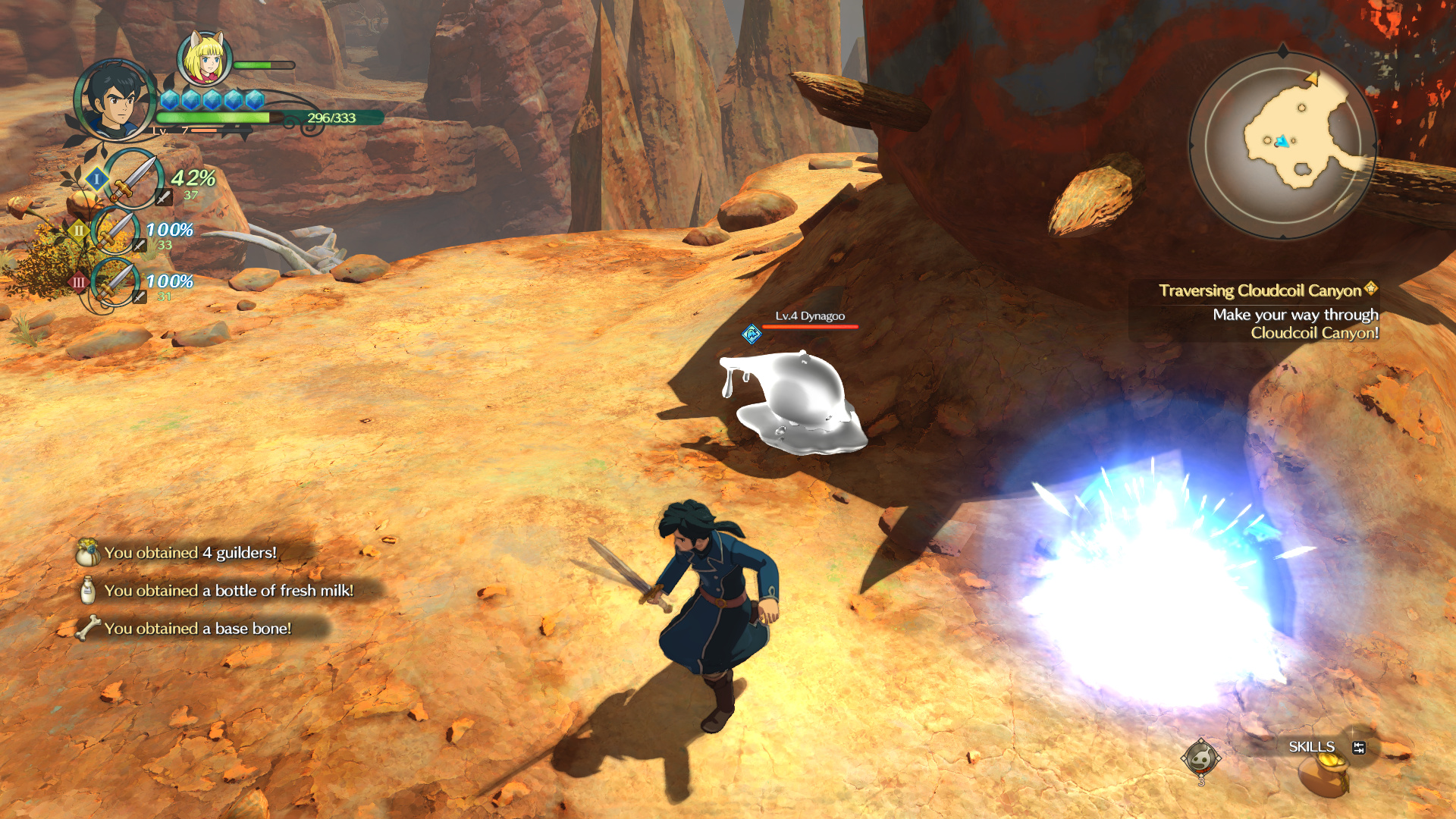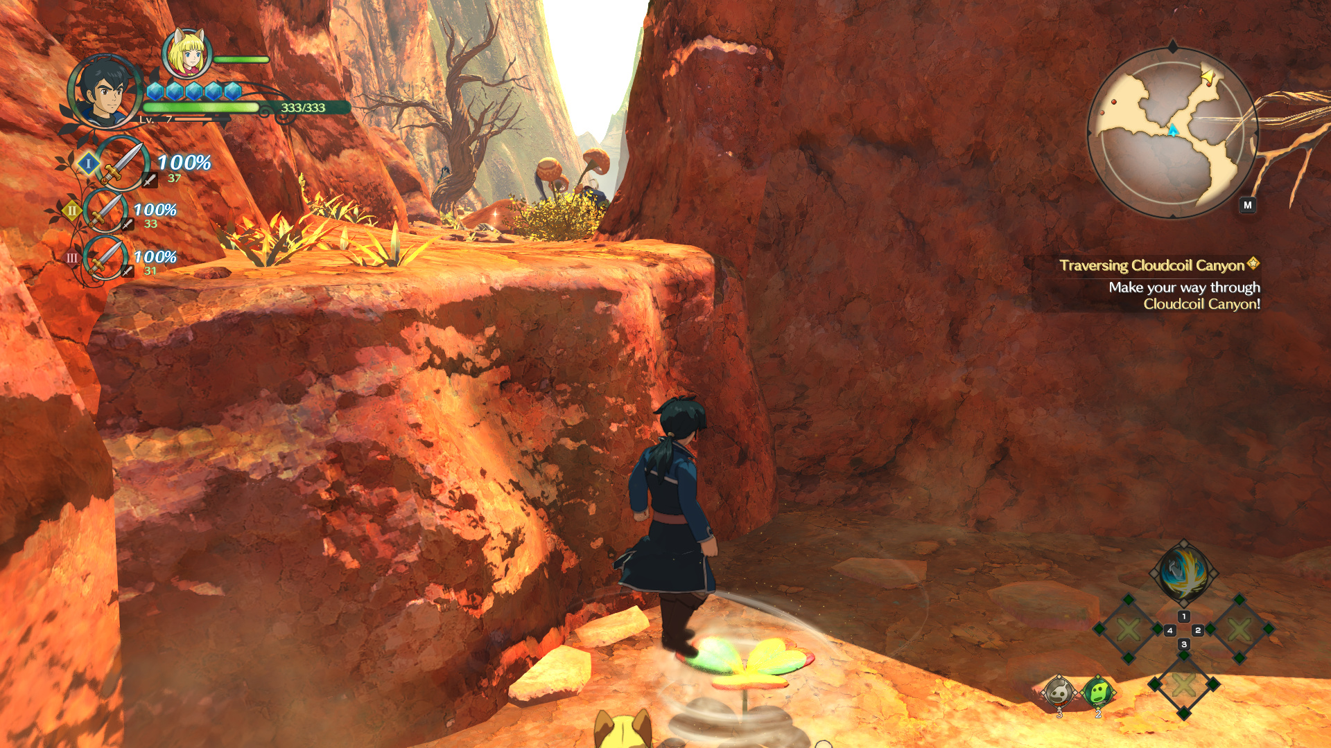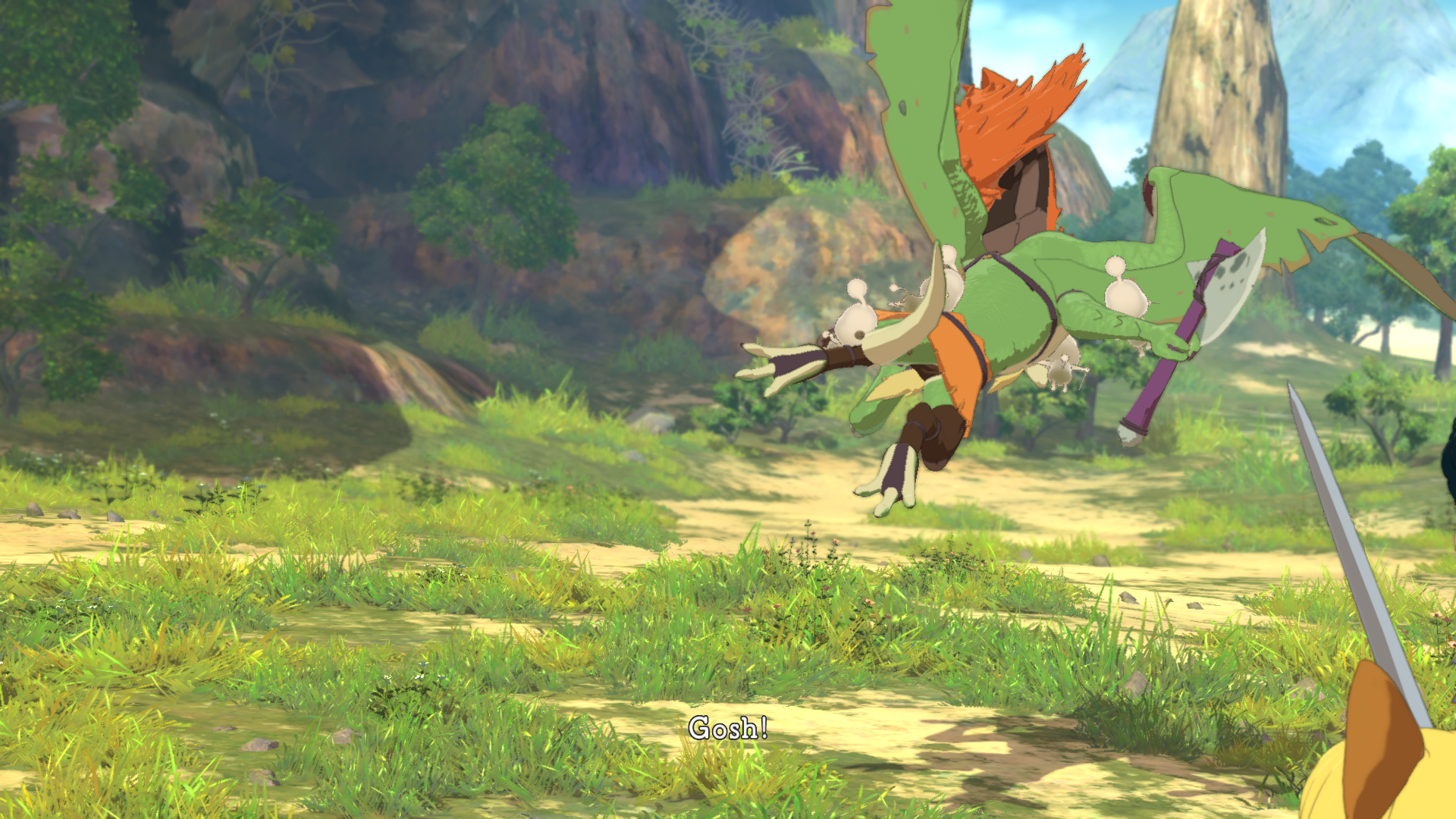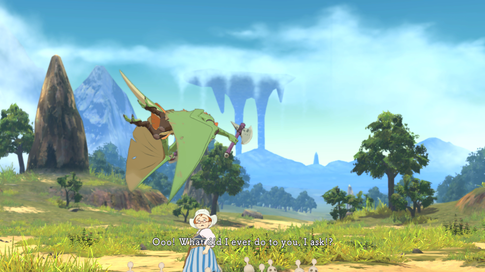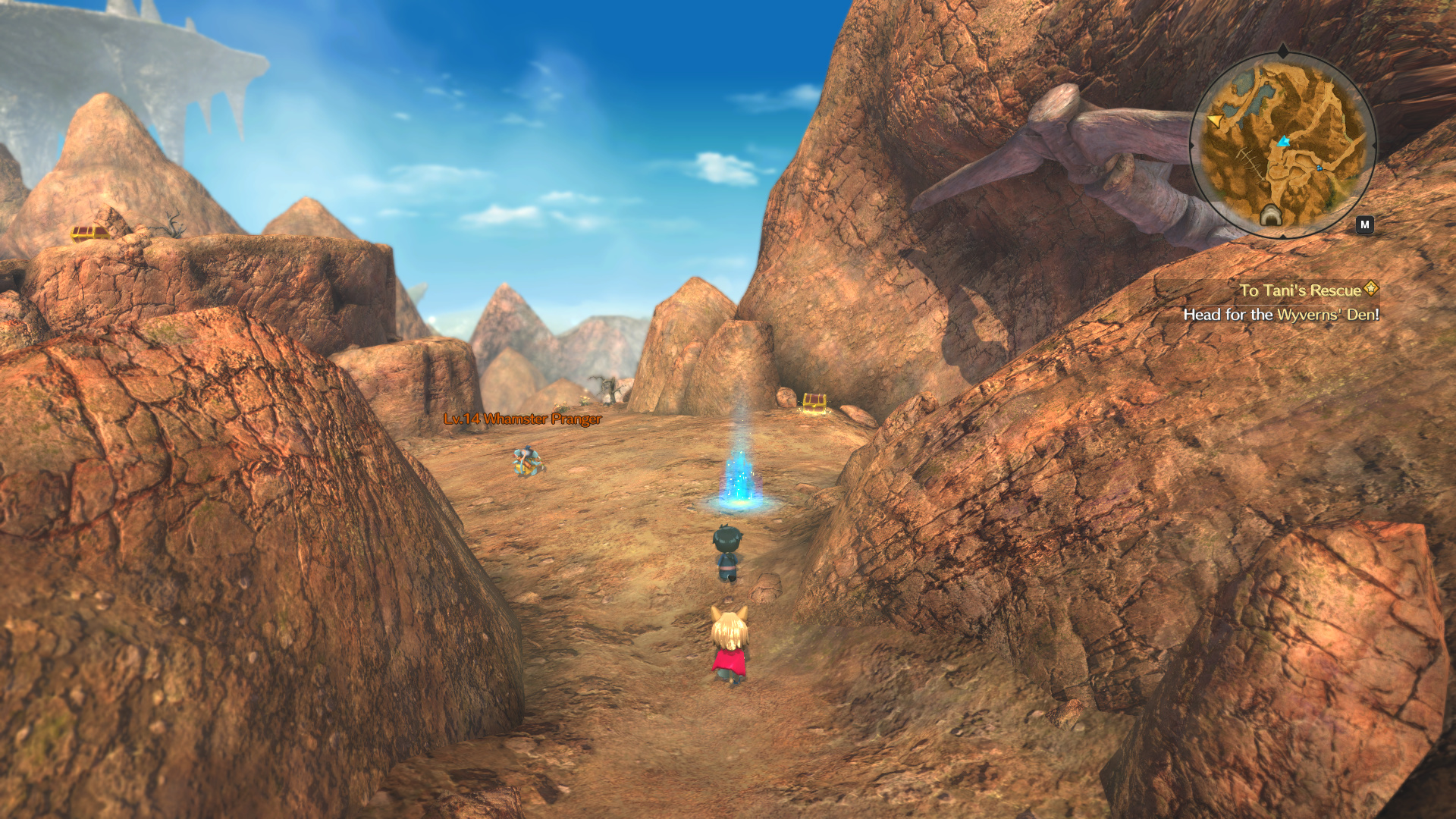 This area is absolutely littered with wyverns. Fortunately, I levelled up a bit offscreen. Grinding for levels in Ni no Kuni 2 is kind of a slow process and isn’t really encouraged, but I did it mostly to see if I could get some better weapons to drop.