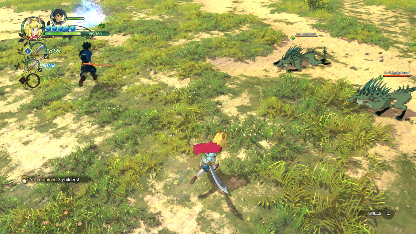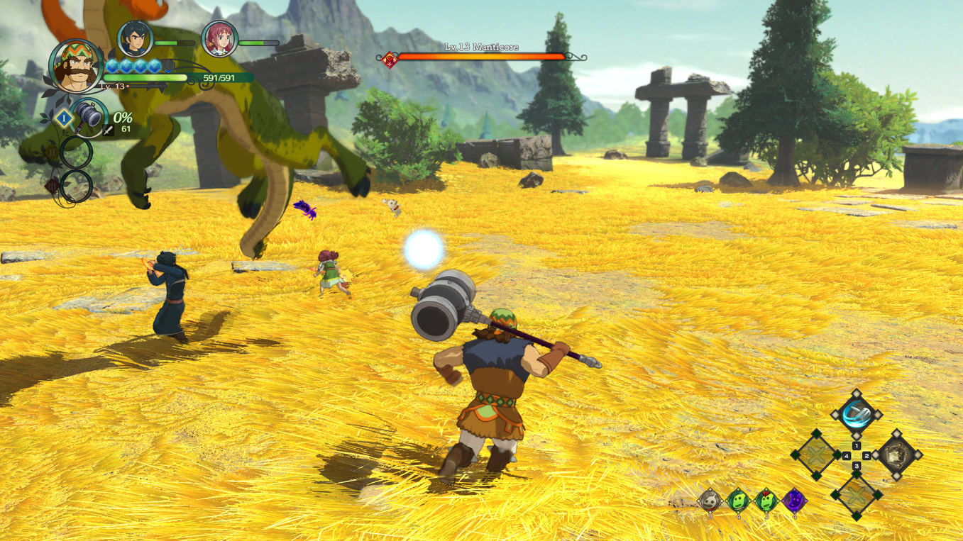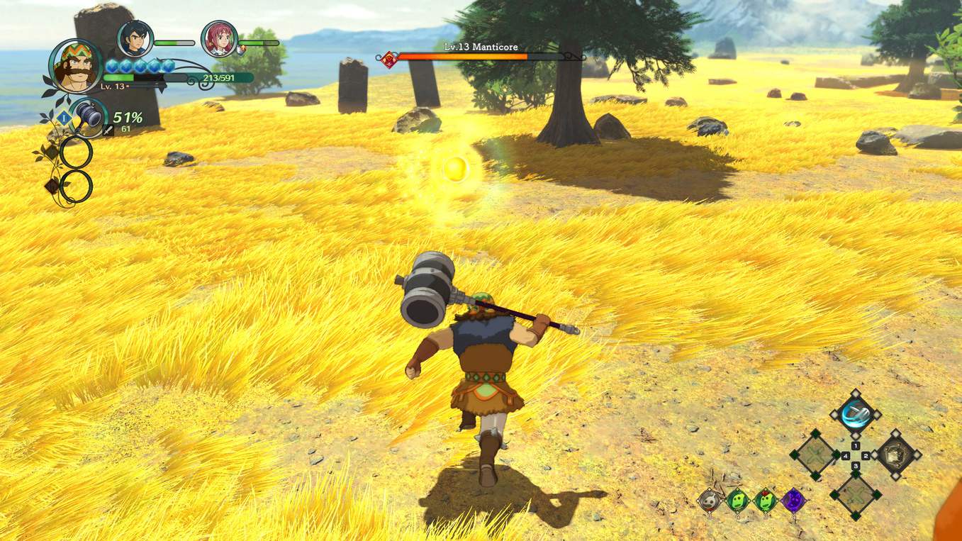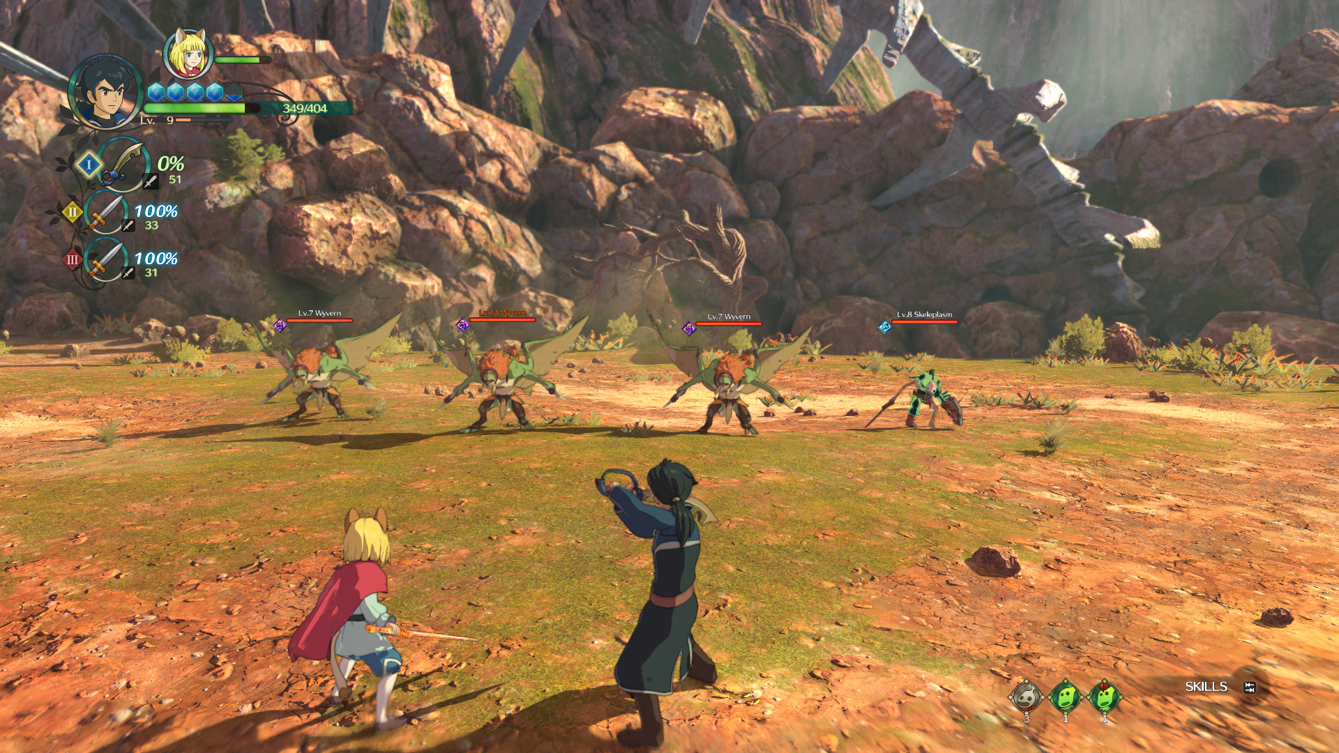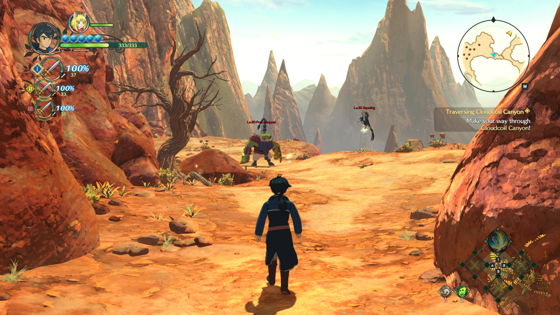 This area is absolutely littered with wyverns. Fortunately, I levelled up a bit offscreen. Grinding for levels in Ni no Kuni 2 is kind of a slow process and isn’t really encouraged, but I did it mostly to see if I could get some better weapons to drop.