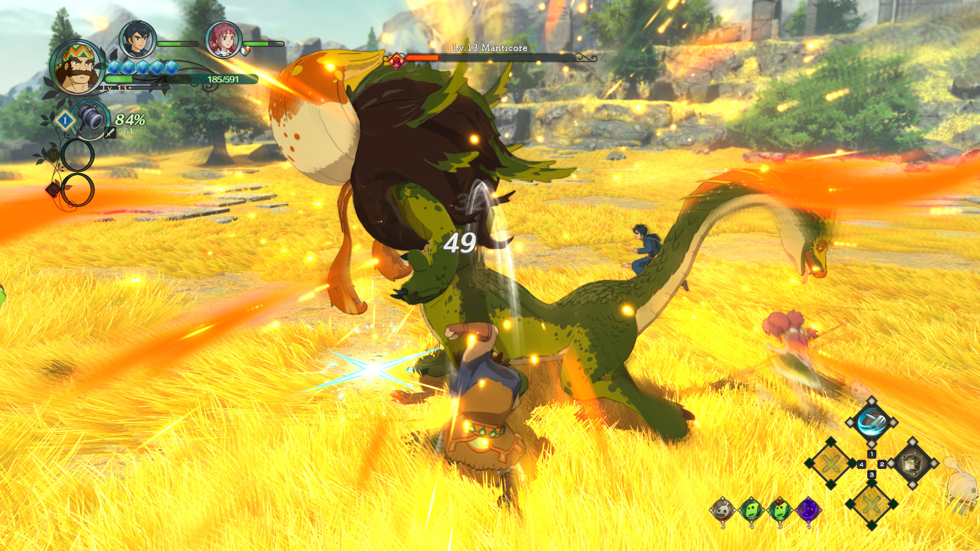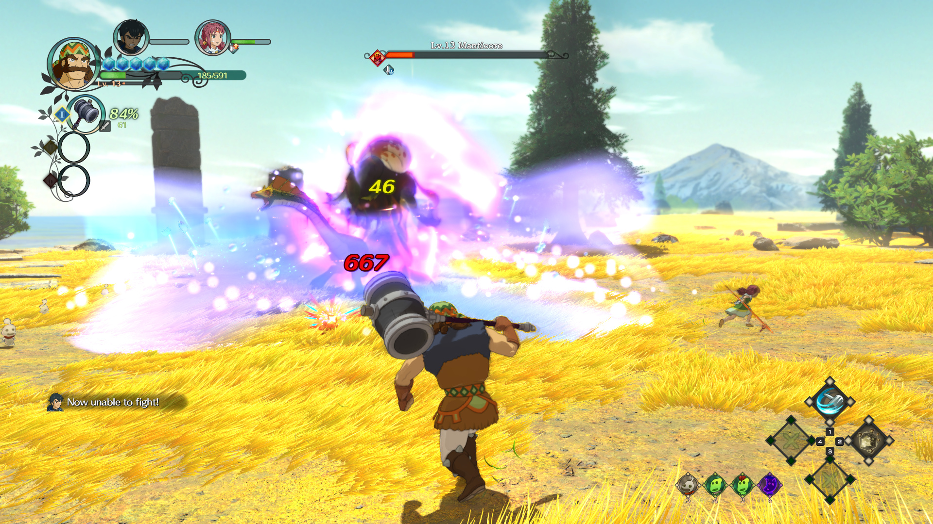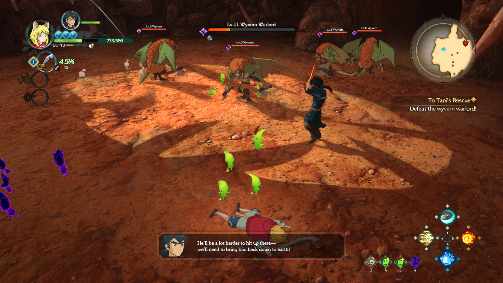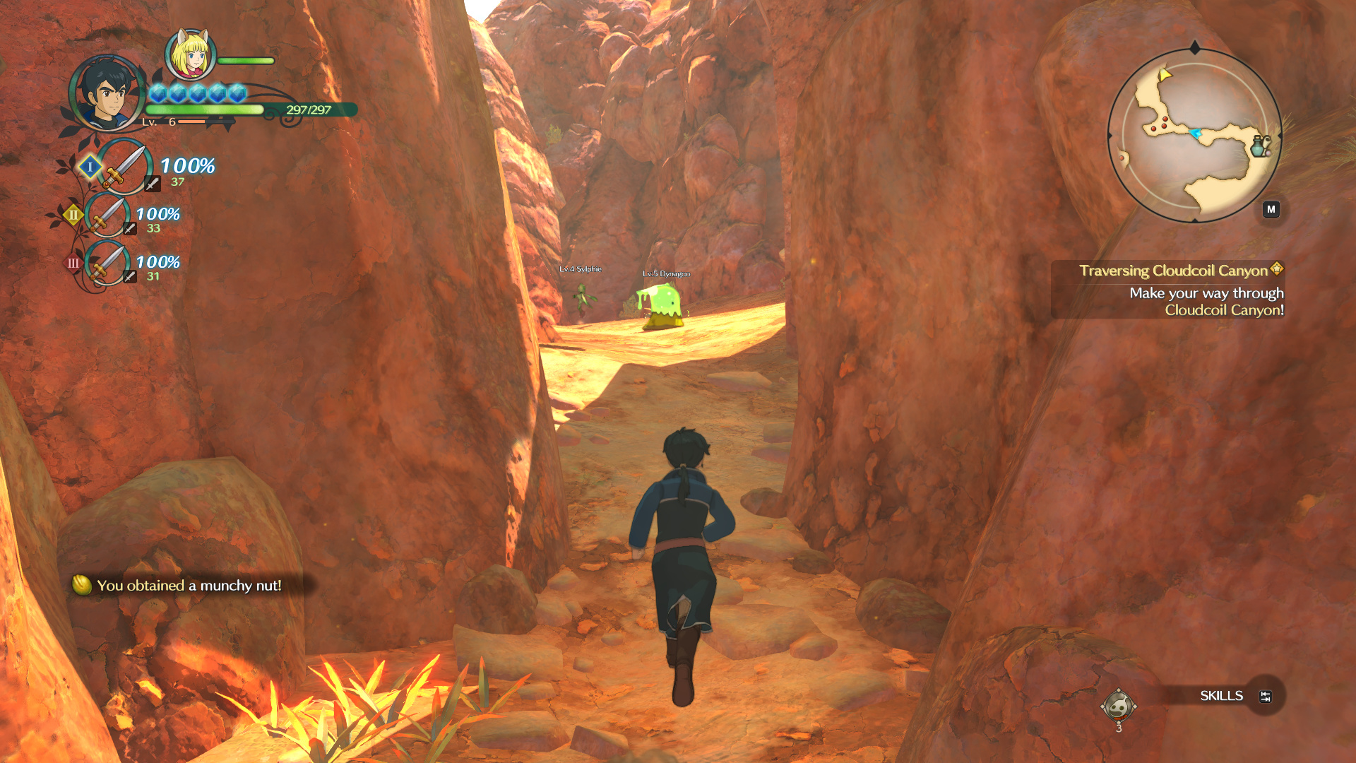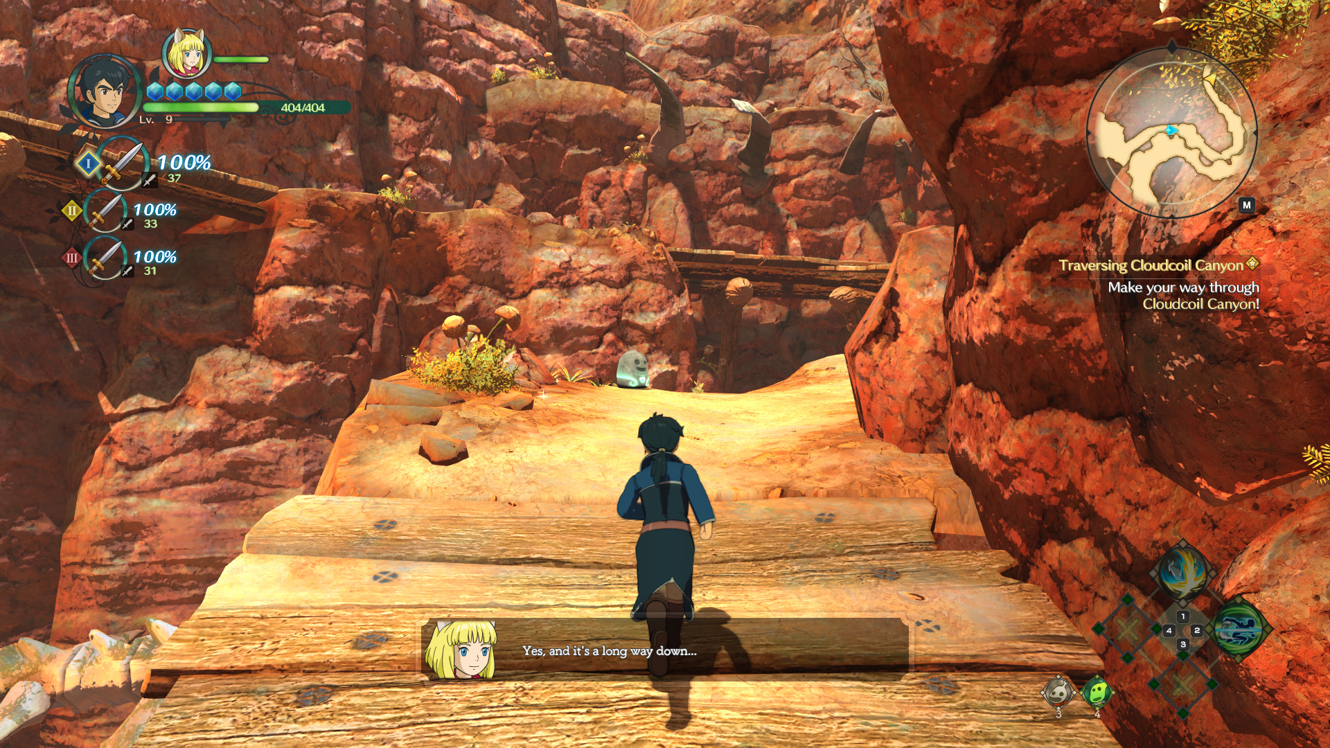 This area is absolutely littered with wyverns. Fortunately, I levelled up a bit offscreen. Grinding for levels in Ni no Kuni 2 is kind of a slow process and isn’t really encouraged, but I did it mostly to see if I could get some better weapons to drop.