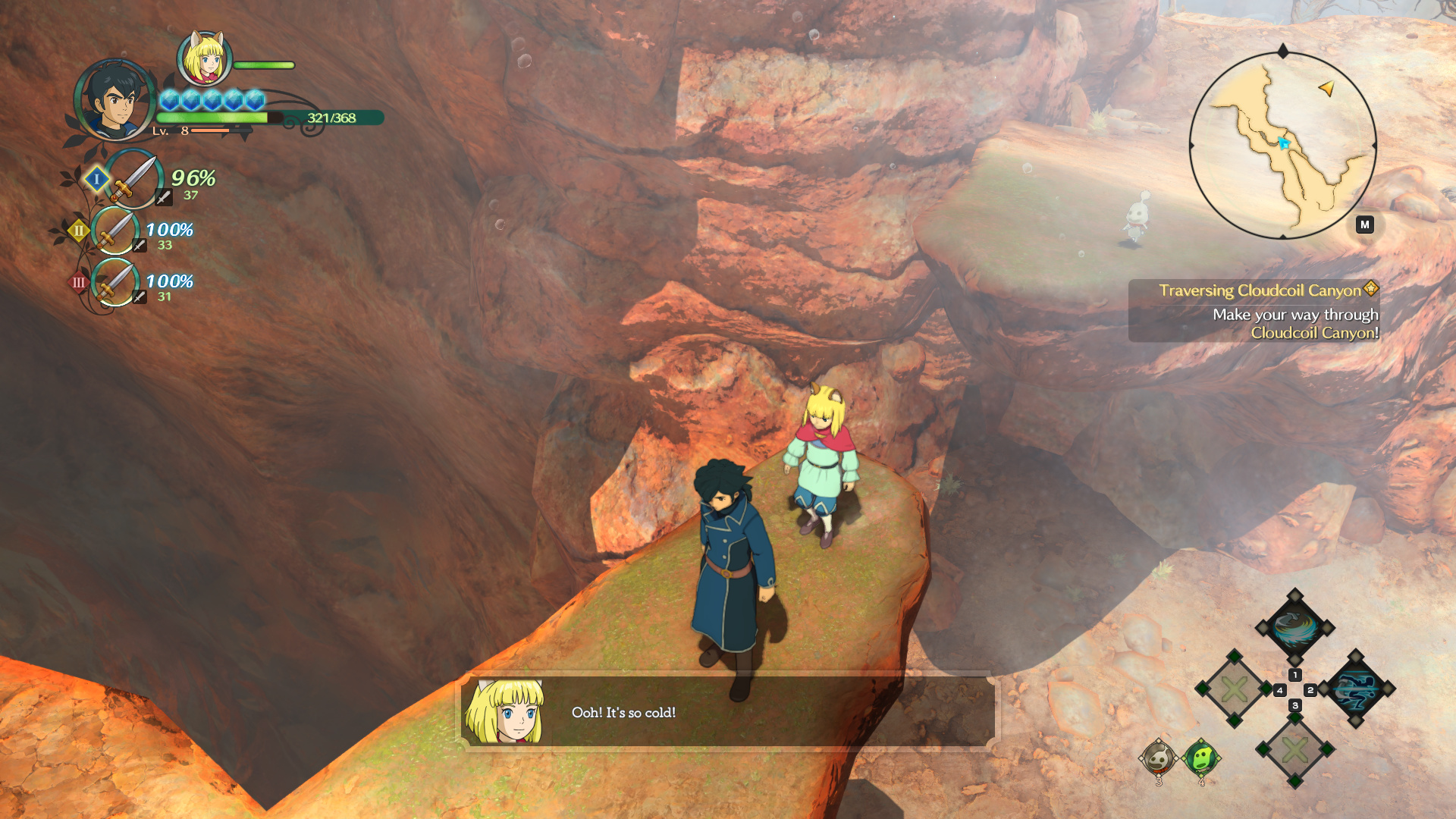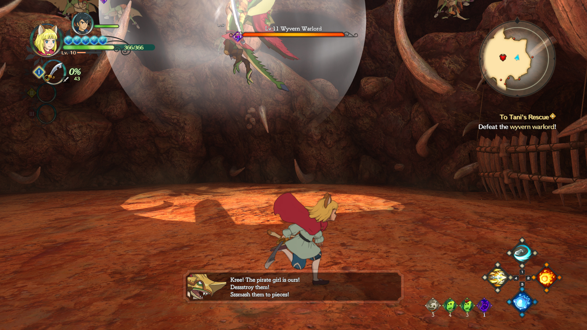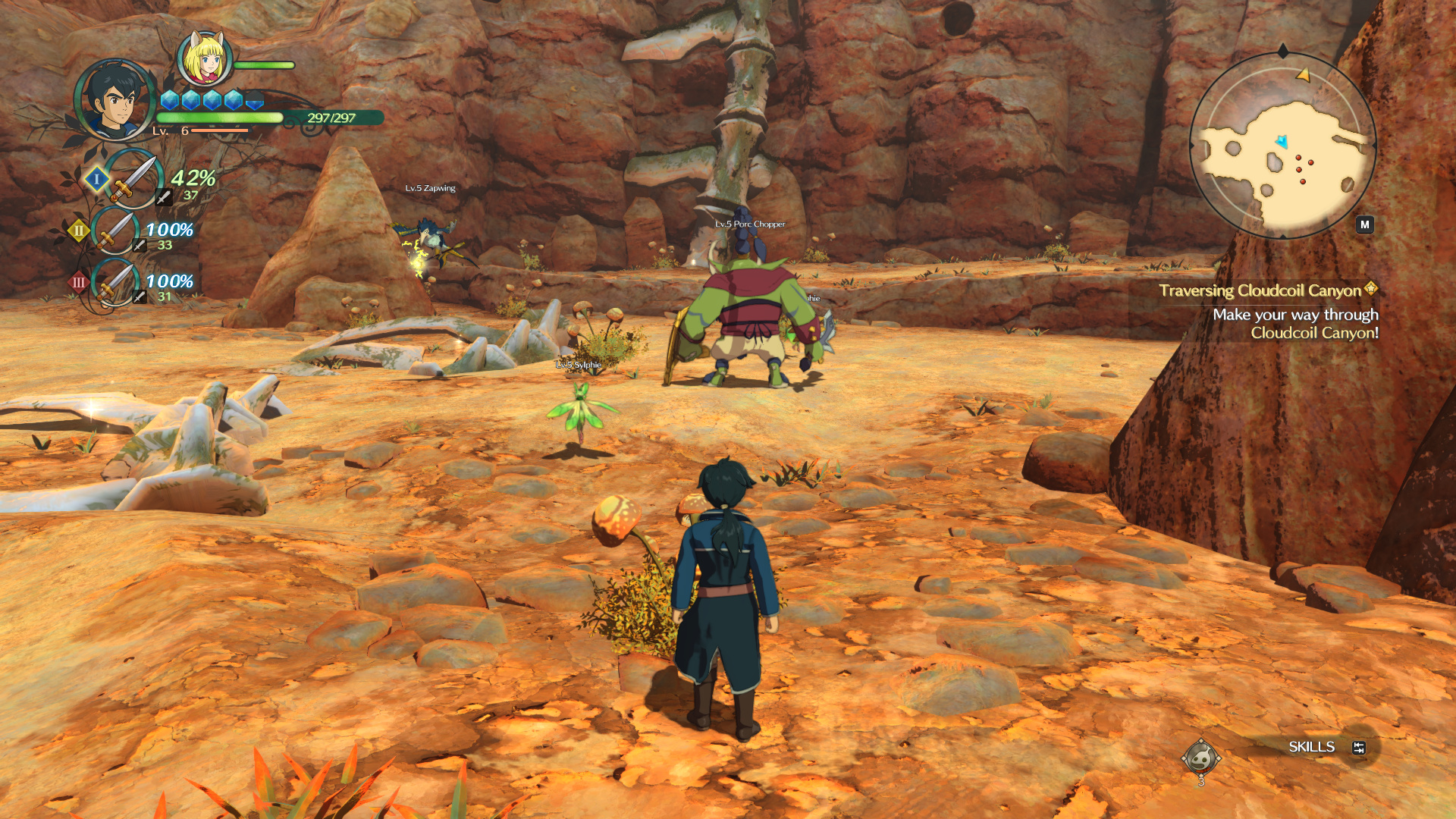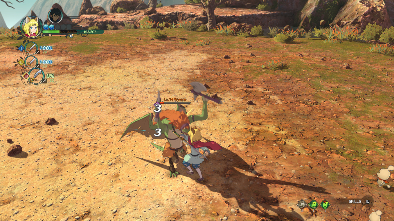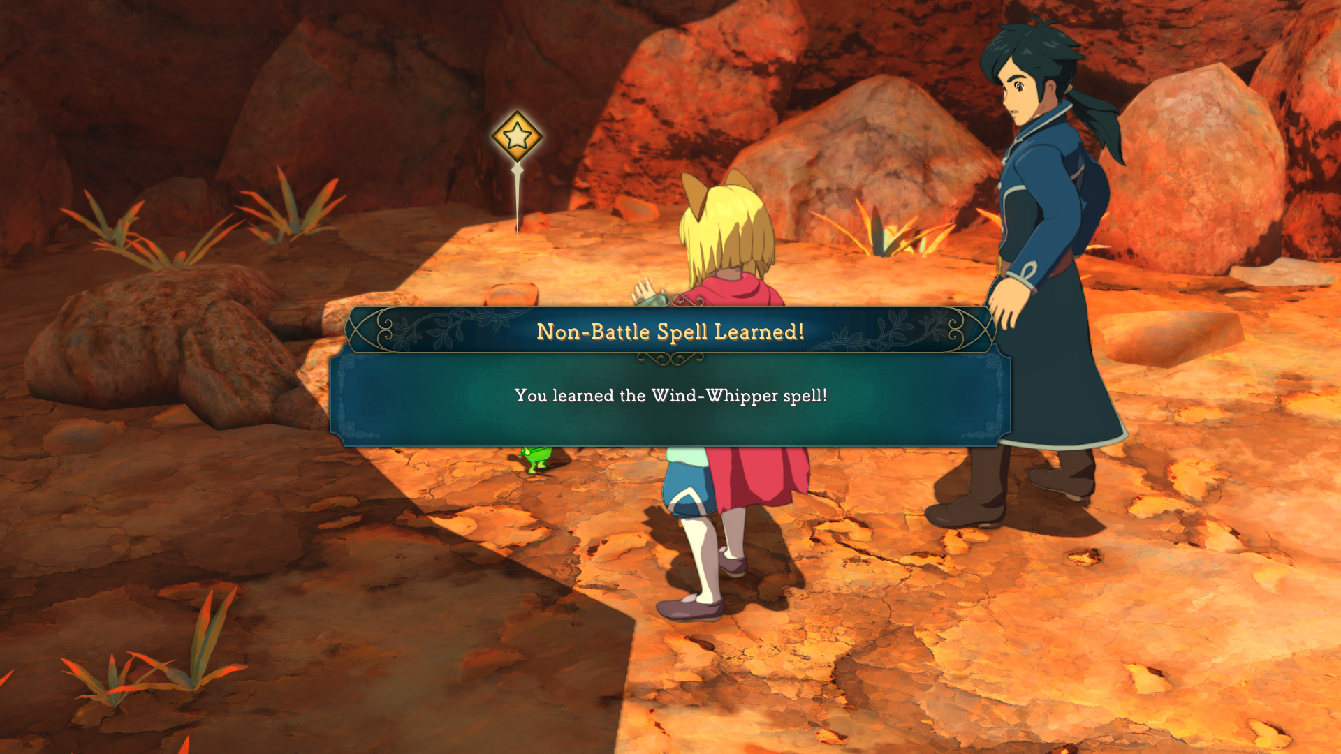 This area is absolutely littered with wyverns. Fortunately, I levelled up a bit offscreen. Grinding for levels in Ni no Kuni 2 is kind of a slow process and isn’t really encouraged, but I did it mostly to see if I could get some better weapons to drop.