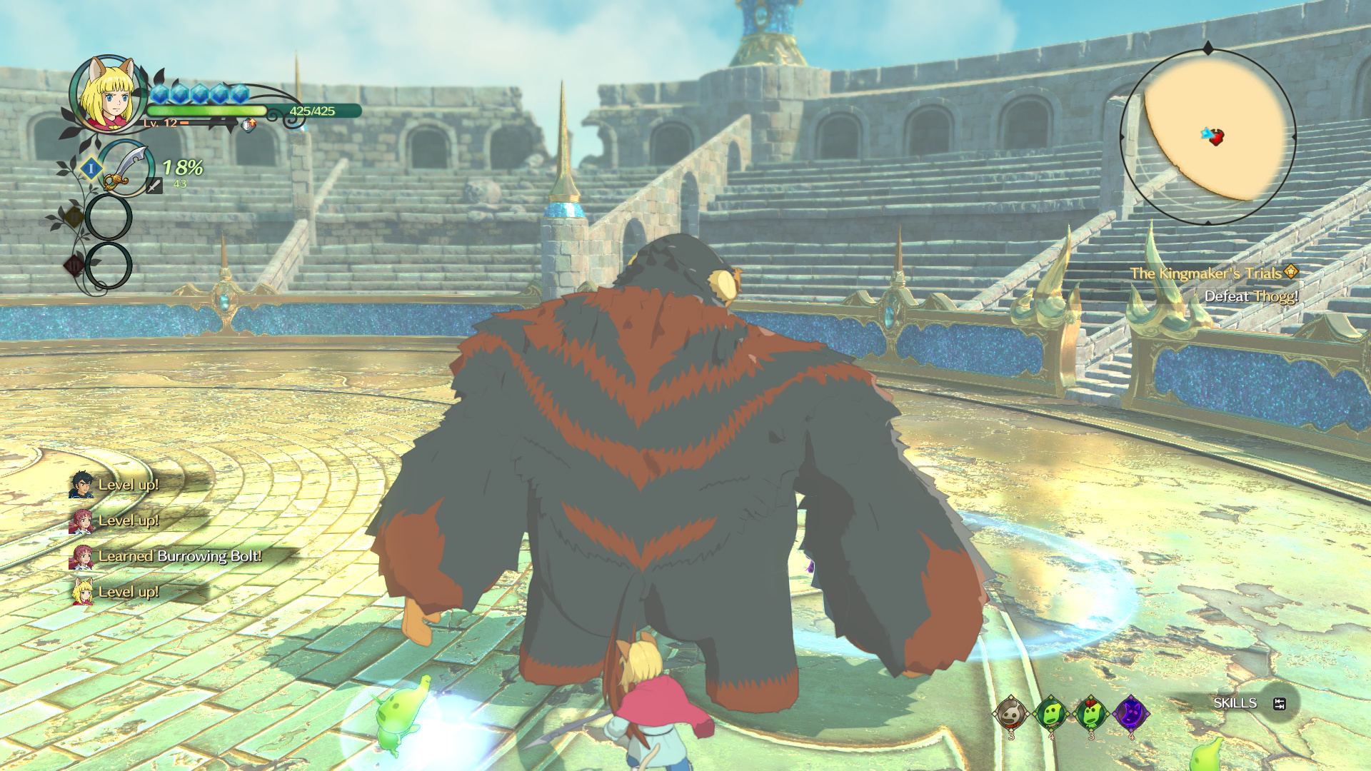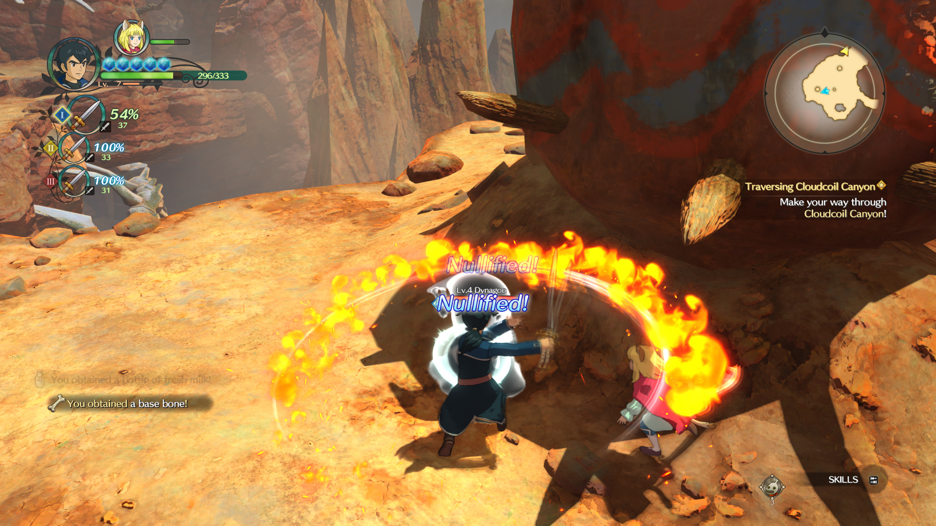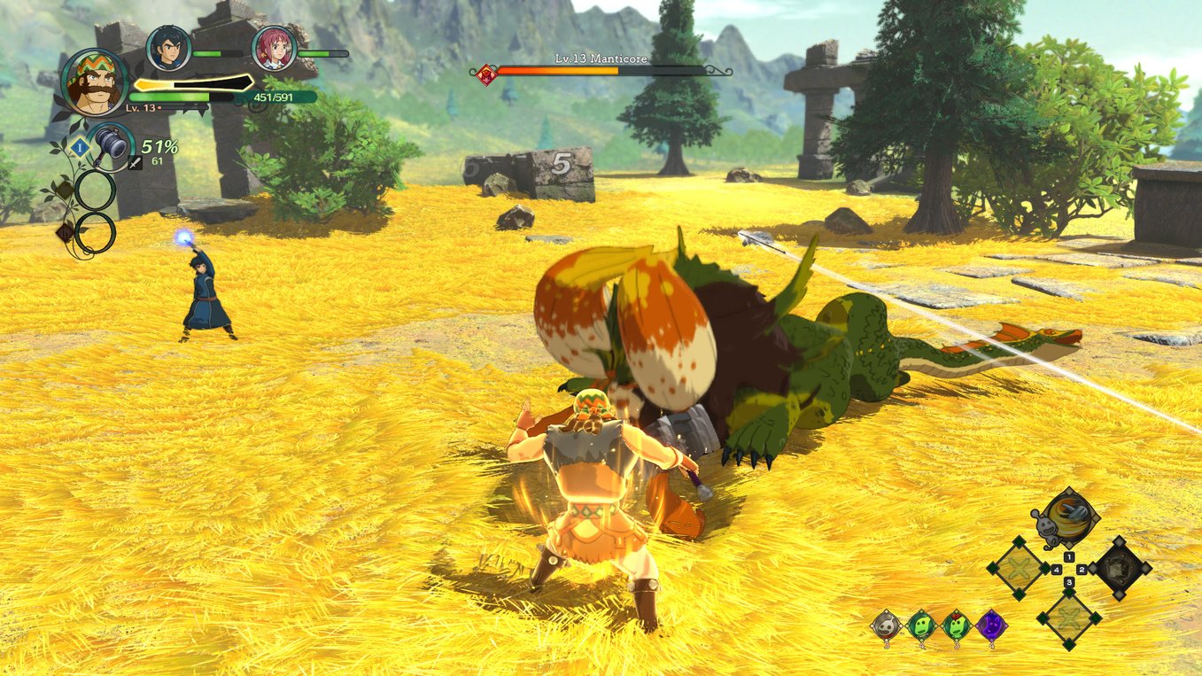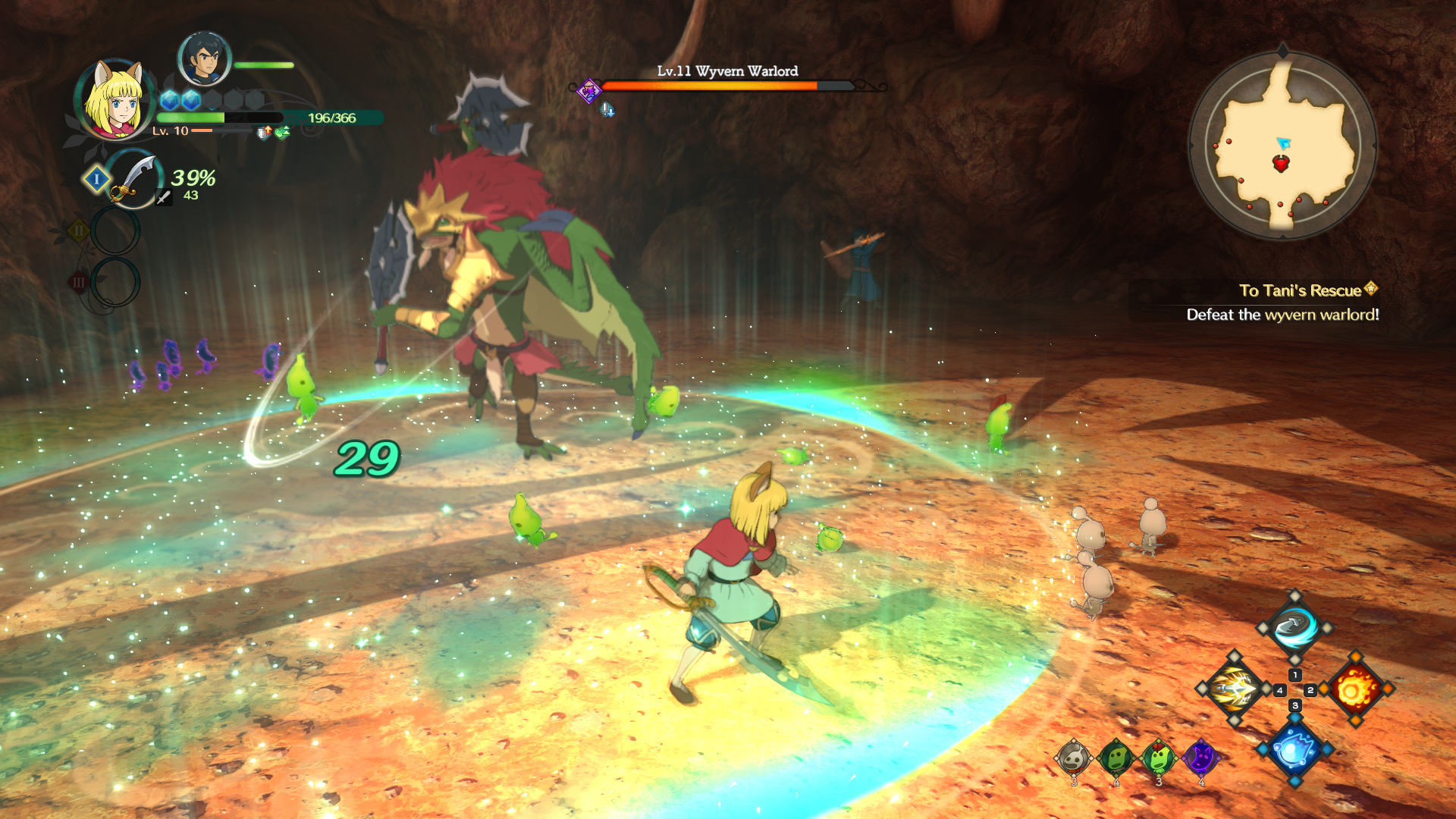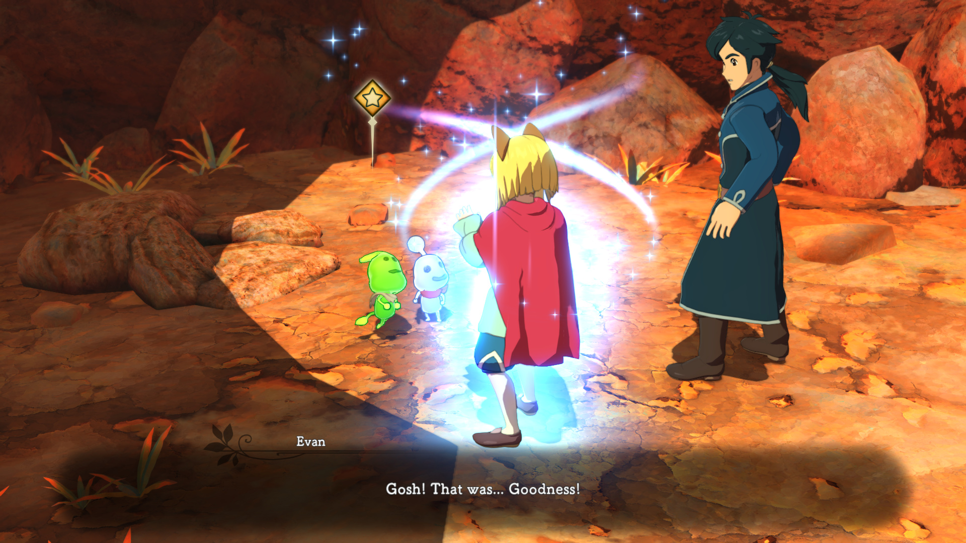 This area is absolutely littered with wyverns. Fortunately, I levelled up a bit offscreen. Grinding for levels in Ni no Kuni 2 is kind of a slow process and isn’t really encouraged, but I did it mostly to see if I could get some better weapons to drop.
