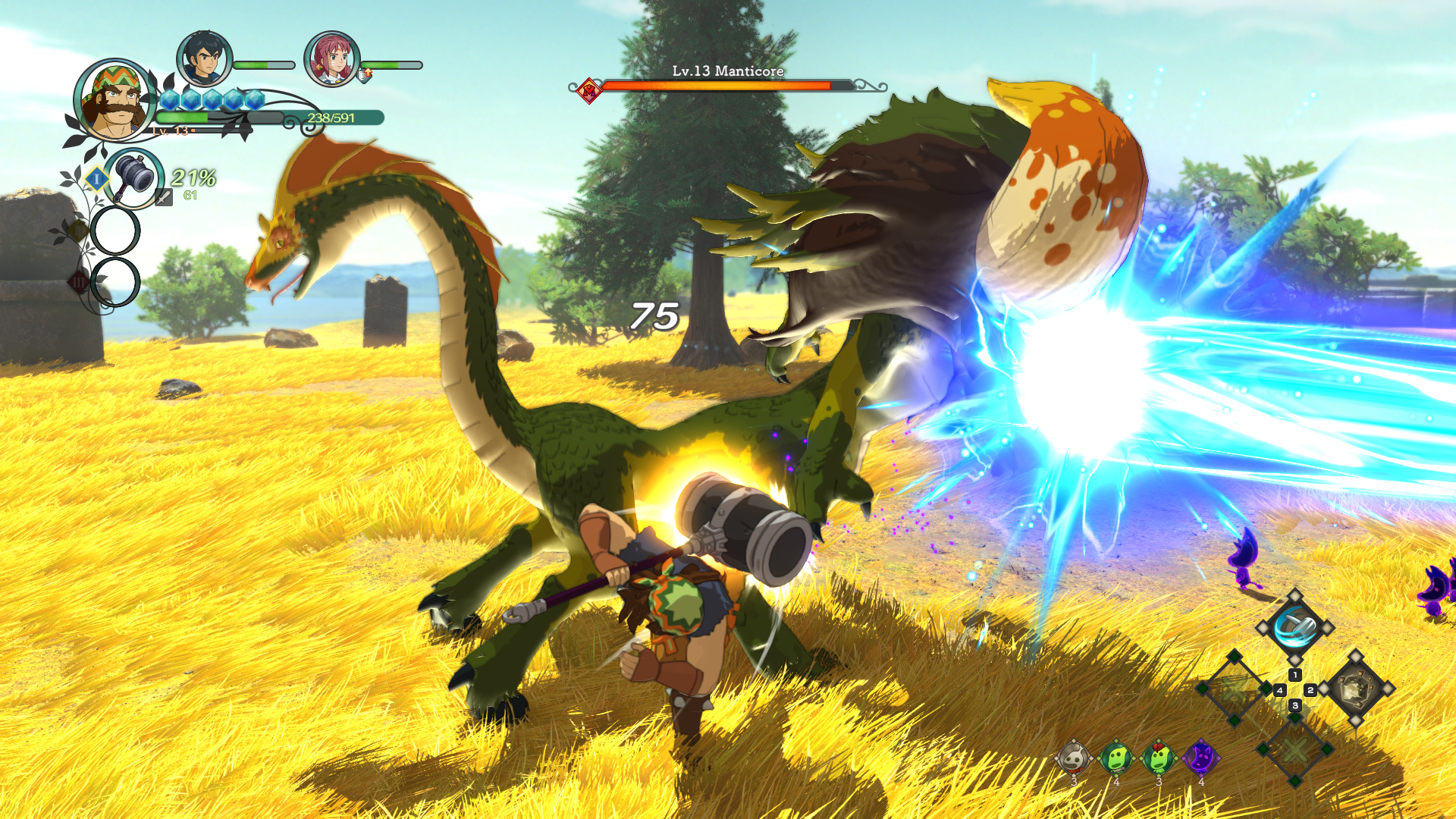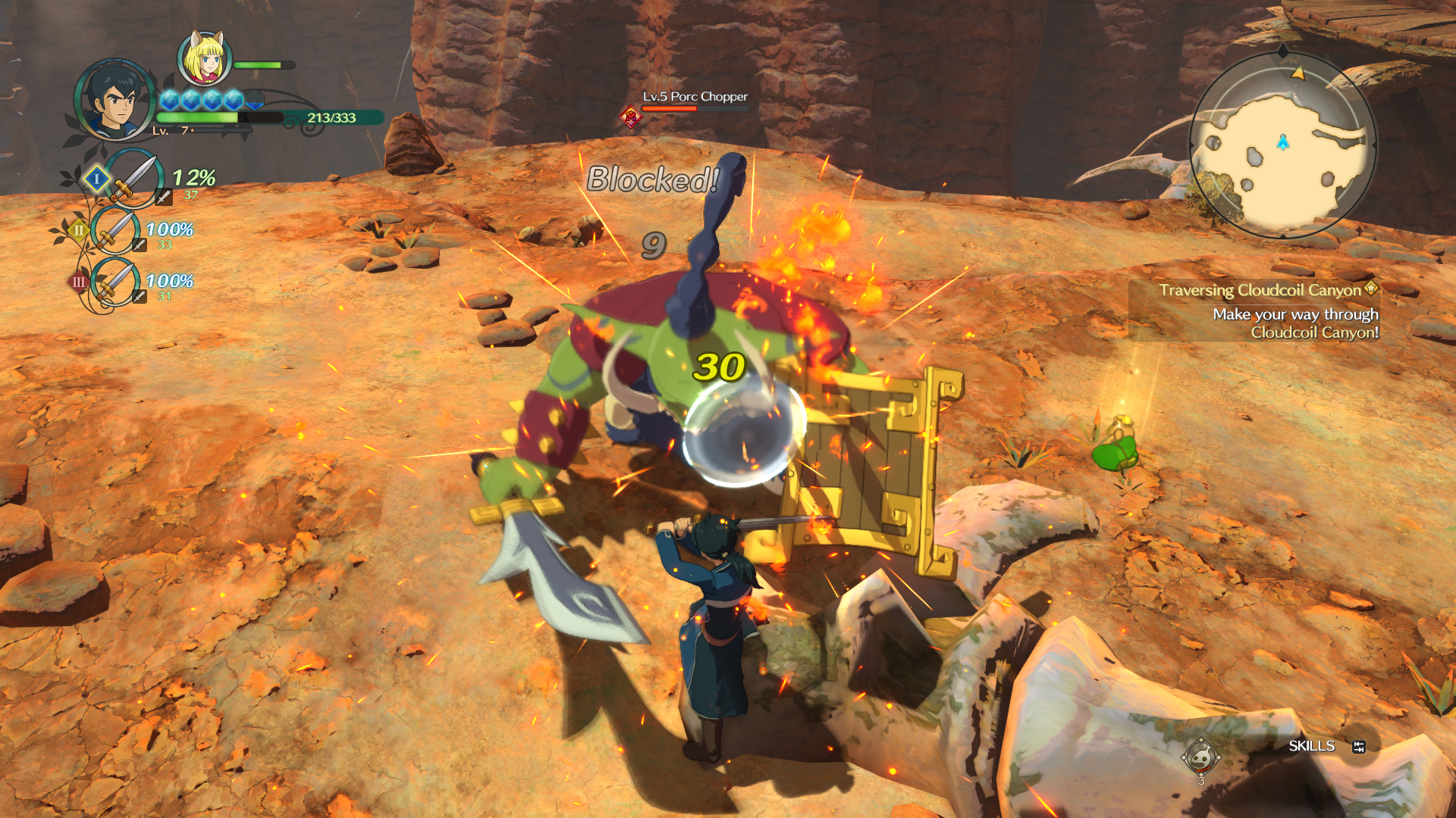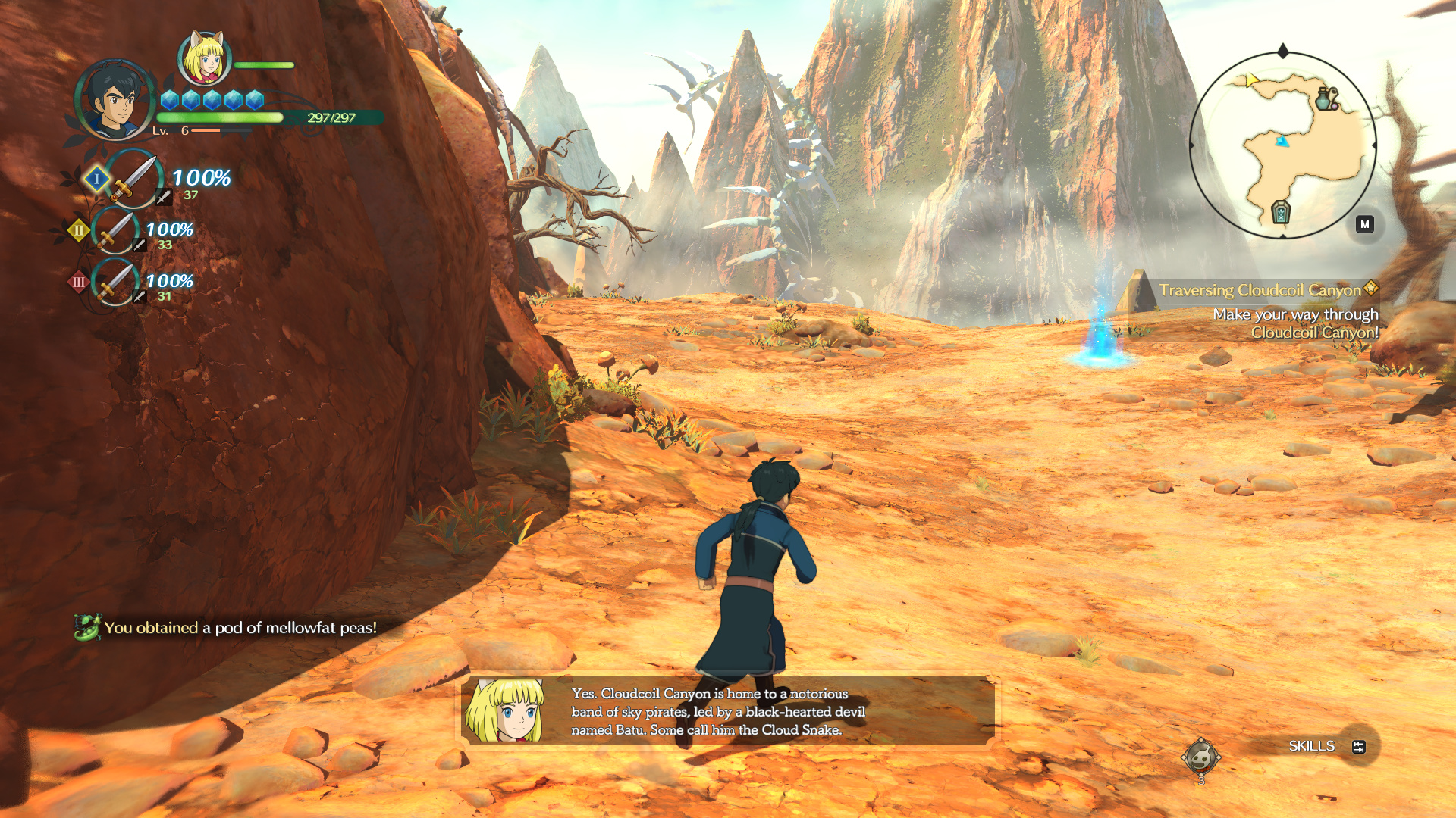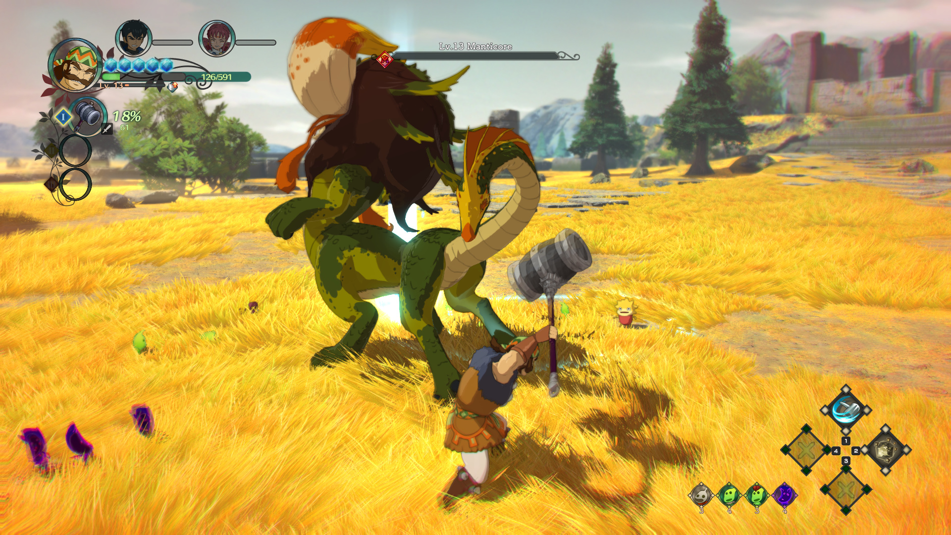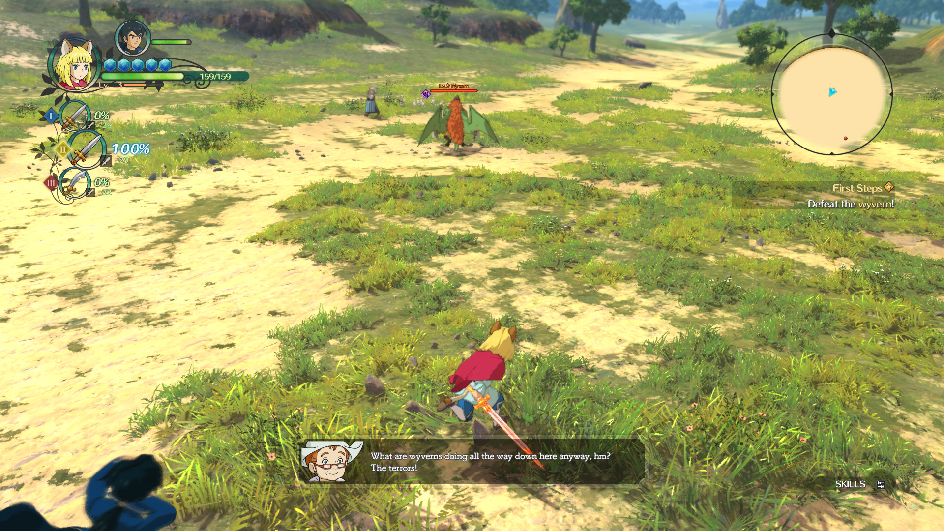 This area is absolutely littered with wyverns. Fortunately, I levelled up a bit offscreen. Grinding for levels in Ni no Kuni 2 is kind of a slow process and isn’t really encouraged, but I did it mostly to see if I could get some better weapons to drop.