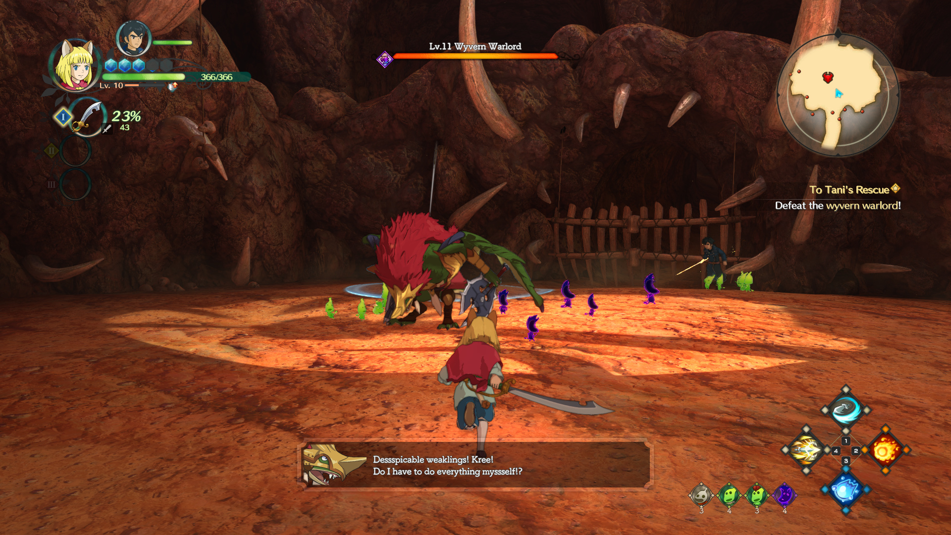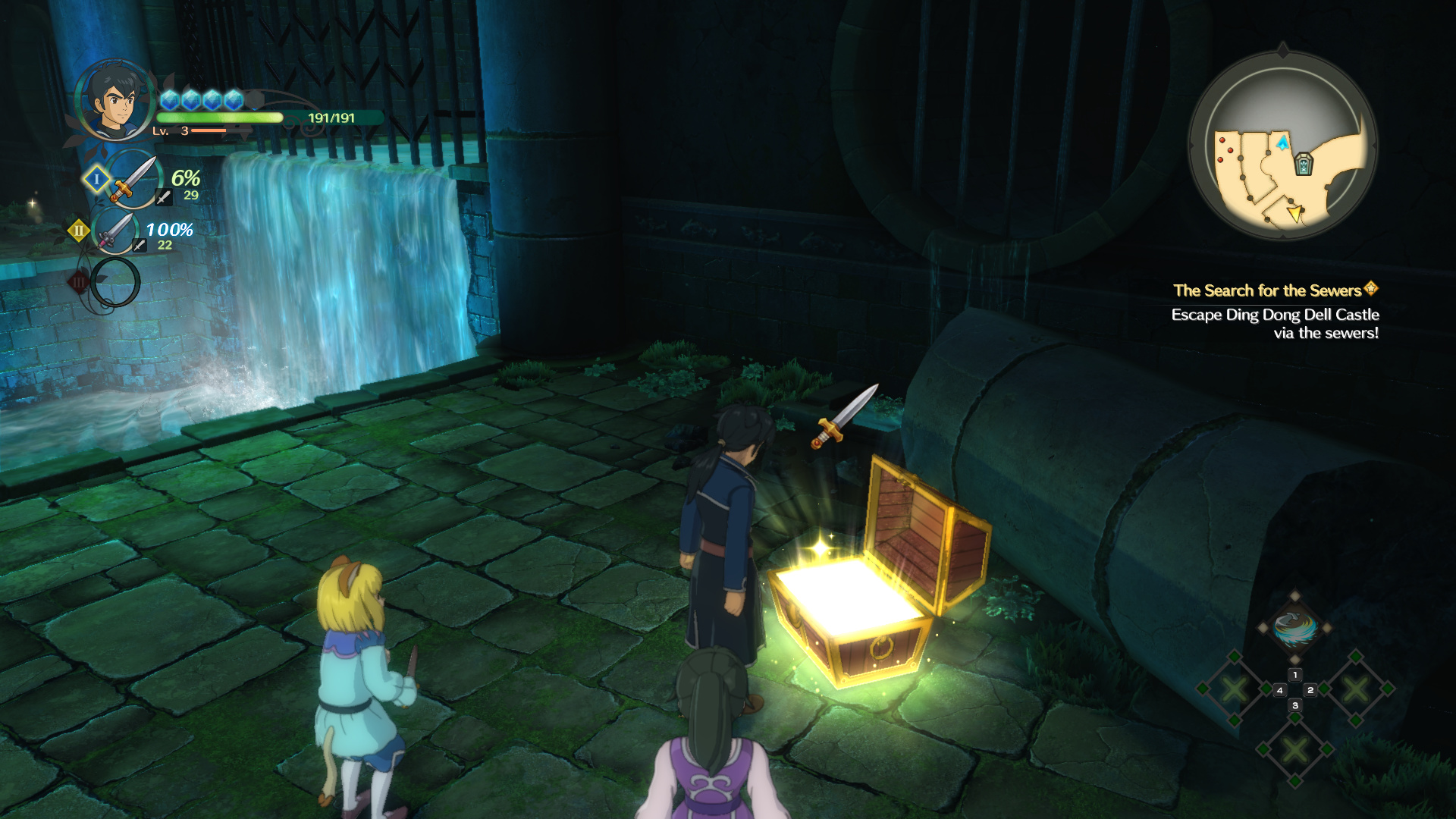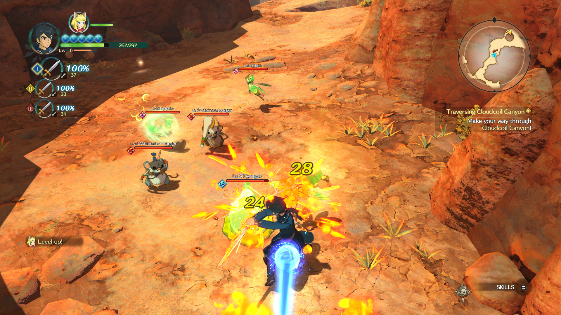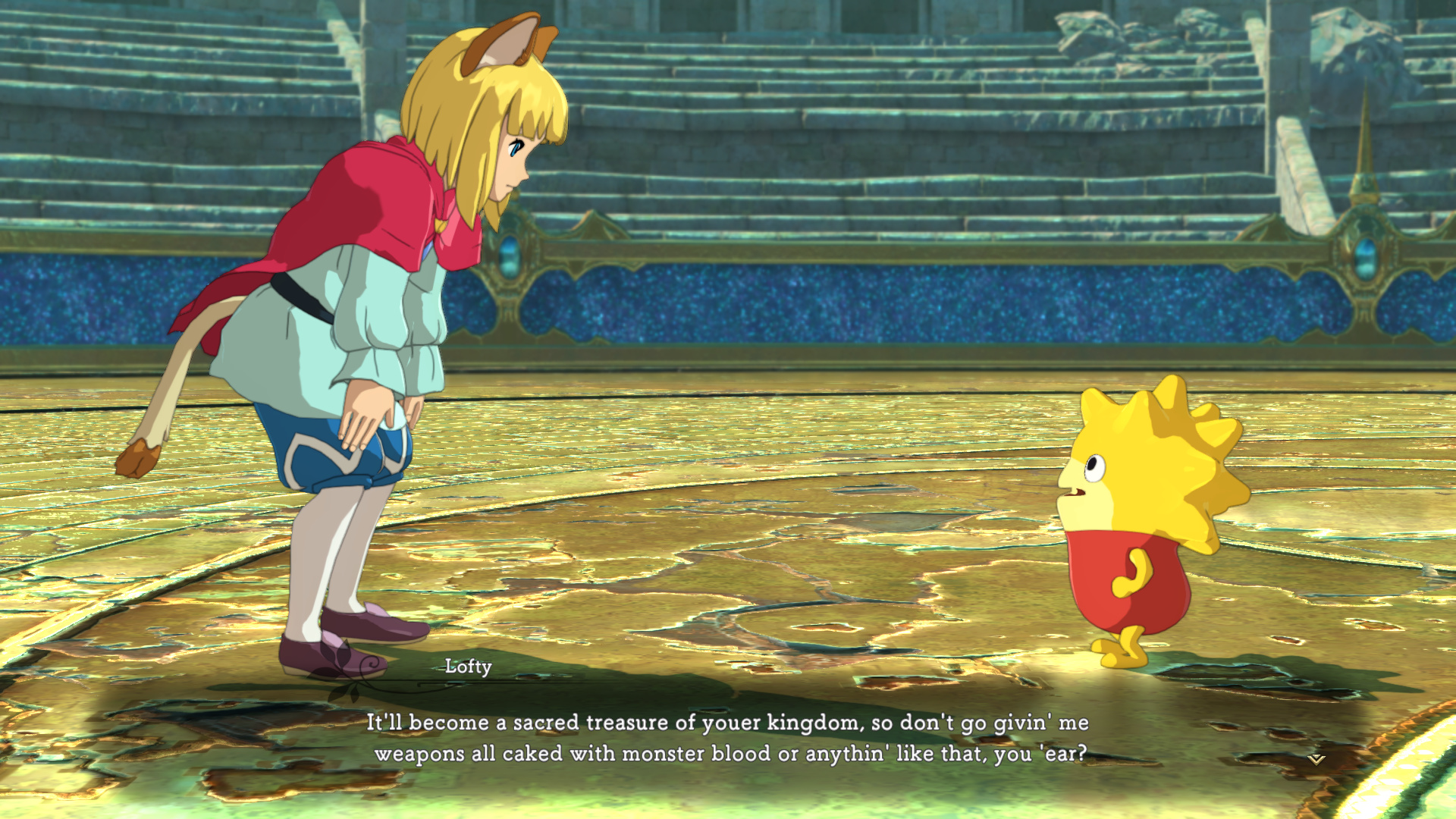 This area is absolutely littered with wyverns. Fortunately, I levelled up a bit offscreen. Grinding for levels in Ni no Kuni 2 is kind of a slow process and isn’t really encouraged, but I did it mostly to see if I could get some better weapons to drop.