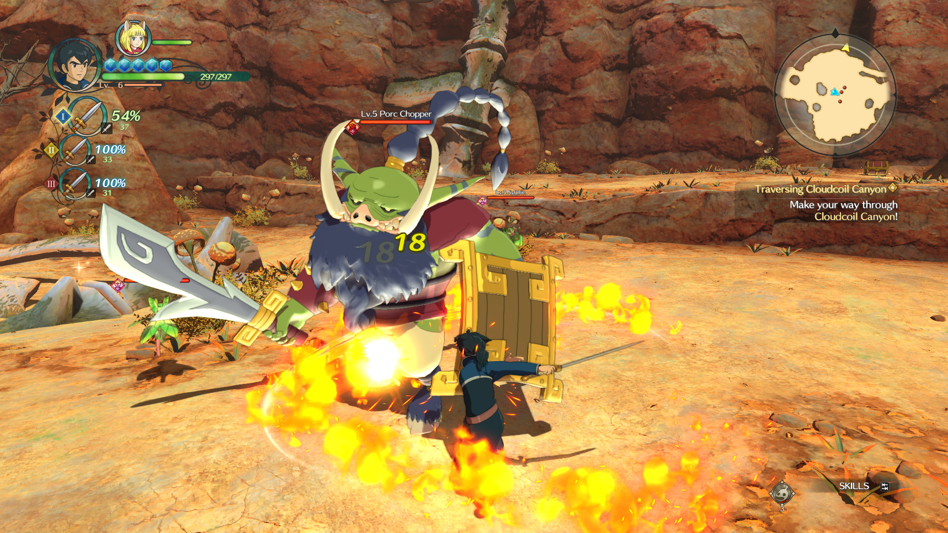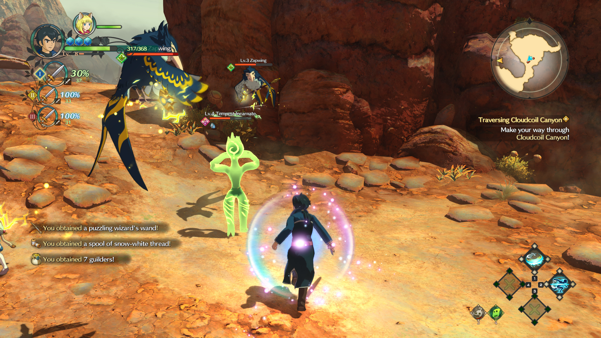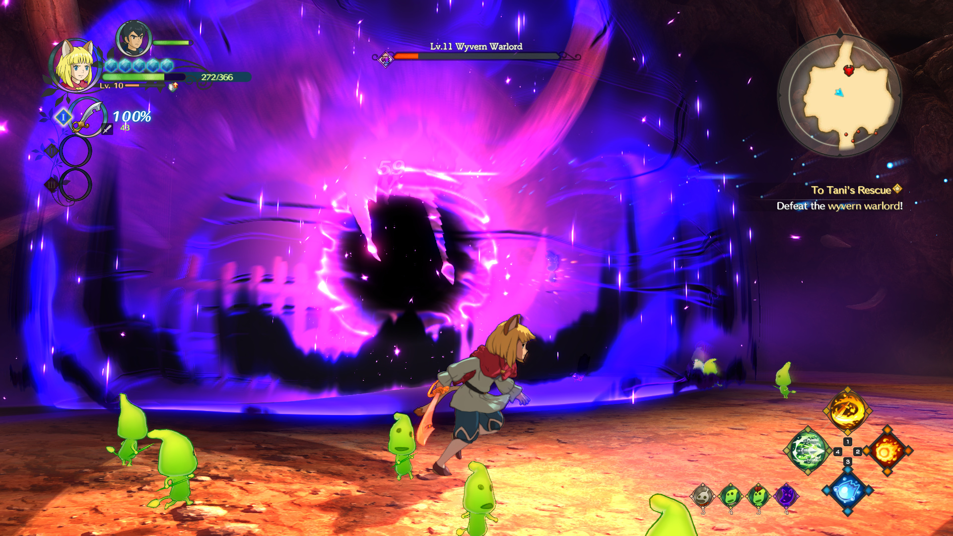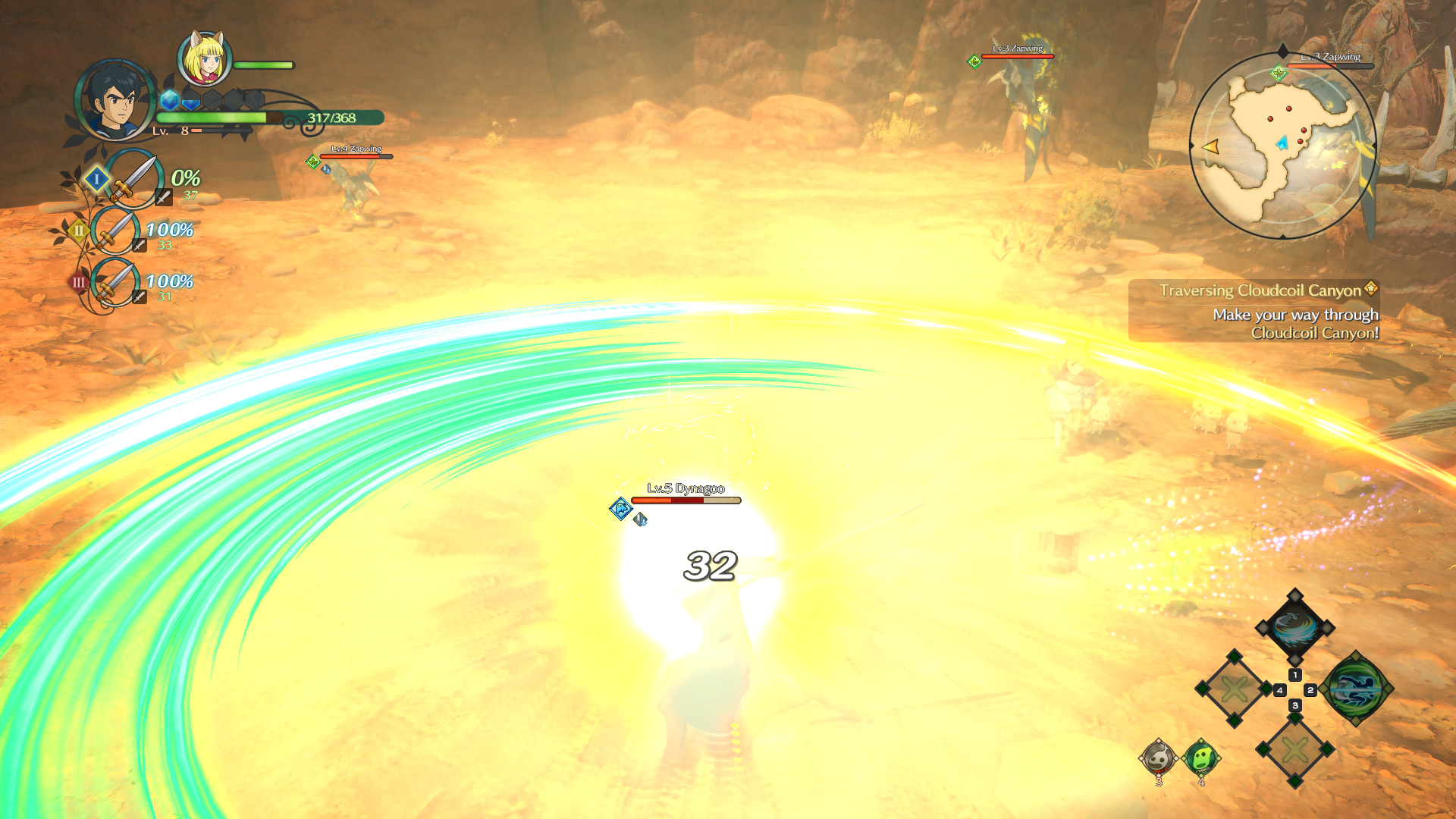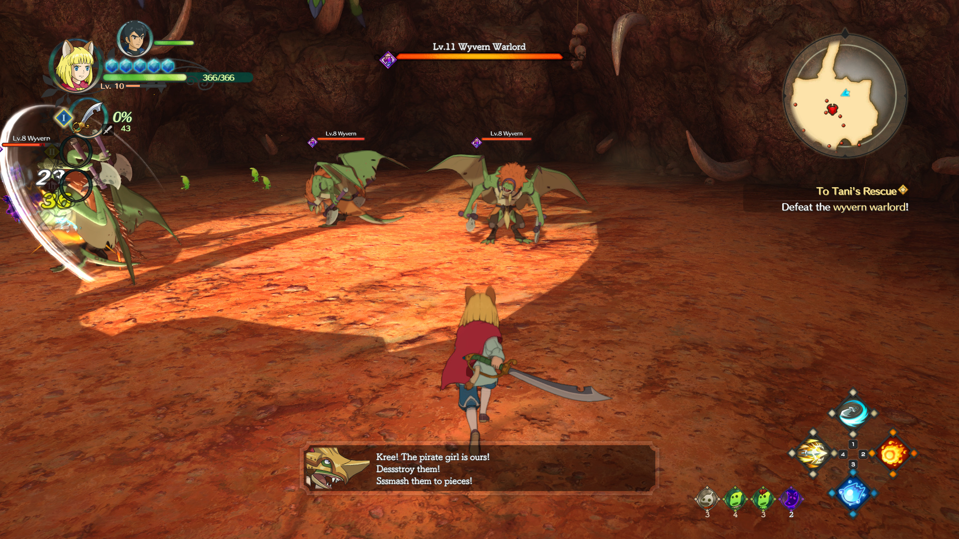 This area is absolutely littered with wyverns. Fortunately, I levelled up a bit offscreen. Grinding for levels in Ni no Kuni 2 is kind of a slow process and isn’t really encouraged, but I did it mostly to see if I could get some better weapons to drop.