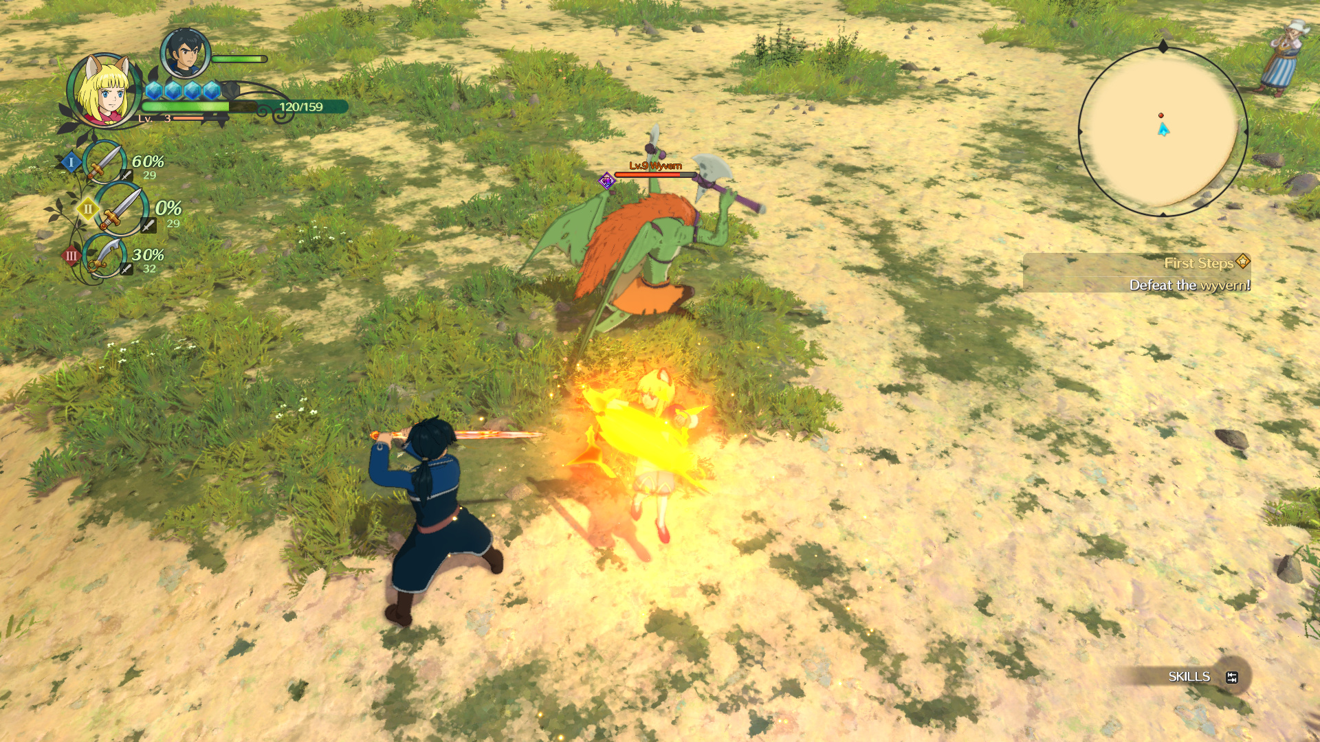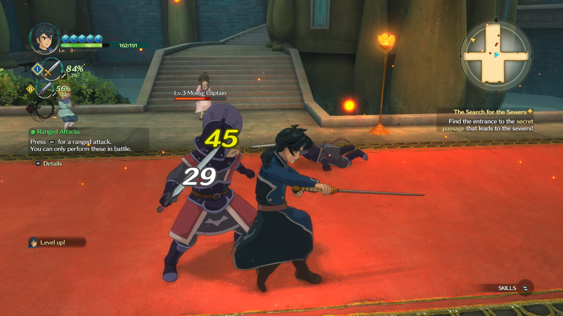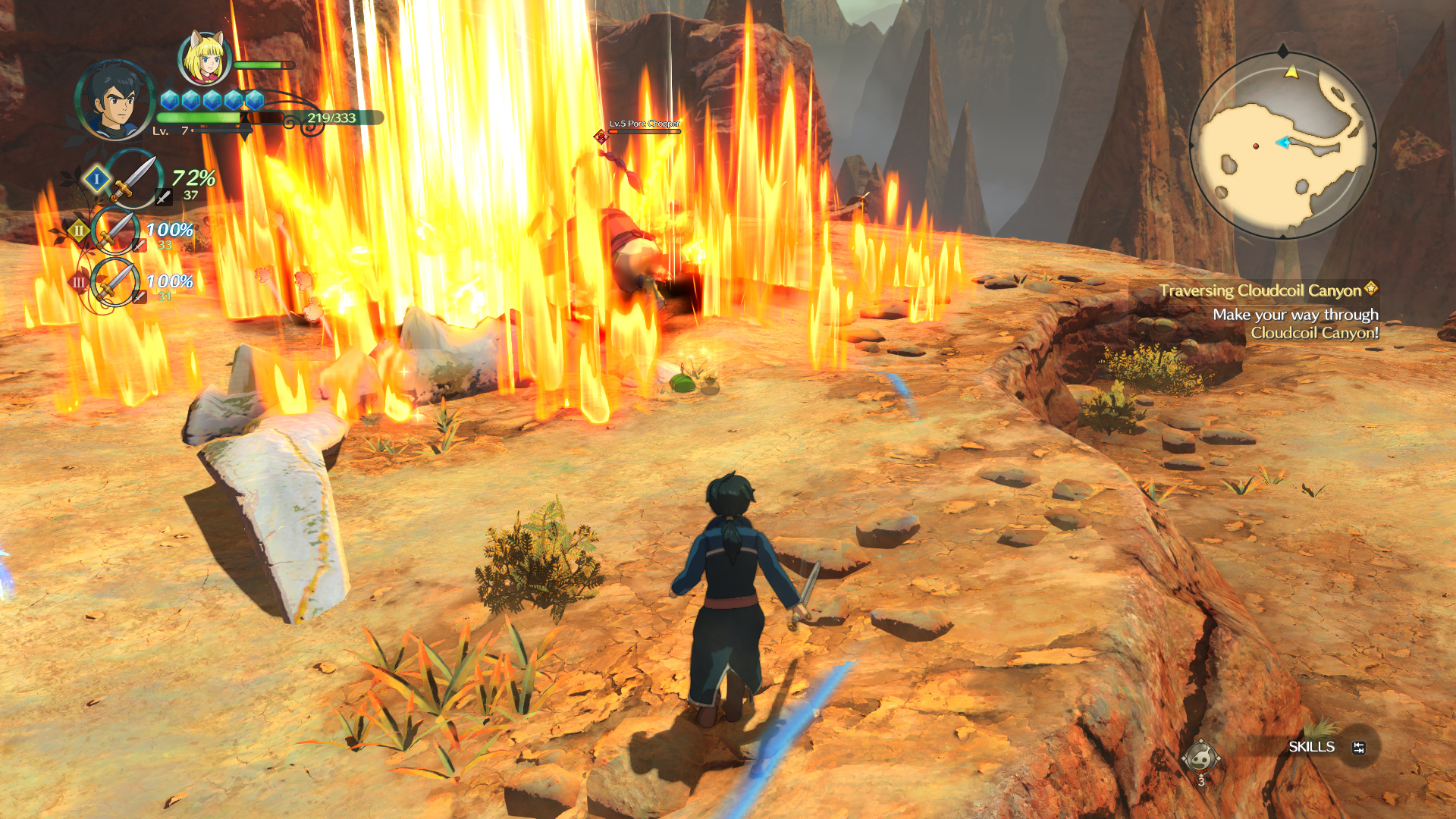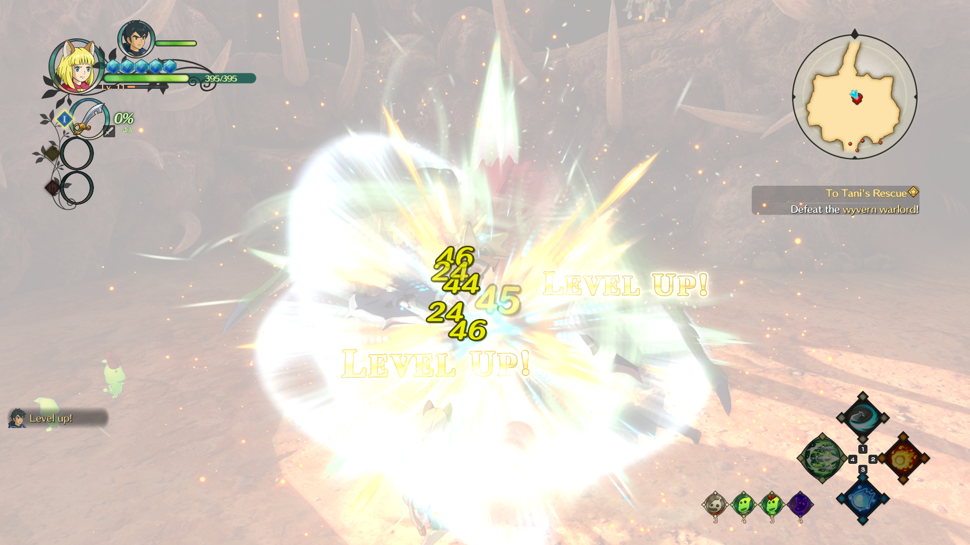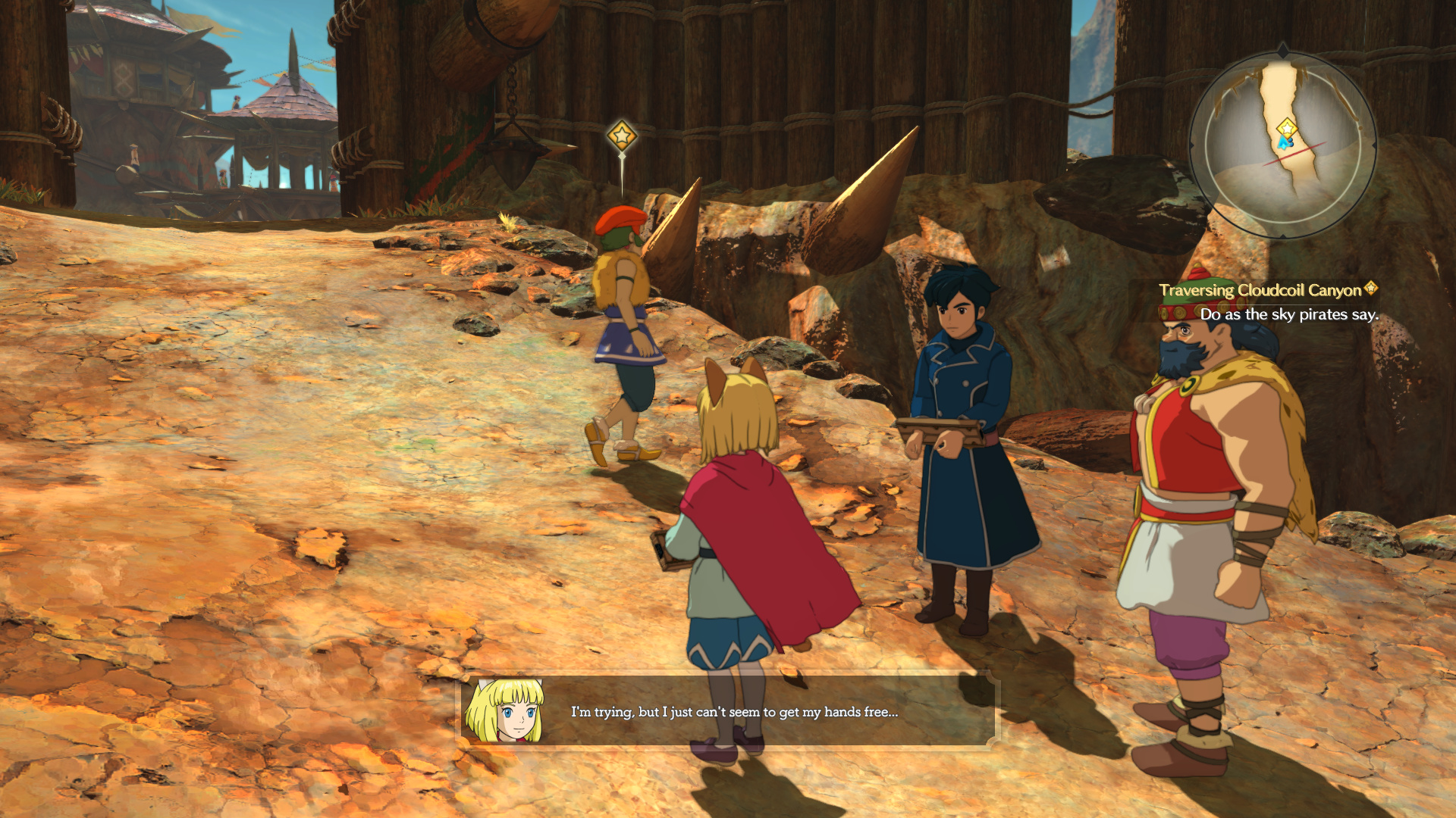 This area is absolutely littered with wyverns. Fortunately, I levelled up a bit offscreen. Grinding for levels in Ni no Kuni 2 is kind of a slow process and isn’t really encouraged, but I did it mostly to see if I could get some better weapons to drop.