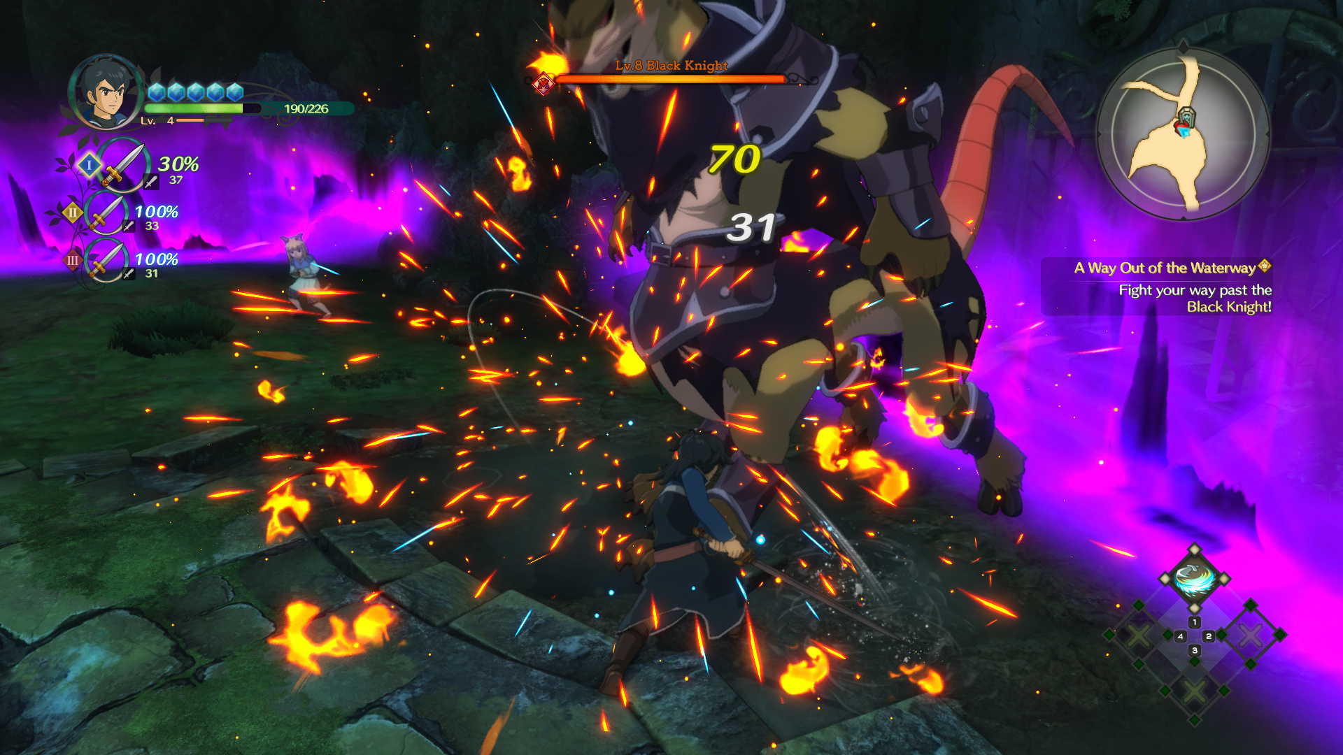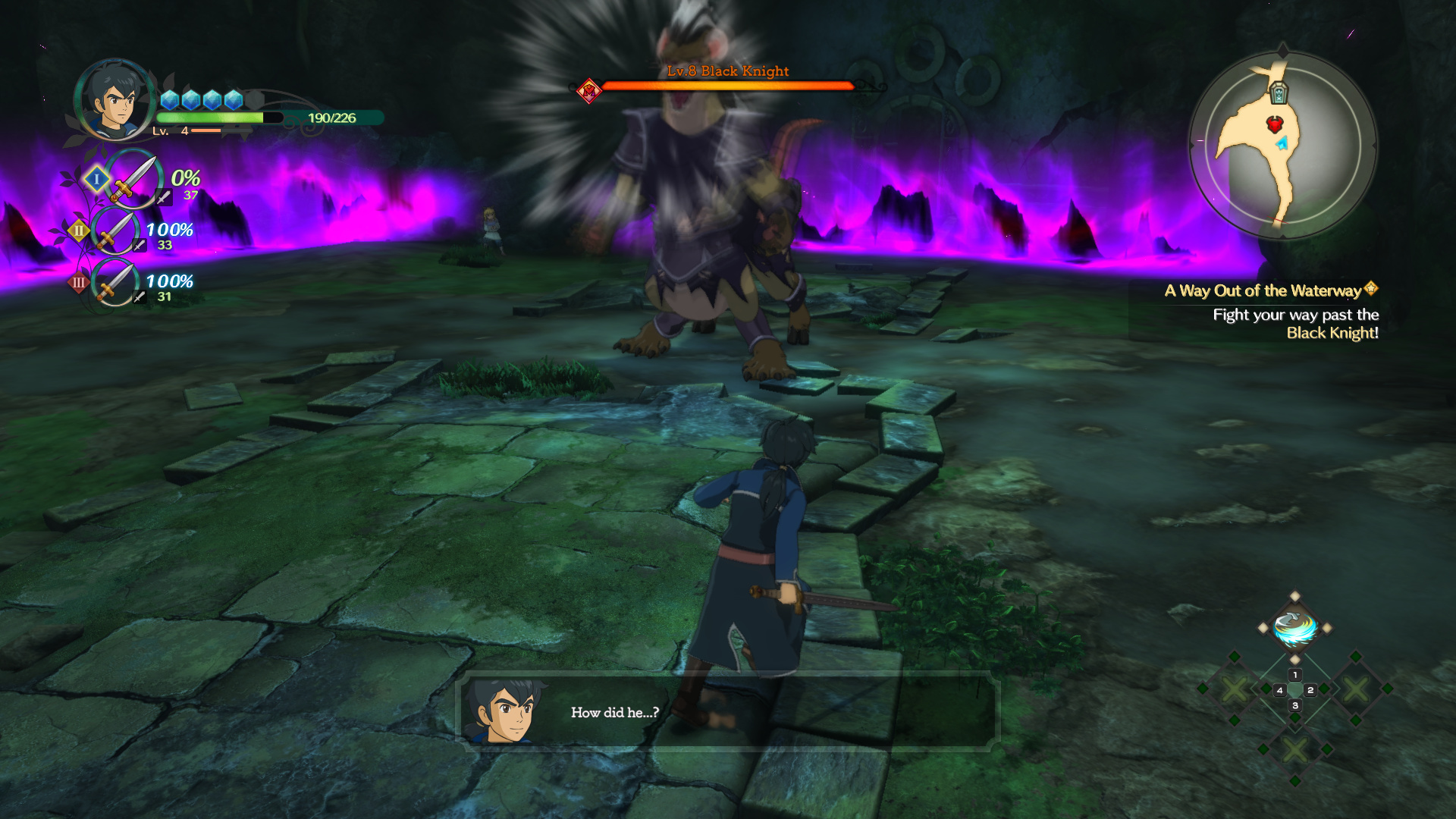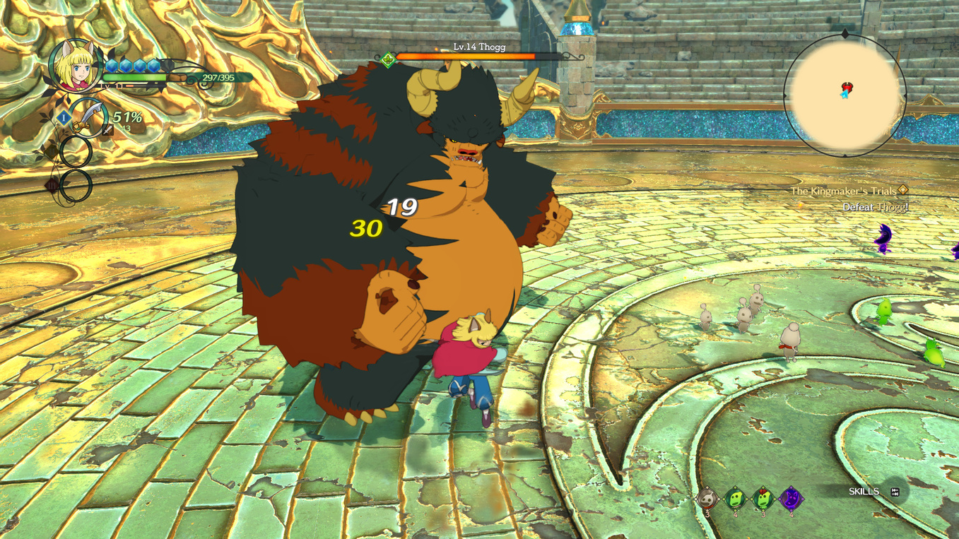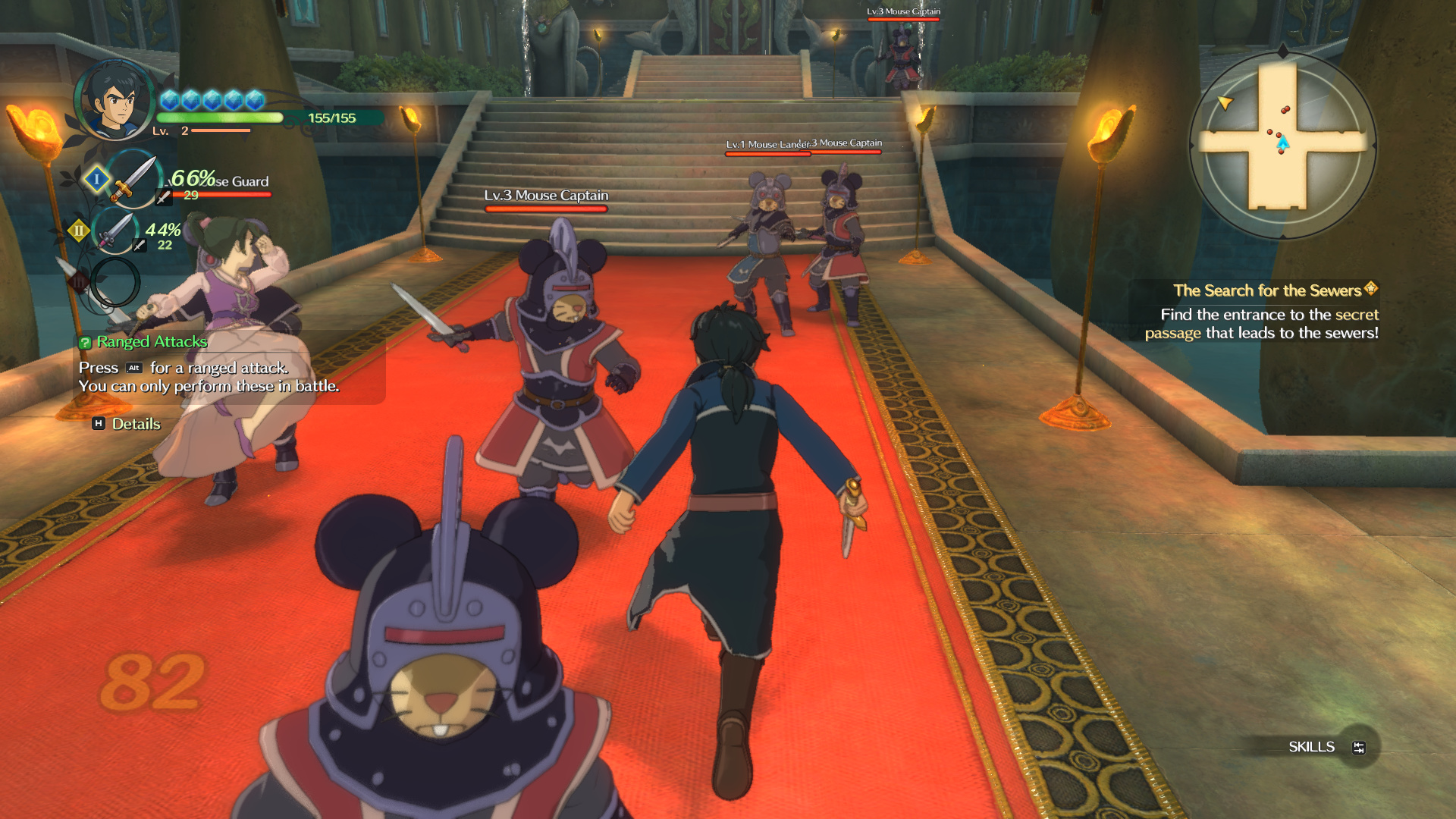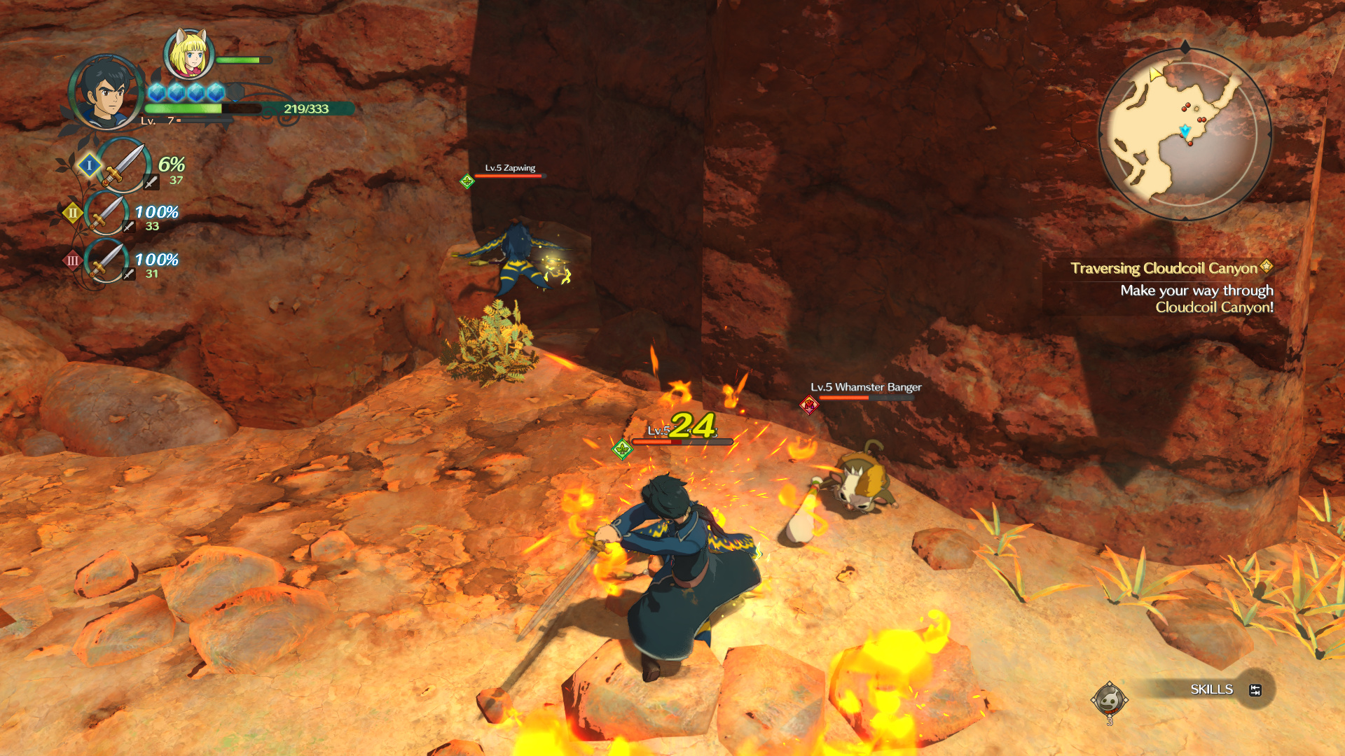 This area is absolutely littered with wyverns. Fortunately, I levelled up a bit offscreen. Grinding for levels in Ni no Kuni 2 is kind of a slow process and isn’t really encouraged, but I did it mostly to see if I could get some better weapons to drop.