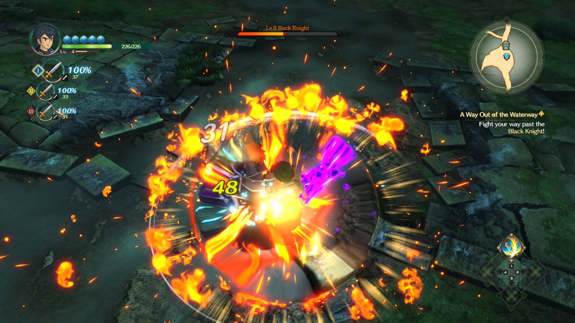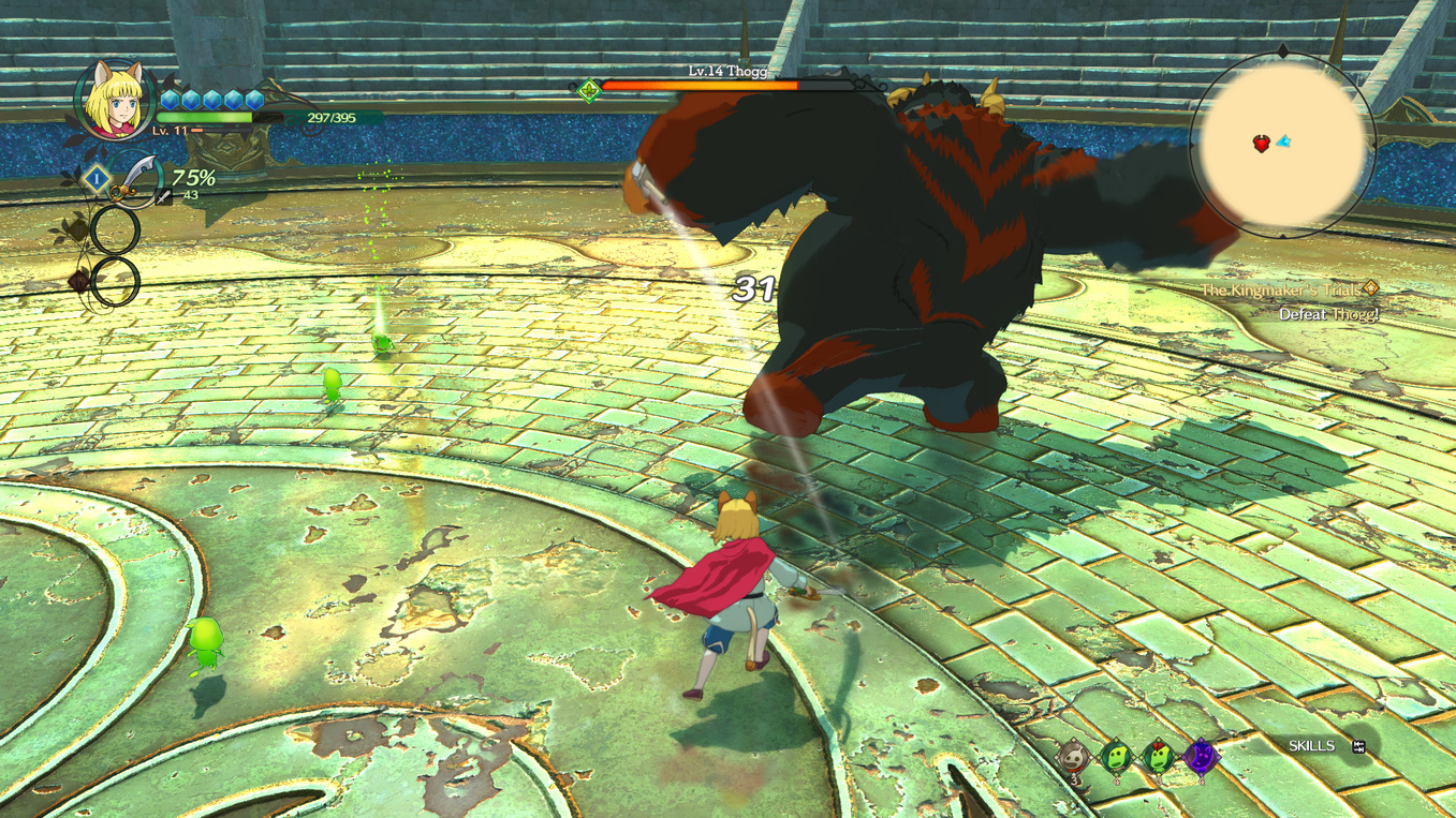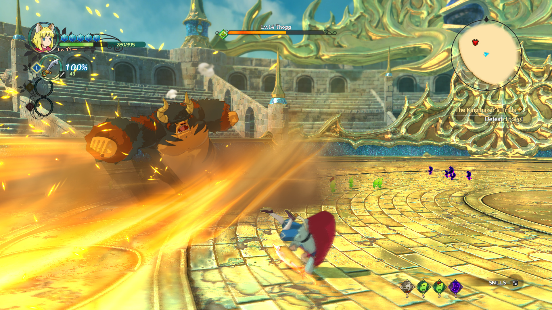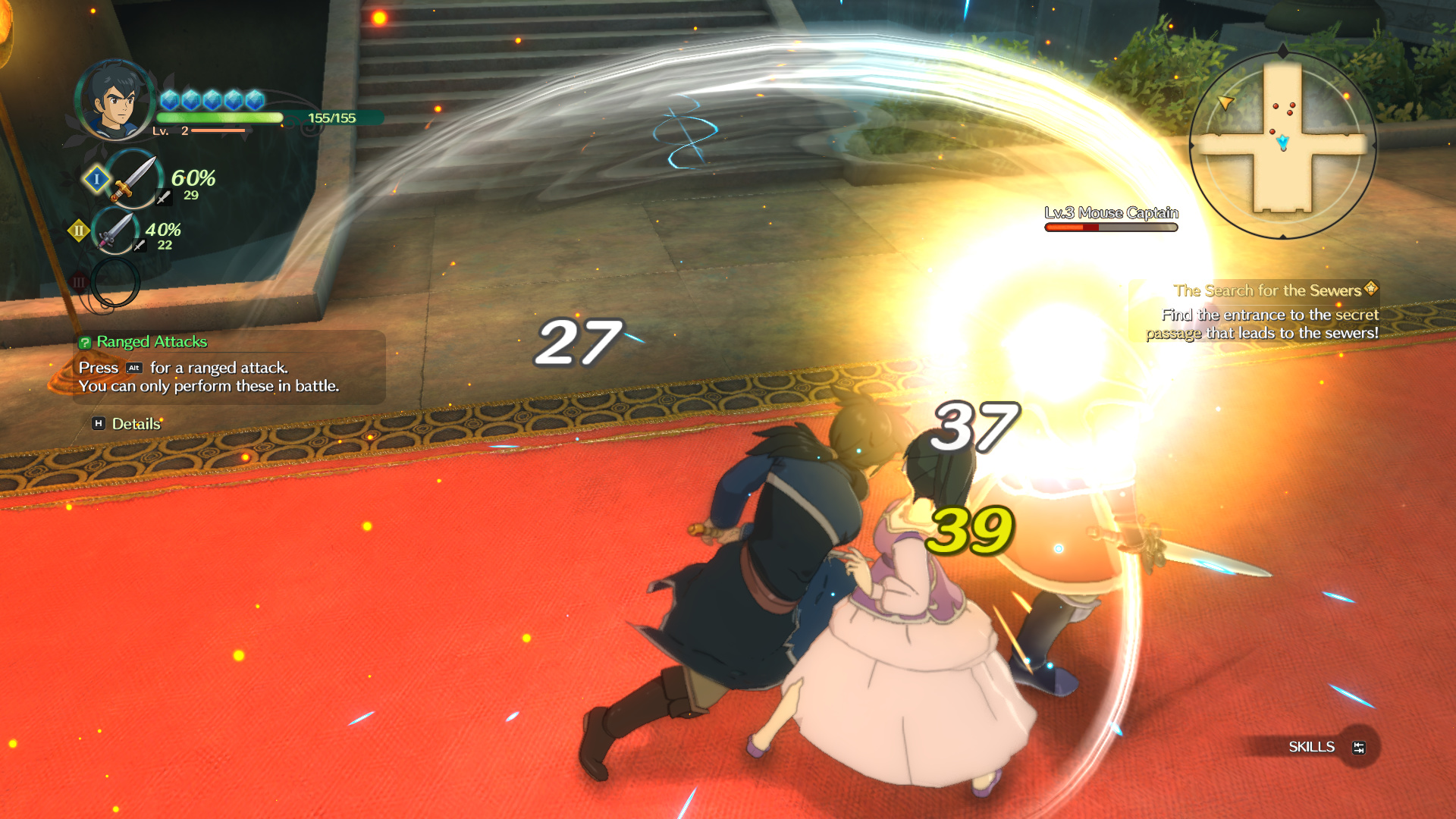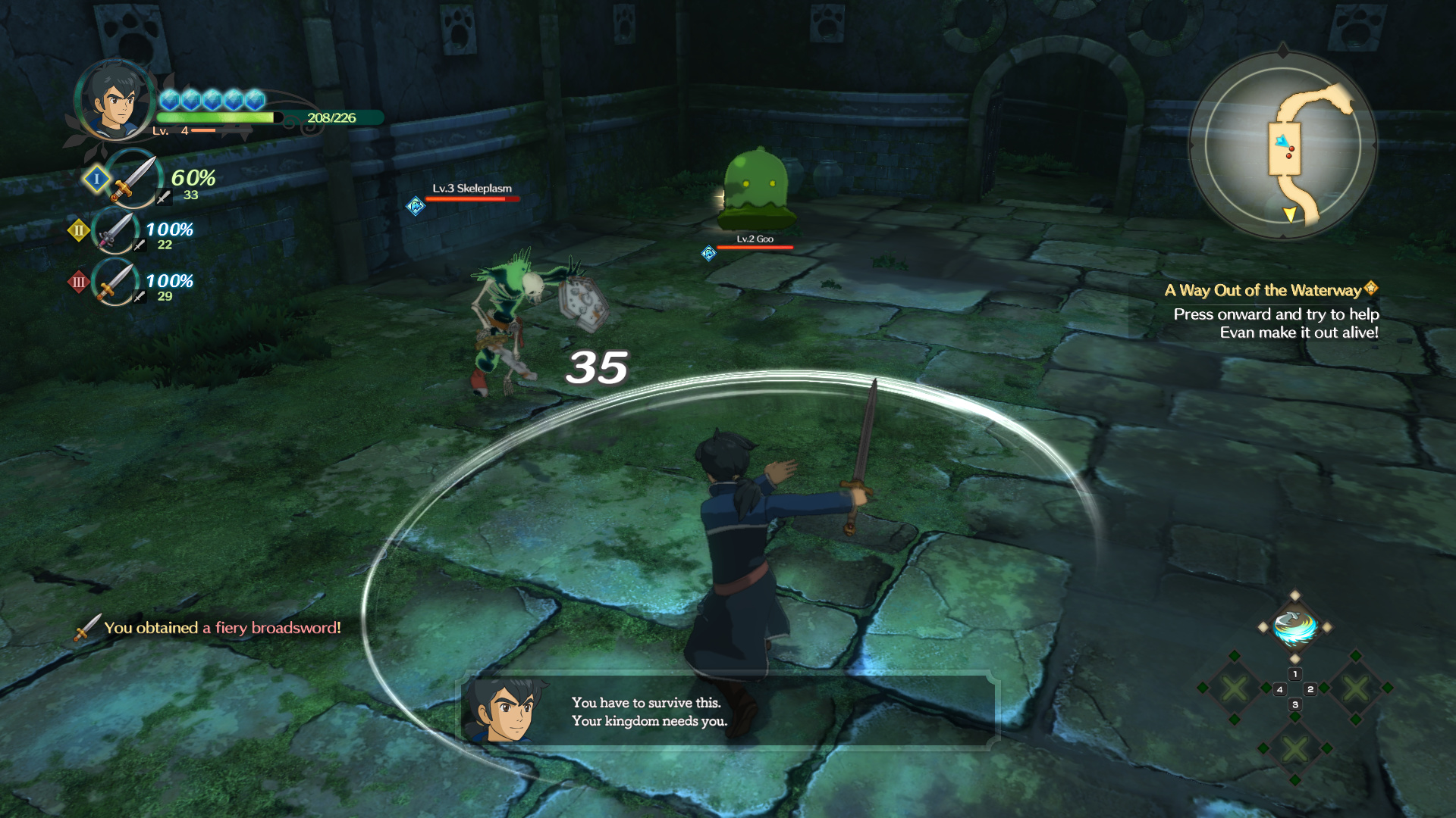 This area is absolutely littered with wyverns. Fortunately, I levelled up a bit offscreen. Grinding for levels in Ni no Kuni 2 is kind of a slow process and isn’t really encouraged, but I did it mostly to see if I could get some better weapons to drop.