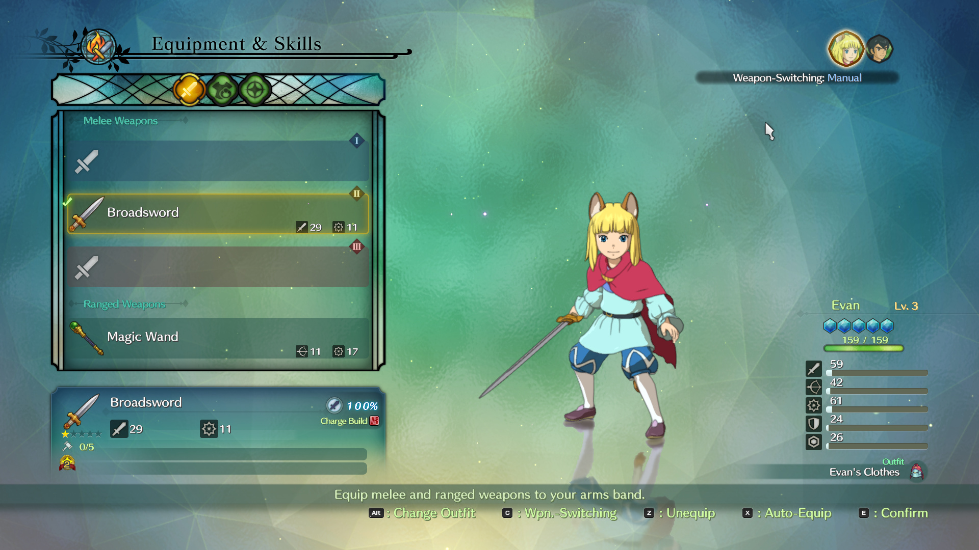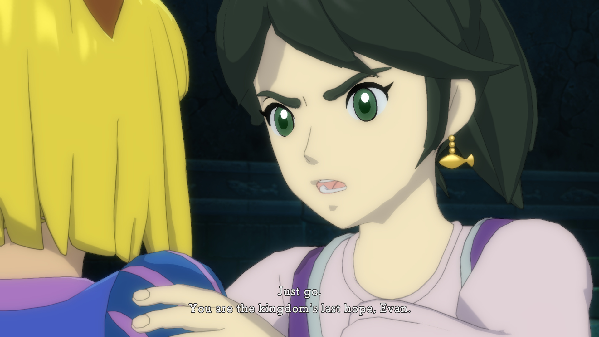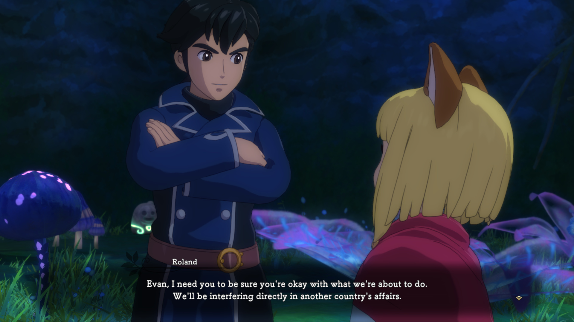 Before we go in, I un-equipped the best sword off Roland and put it on Evan. You might ask why I didn’t bother equipping three weapons: that’s because zing is fucking useless once you gain the ability to use higgledies to charge attacks.. and because I primarily use Roland in combat and the AI doesn’t tend to use zing very often even when it has it available.