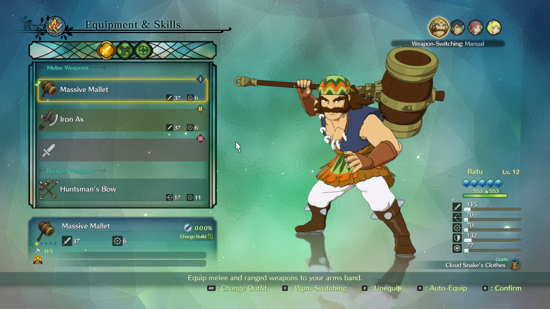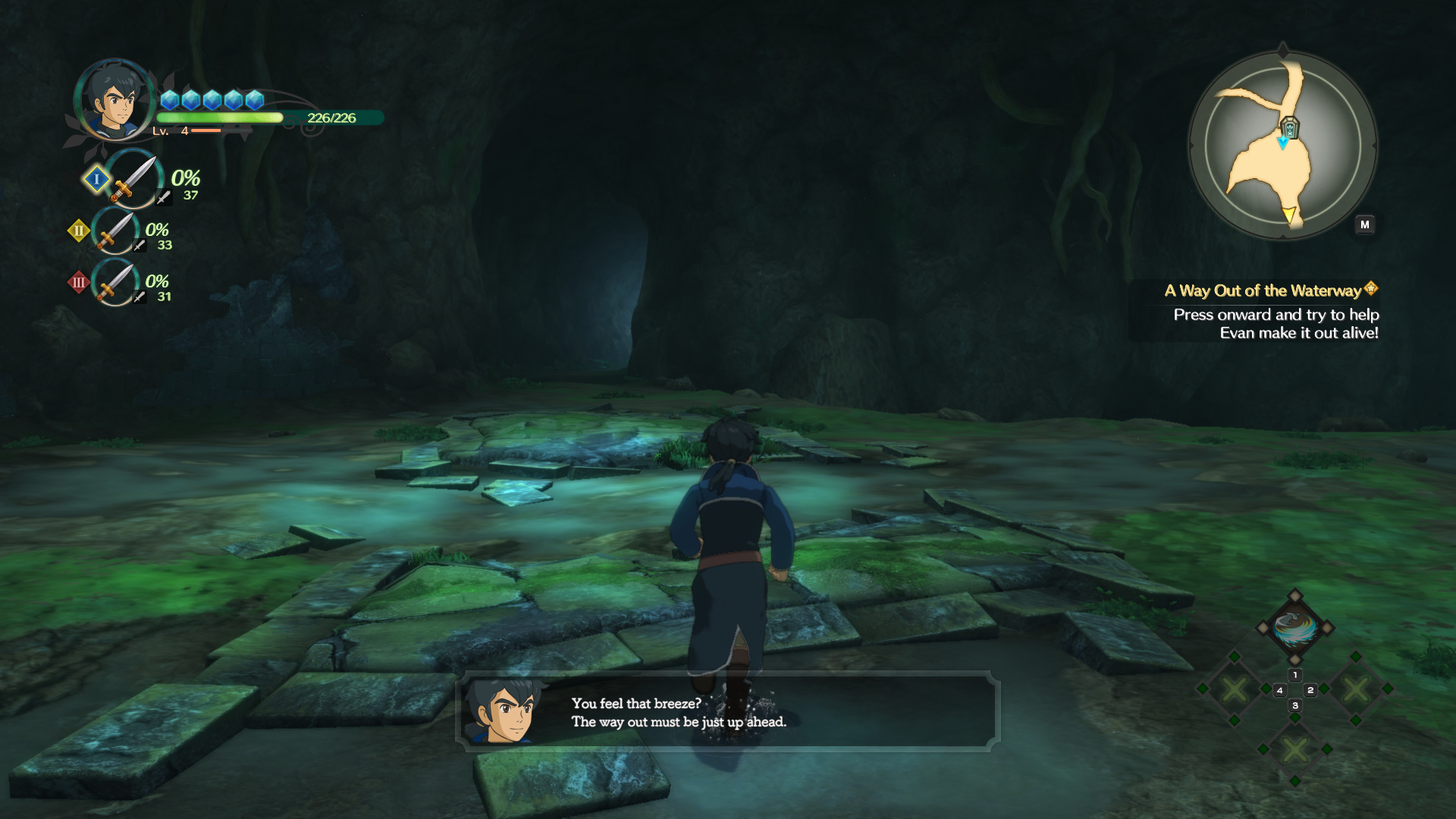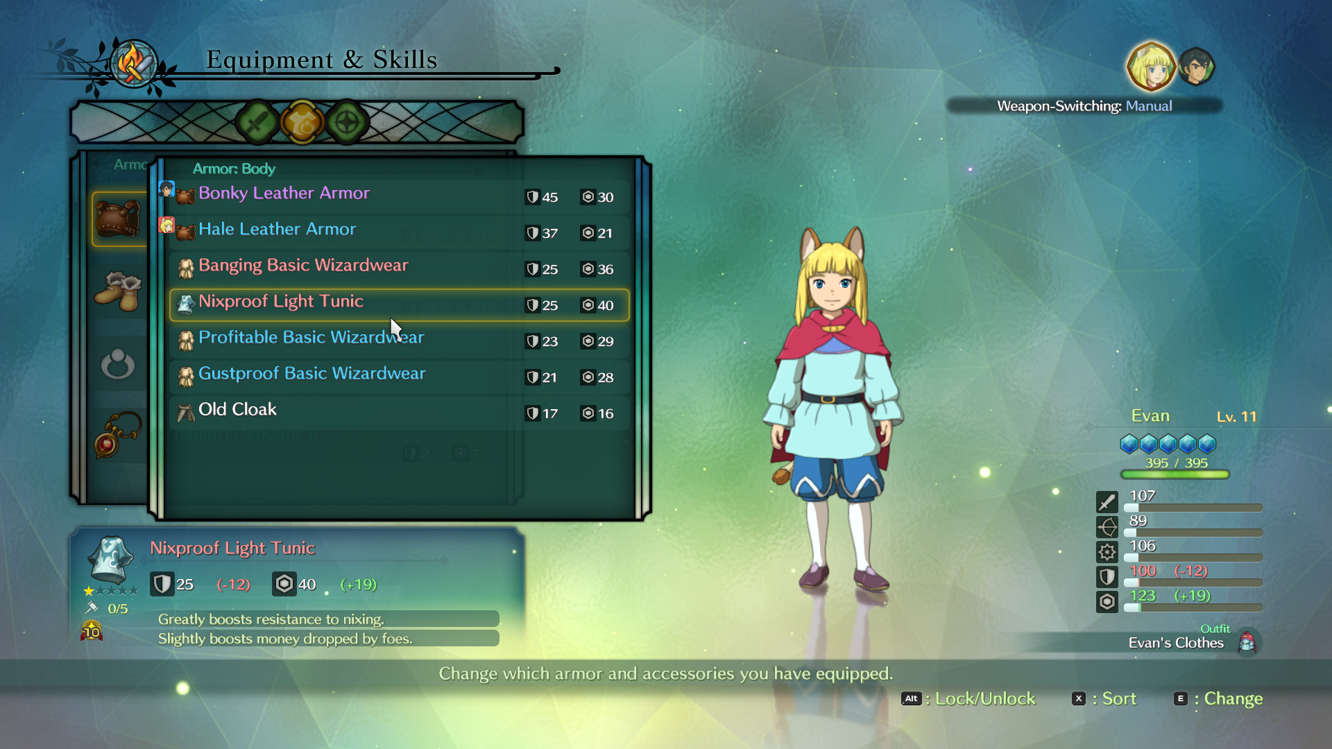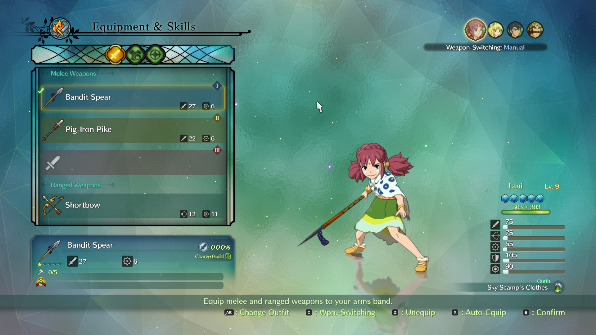 Before we go in, I un-equipped the best sword off Roland and put it on Evan. You might ask why I didn’t bother equipping three weapons: that’s because zing is fucking useless once you gain the ability to use higgledies to charge attacks.. and because I primarily use Roland in combat and the AI doesn’t tend to use zing very often even when it has it available.