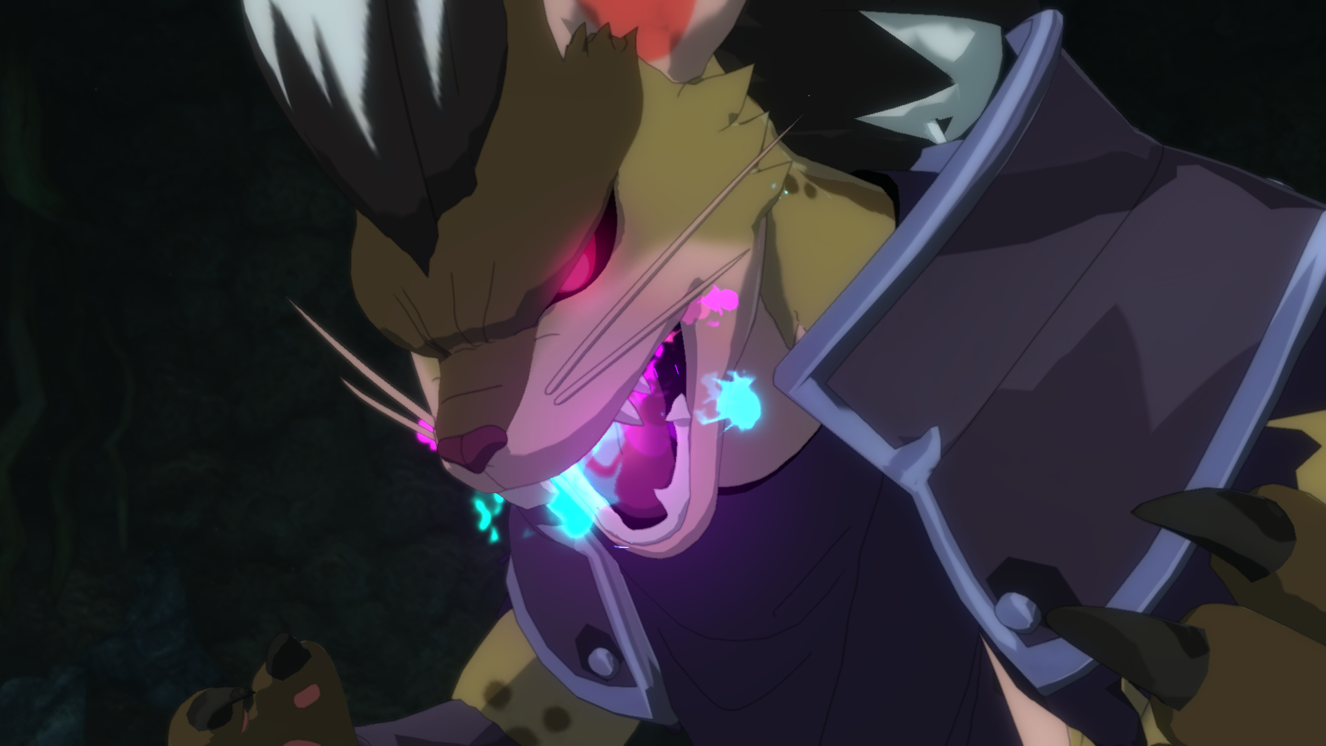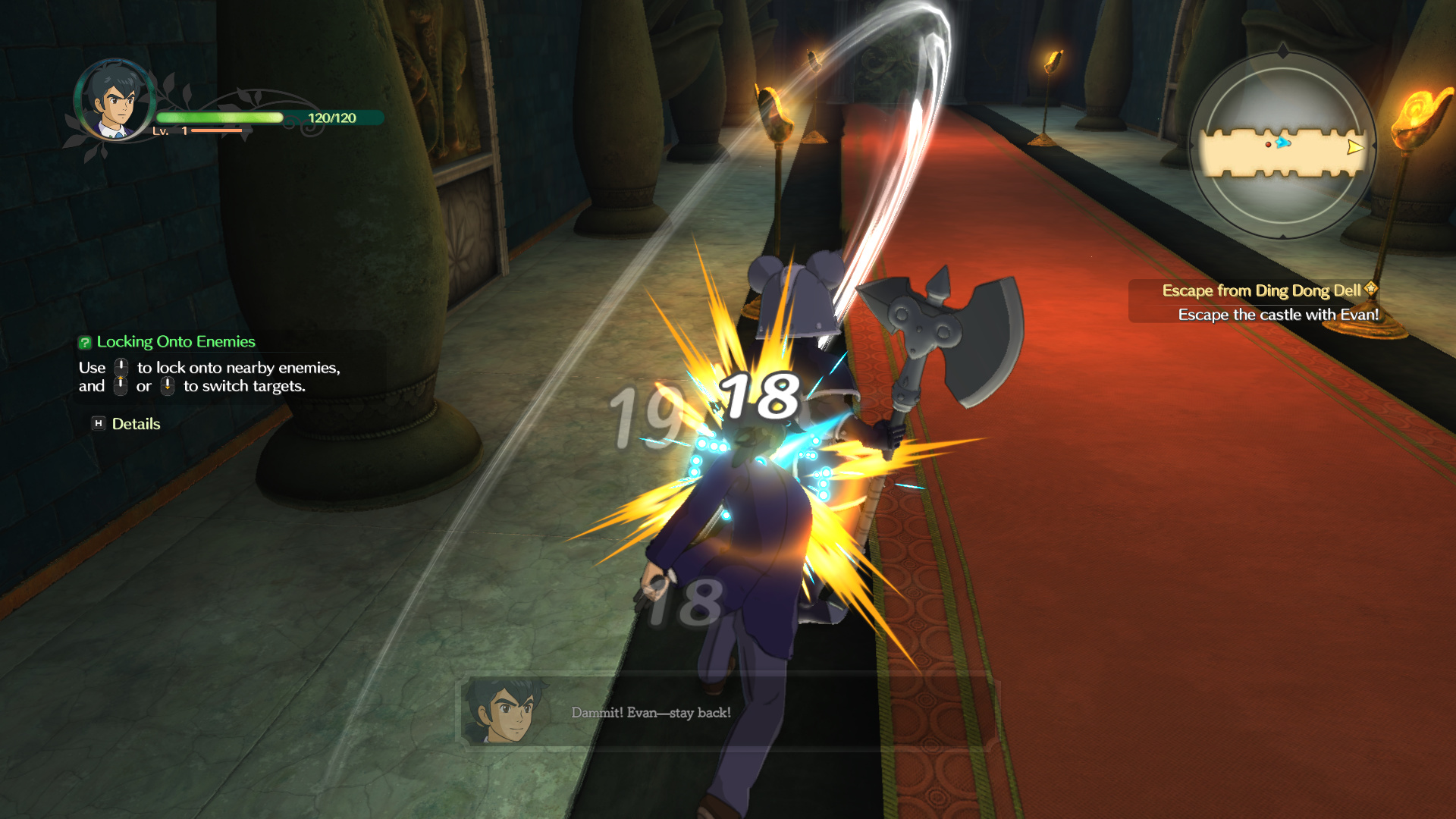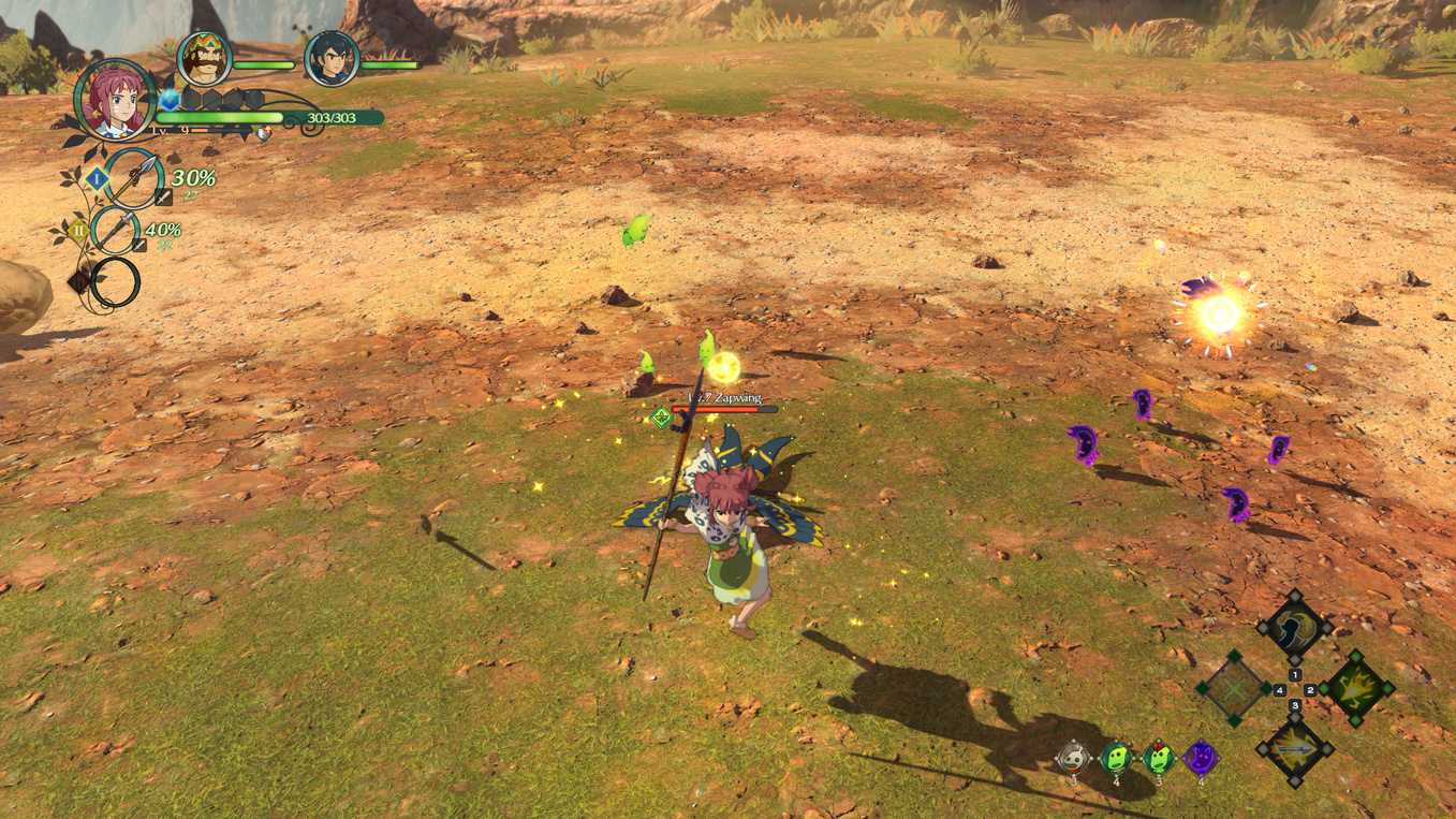 On normal mode, this is a fairly easy fight - the boss mostly attacks by running around in circles swinging his axes. The obvious strategy is to get behind him and spam light attacks.. though he is capable of turning pretty quickly and can hit some of the area behind him. This, by the way, is the special for most of the wind-elemental higgledies. In case you’re curious, the reason Evan’s HP is so low is because I took uh.. maybe two attacks from the boss?