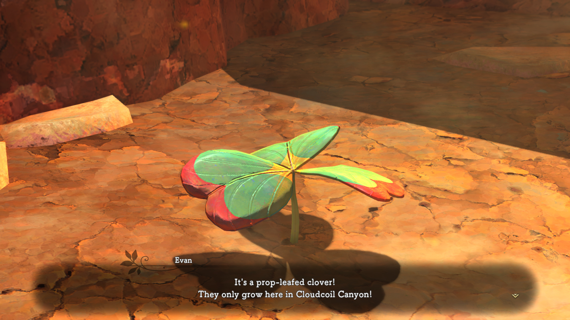 Once we get closer to the Wyvern’s Den, there’s a side path with some mushrooms. These are actually the equivalent of those prop clovers, only for the next area after Cloudcoil Canyon.