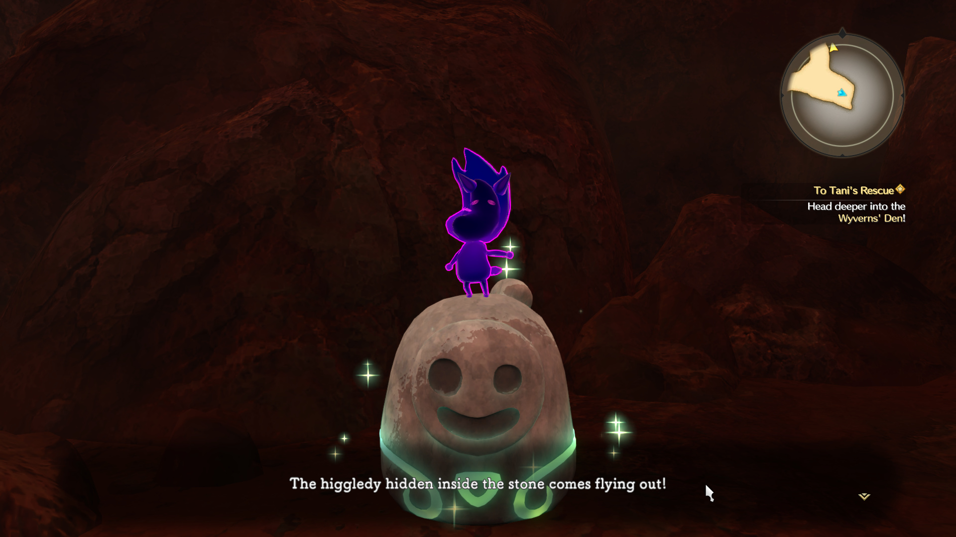 You might think the Wyvern’s Den is a dungeon, but it’s actually just a boss arena. In the pre-arena room, near the save point, there’s another higgledy stone. I picked up the item it wants in a chest near Crookneck Cavern, and it’s an element we don’t have, so we might as well grab it.