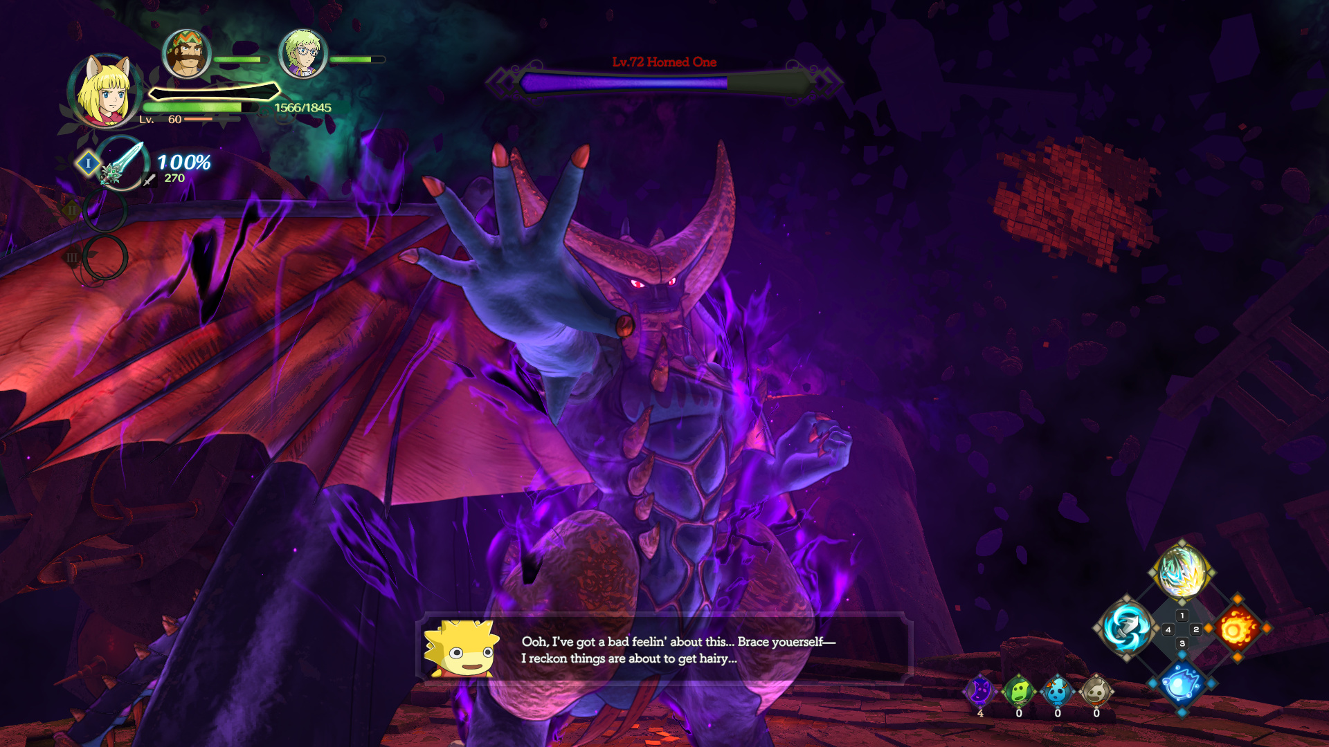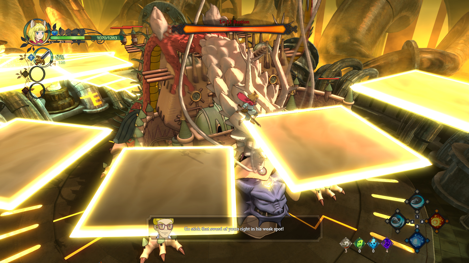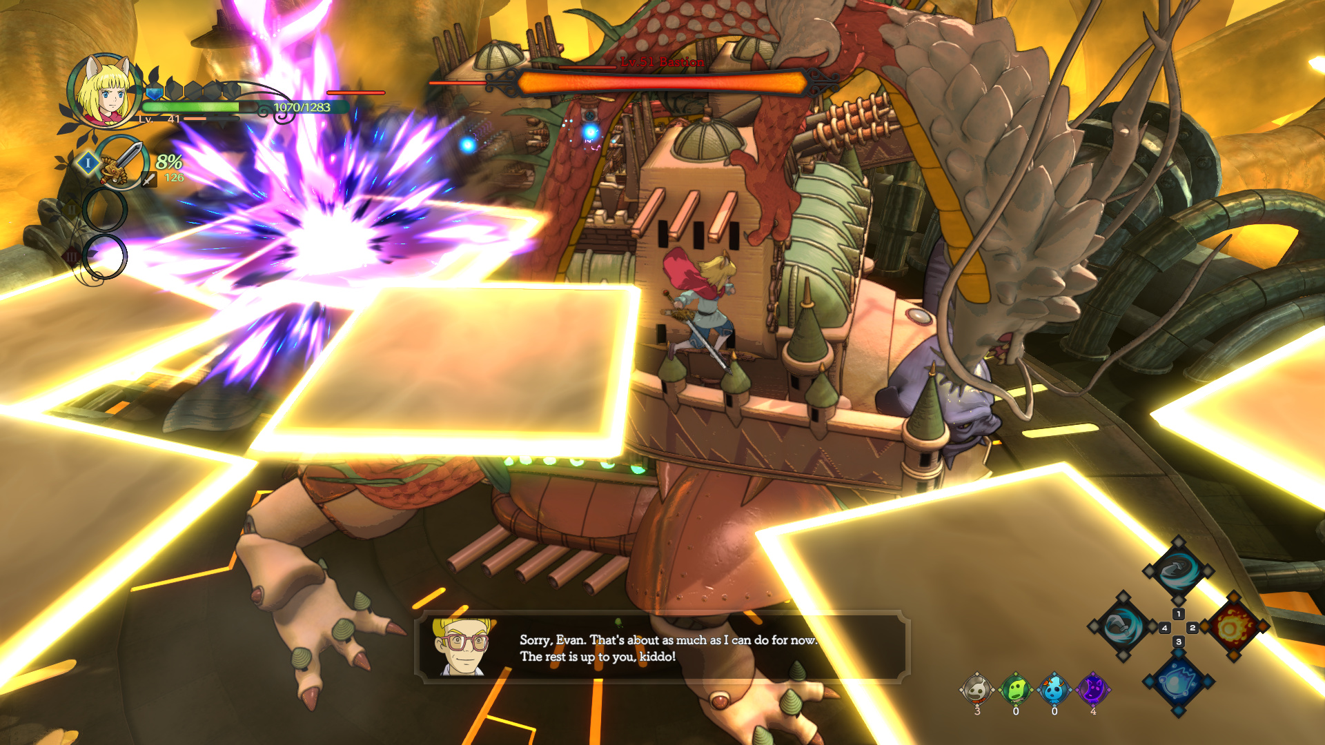 Between spamming circle cuts as Roland and Bracken and Evan beating on it, the boss spent most of its time on the ground until it died.