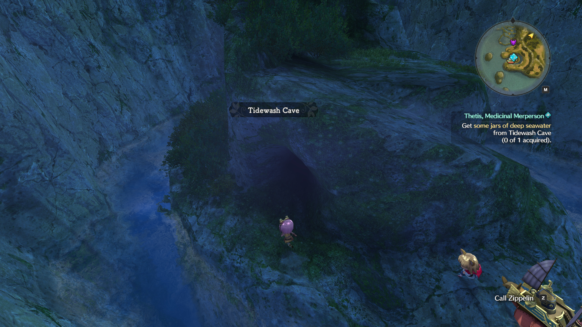 Next up is Tidewash Cave, which actually has its own trip door. Thankfully, you can in fact land on the tiny island it’s on using the airship.
