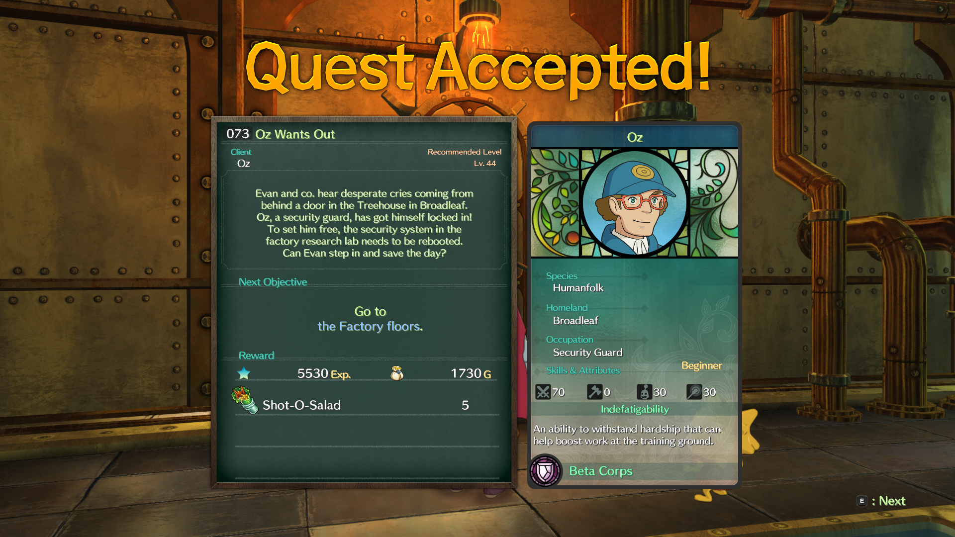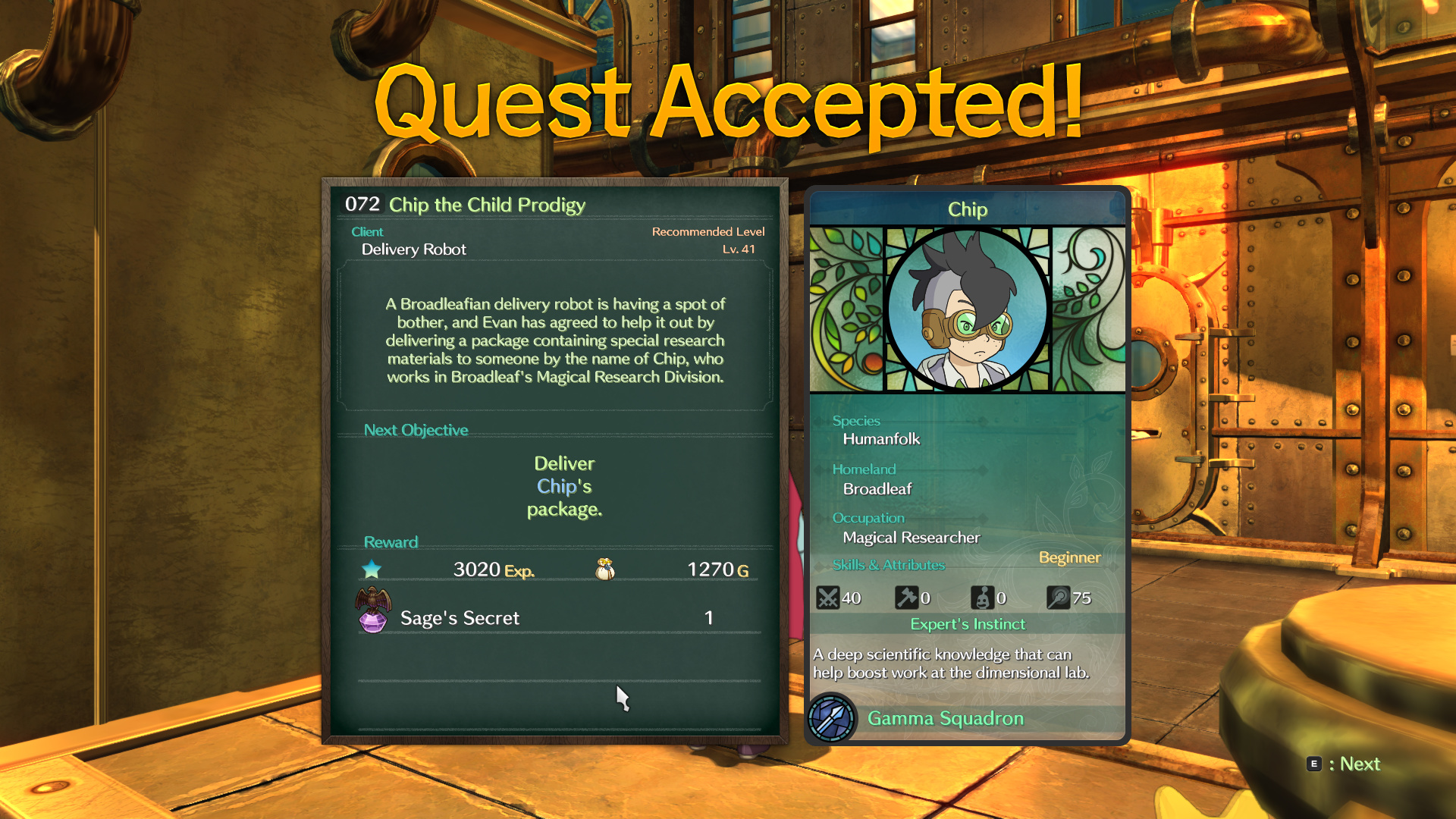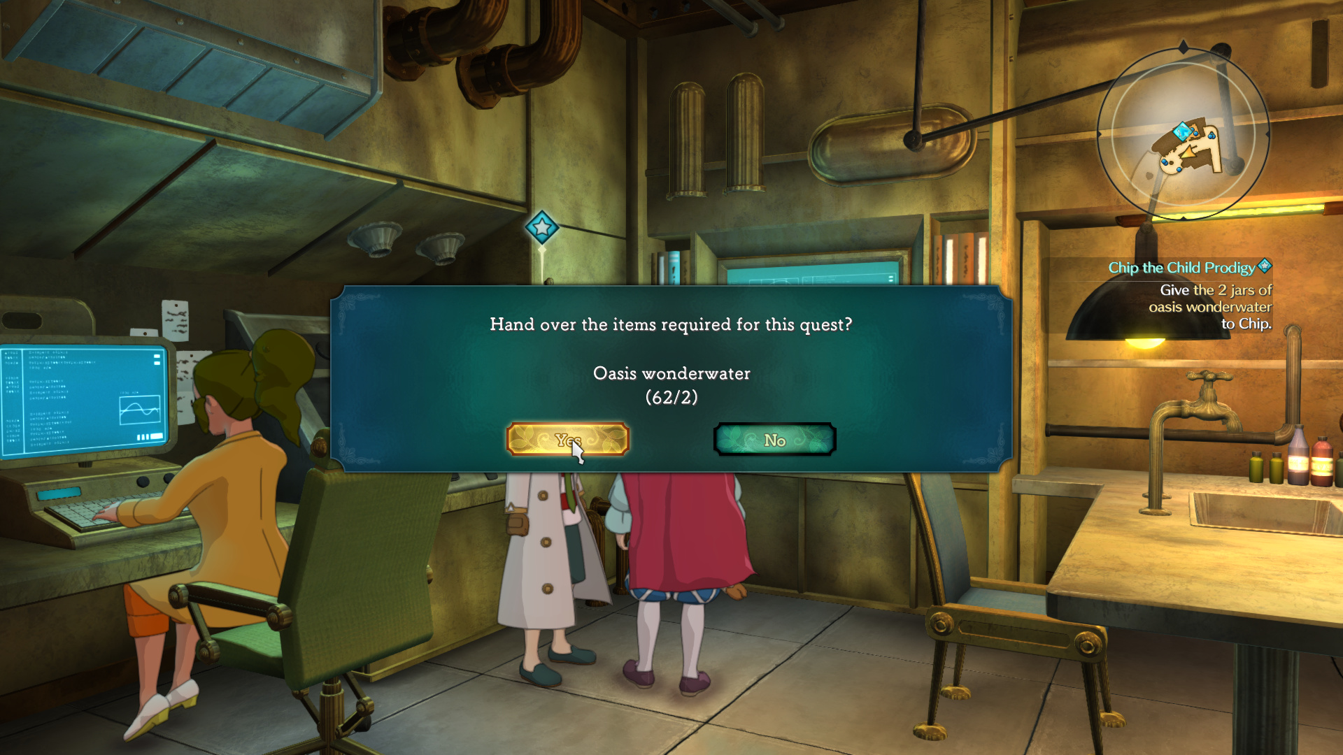 Before you start this quest, you’re going to want to build the Dimensional Lab (there’s an upgraded version you can get at KL3 but it’s largely meant for NNK2’s equivalent of the Pit of 100 Trials/Chrysler Building/Mementos) and get a couple of research items done.