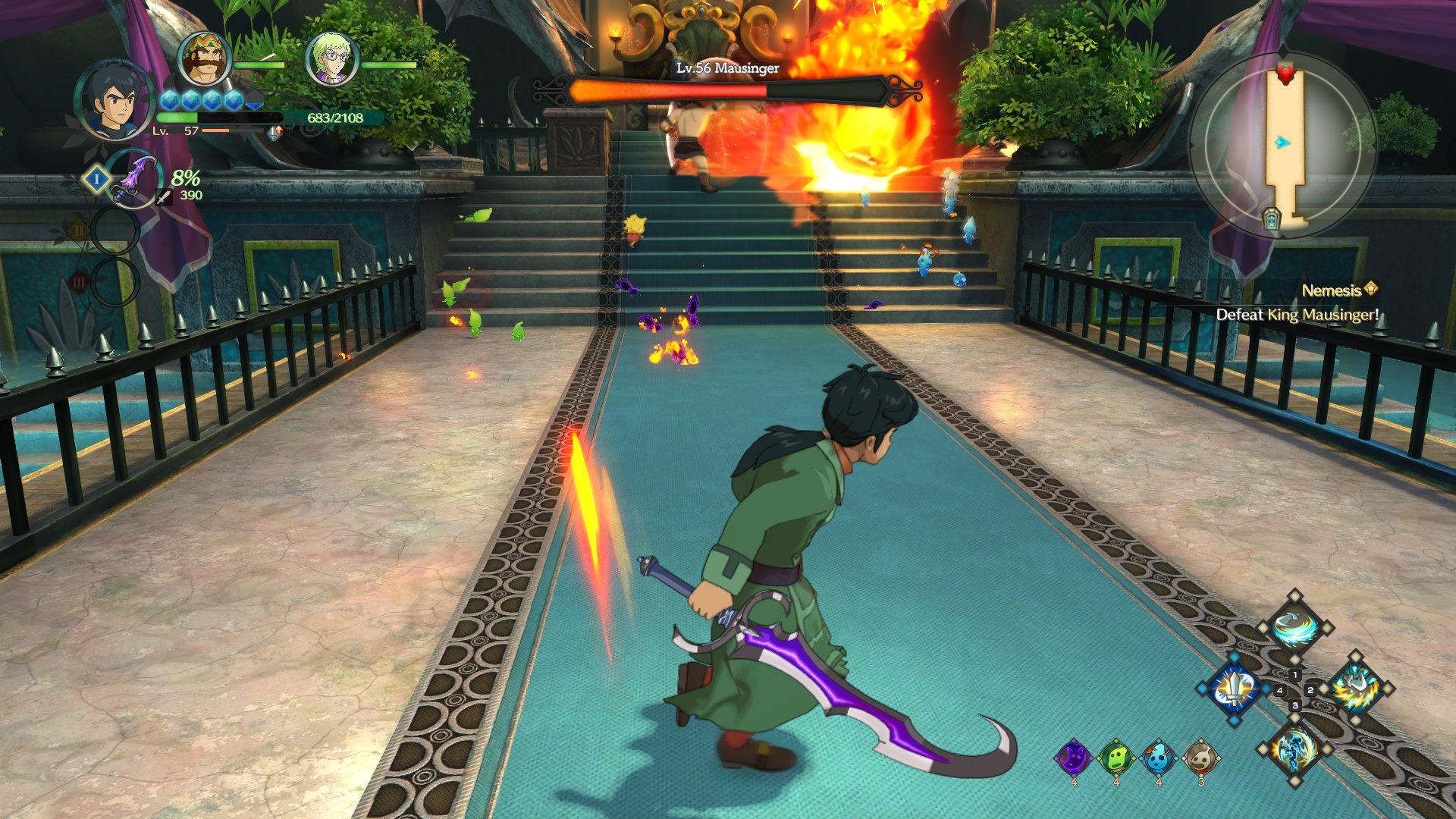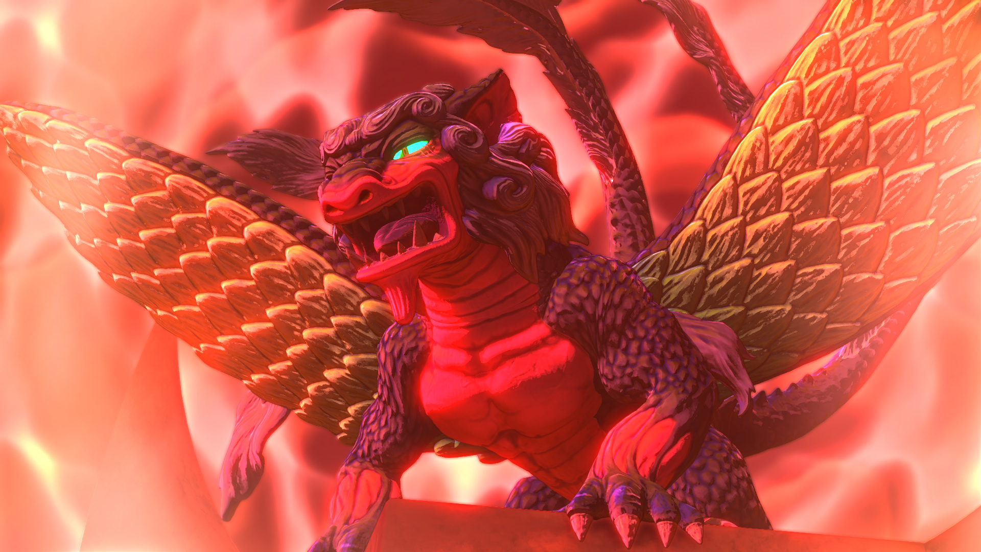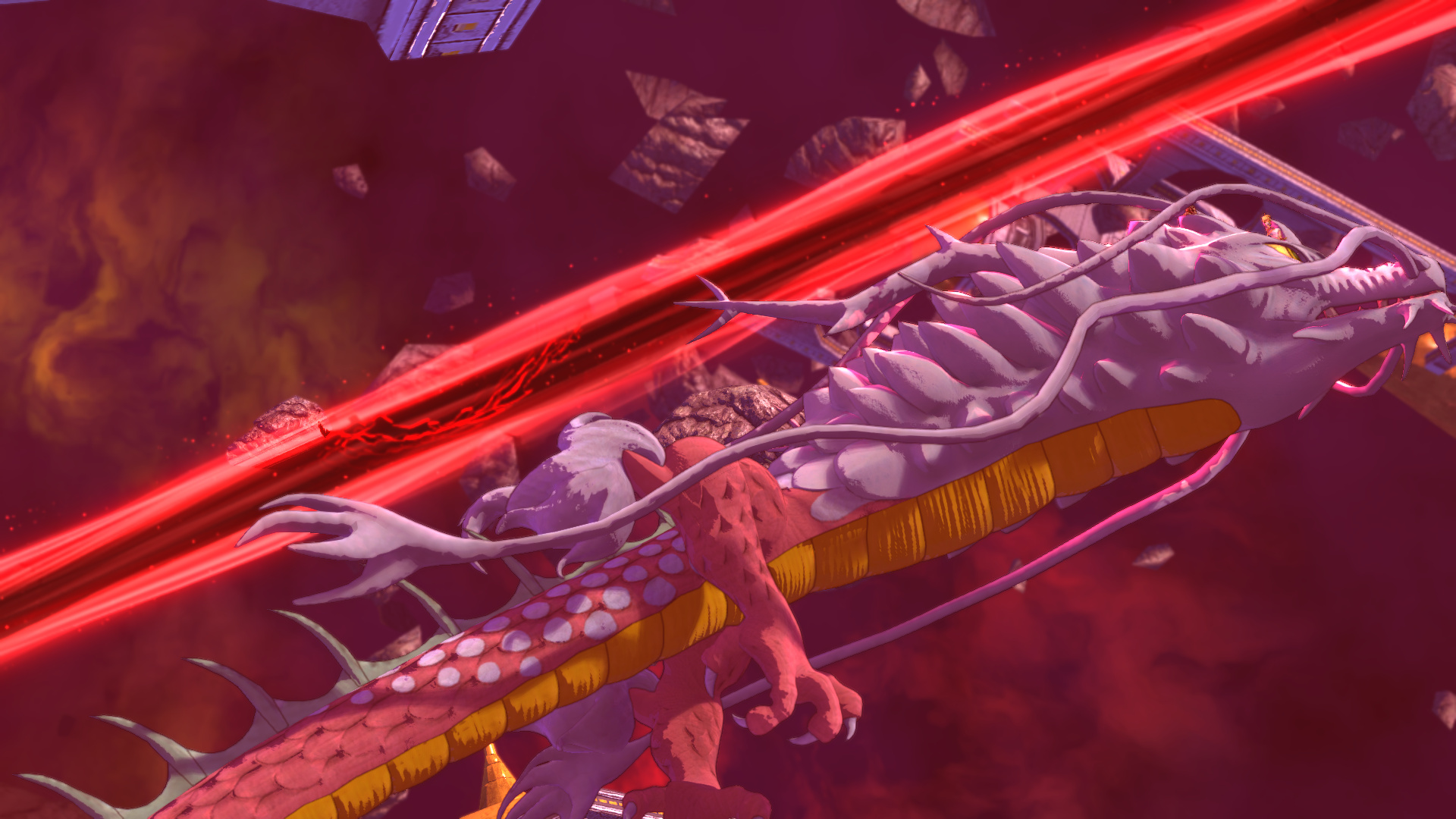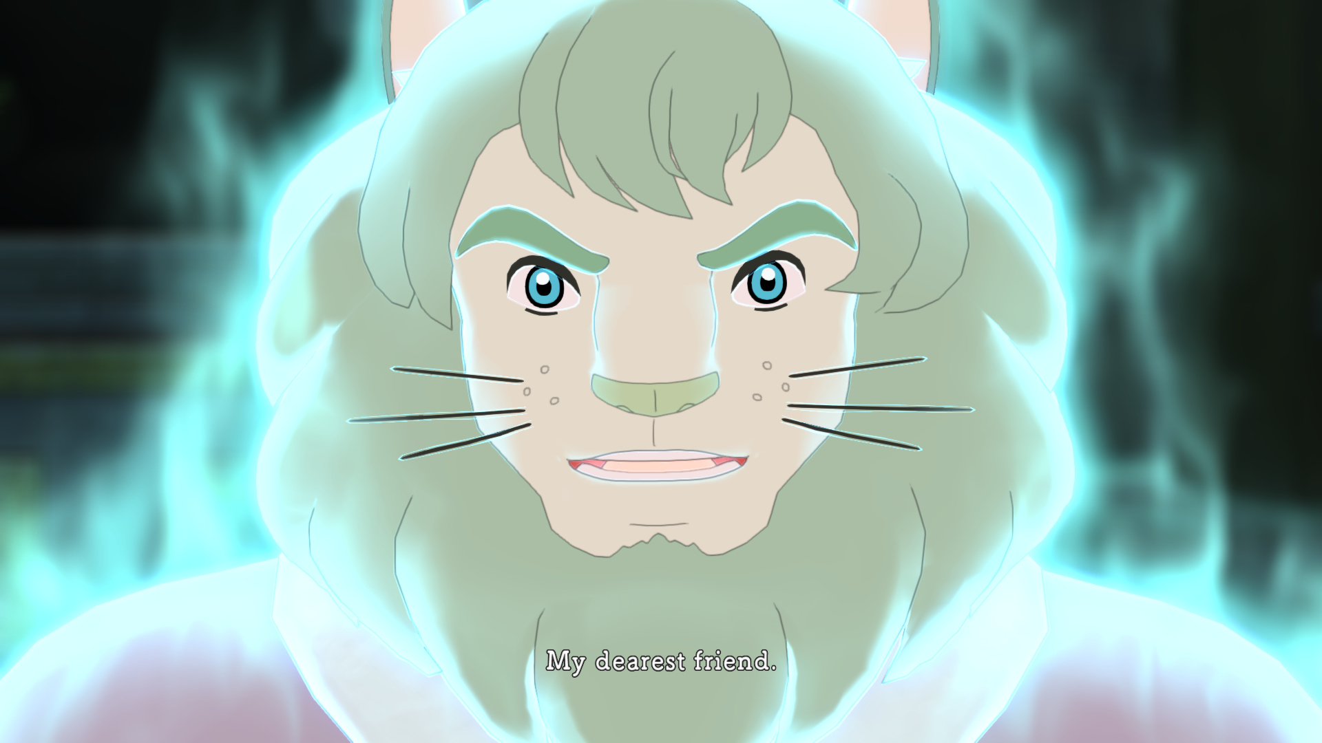 His most damaging attack requires a long charge before he does a forward dash attack that carries him clear to the other side of the room. This is by no means a threat because it’s dead easy to dodge.