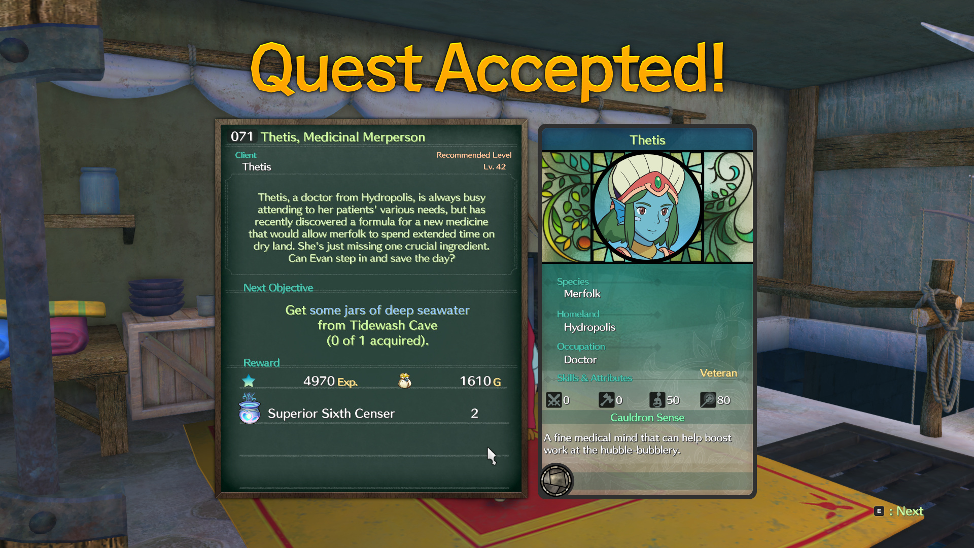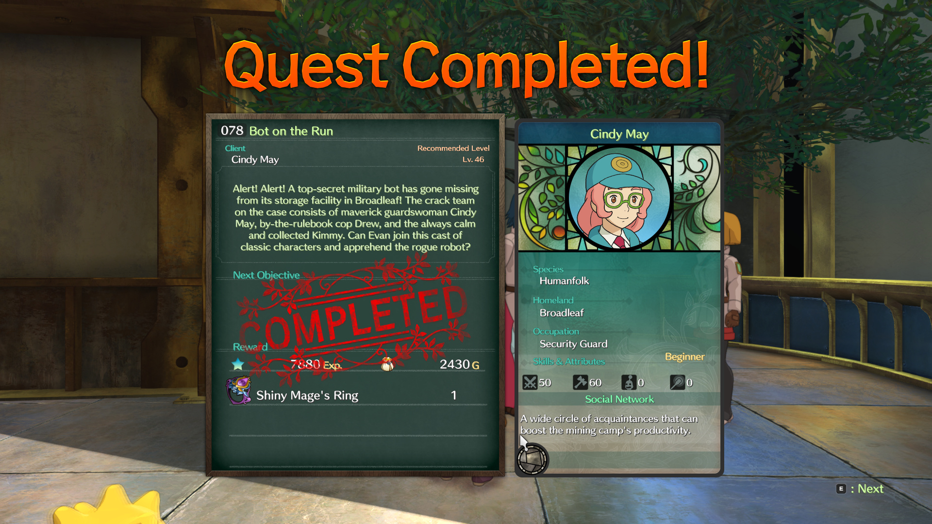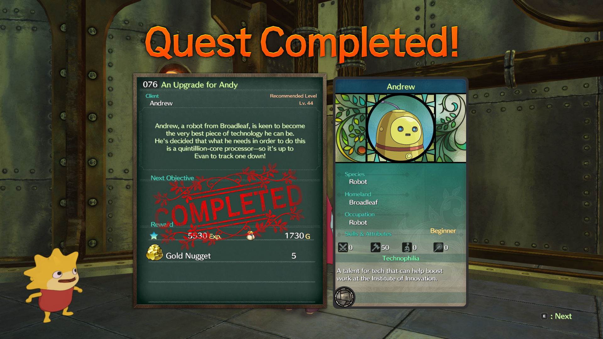 If you’ll remember, back when we got the first sidequest for Martha, we got a second one to visit all of the randomly-generated dungeons in the game and finish them. This is not the worst sidequest in the game - the actual worst sidequest is a post-game one needed for Kingdom Level 4 that requires you to have done 200 errands for Swift Solutions. However, it is a LONG sidequest and also requires a few kingdom management upgrades that exist solely for this quest.