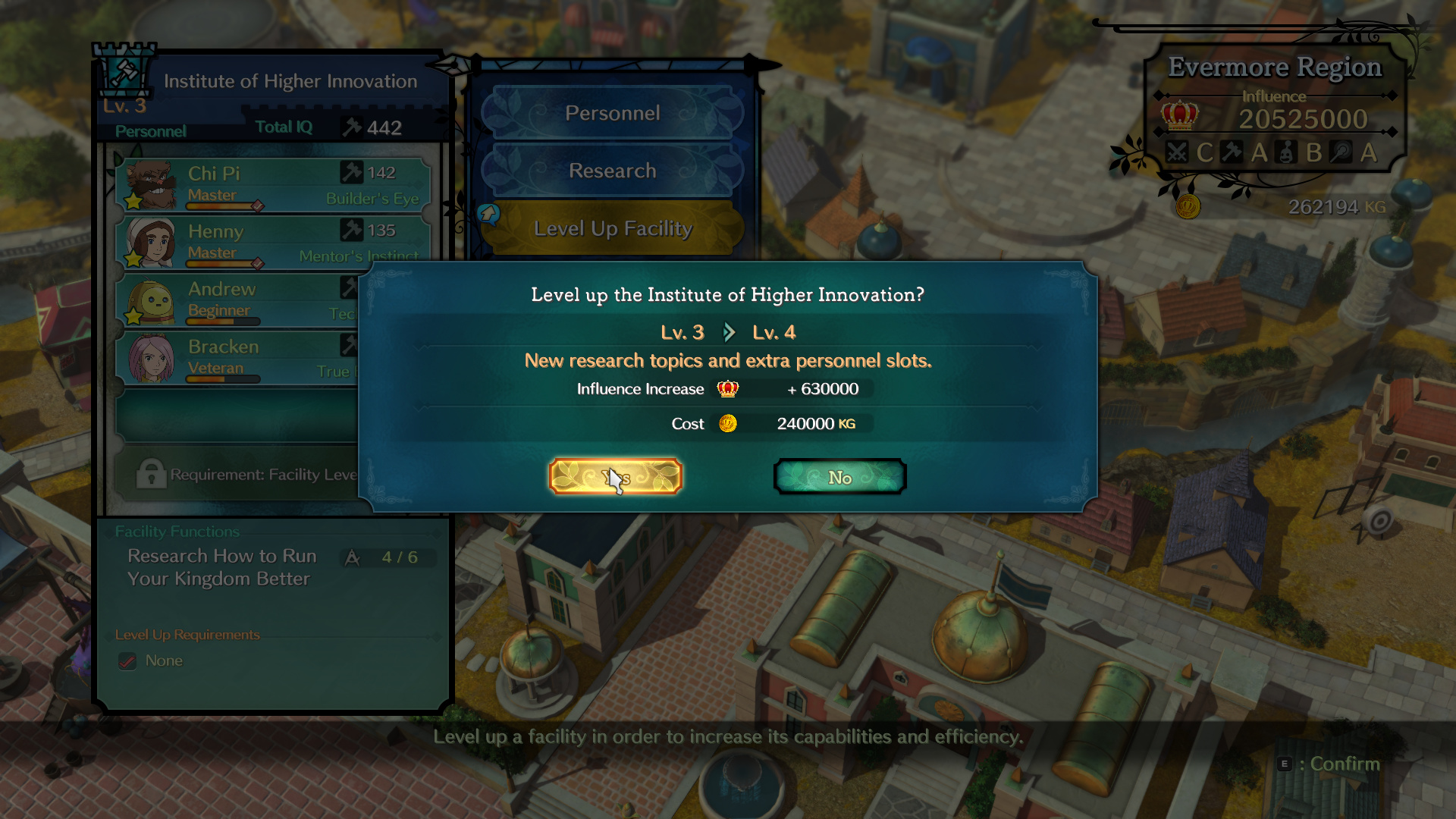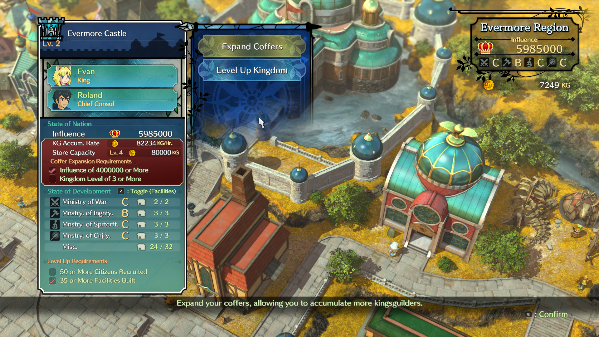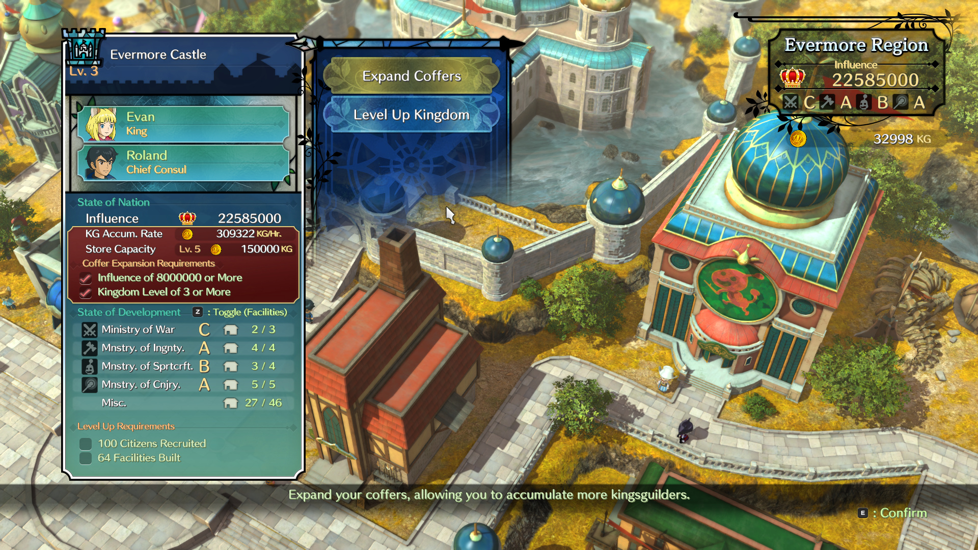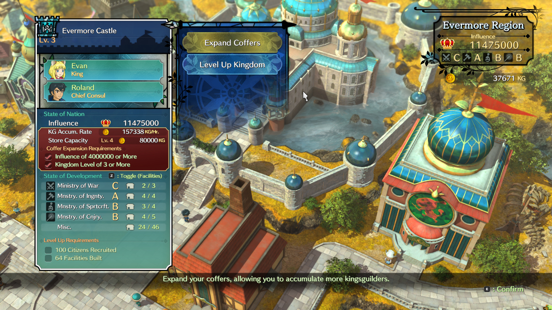 If you’re wondering how much I managed to grind kingdom management mode during this whole thing, the answer is that the LP kingdom is now actually better than my first playthrough’s kingdom in terms of income, and I still haven’t upgraded a few of the big-influence buildings all the way.