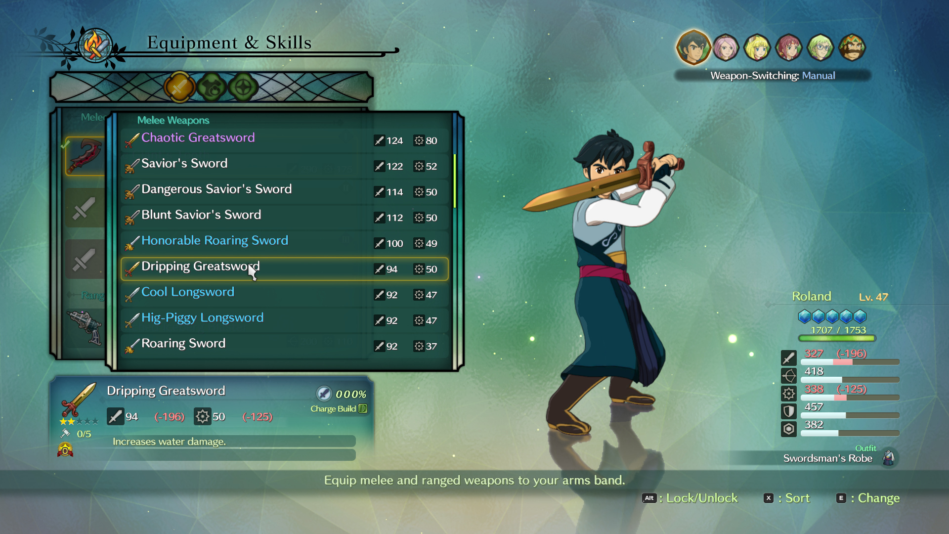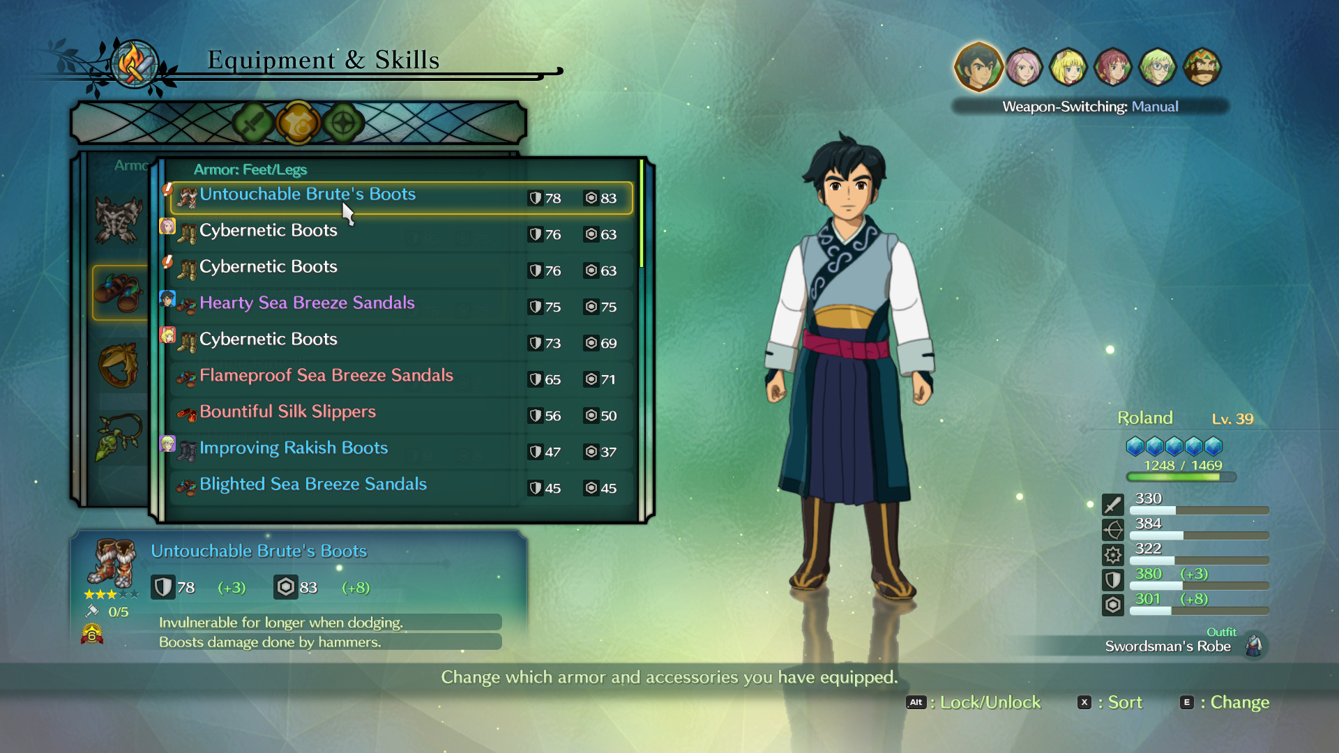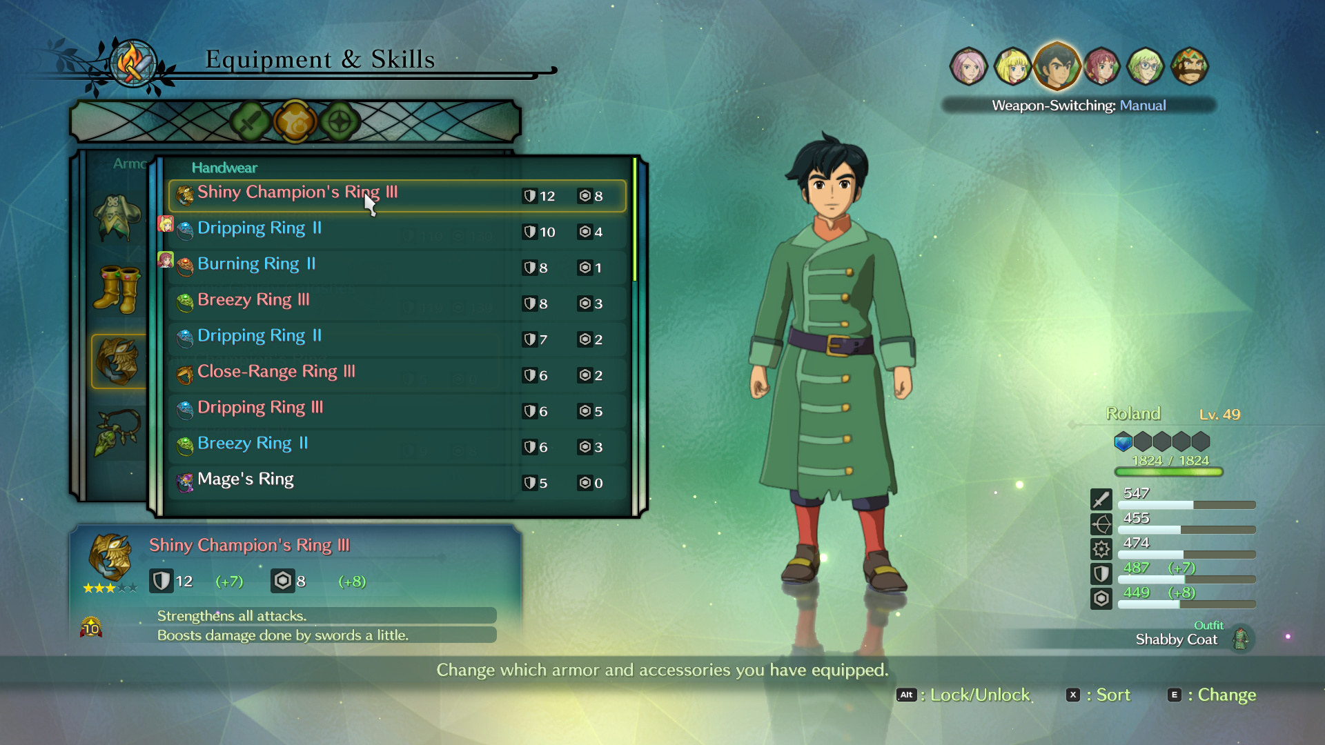 The only other good drop I found was a ring that boosts all damage and also boosts sword damage, so I equipped that to Roland straightaway.