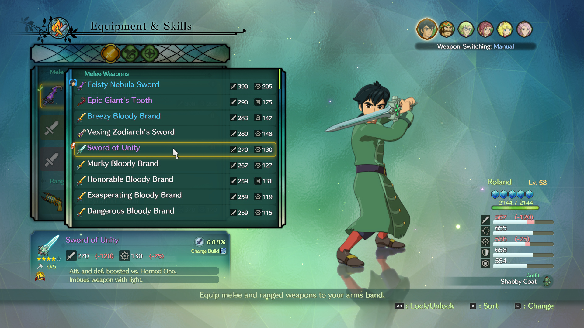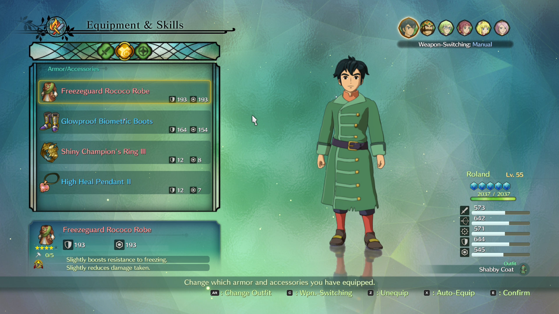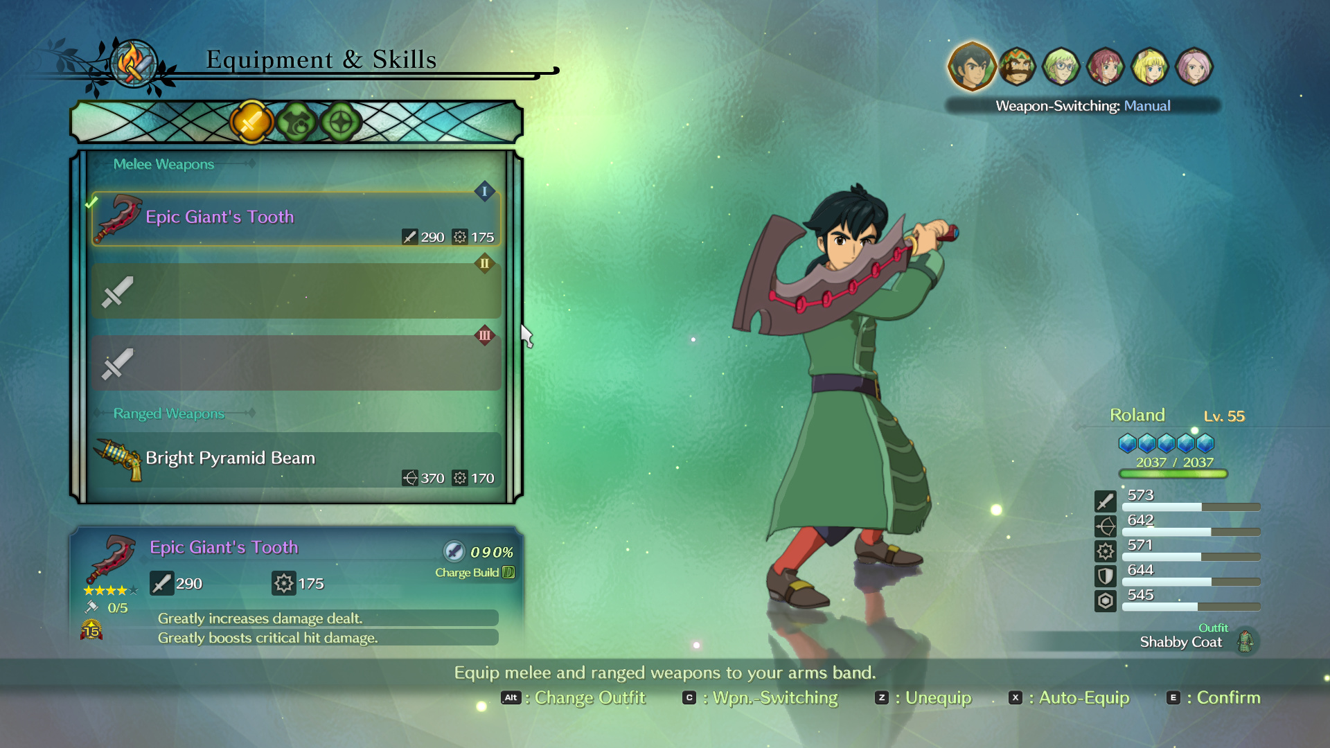 The only other good drop I found was a ring that boosts all damage and also boosts sword damage, so I equipped that to Roland straightaway.