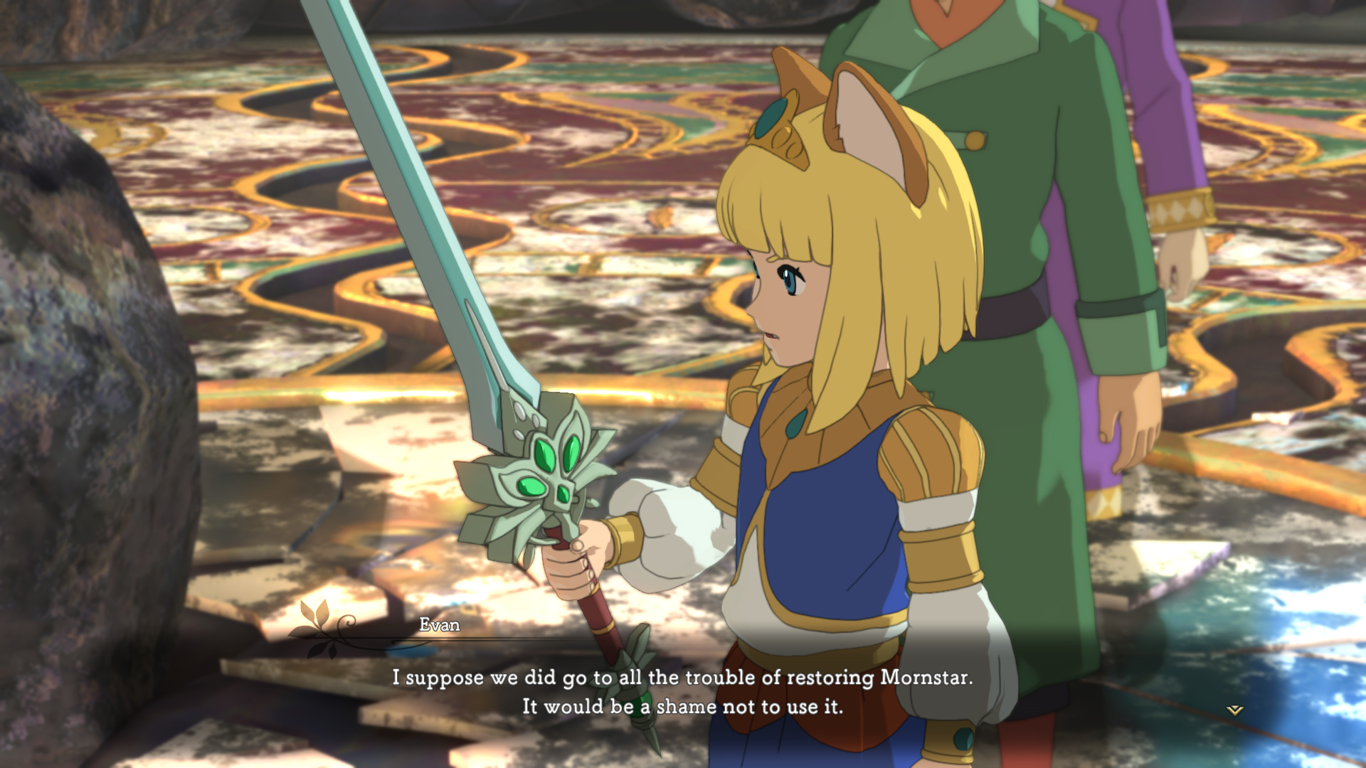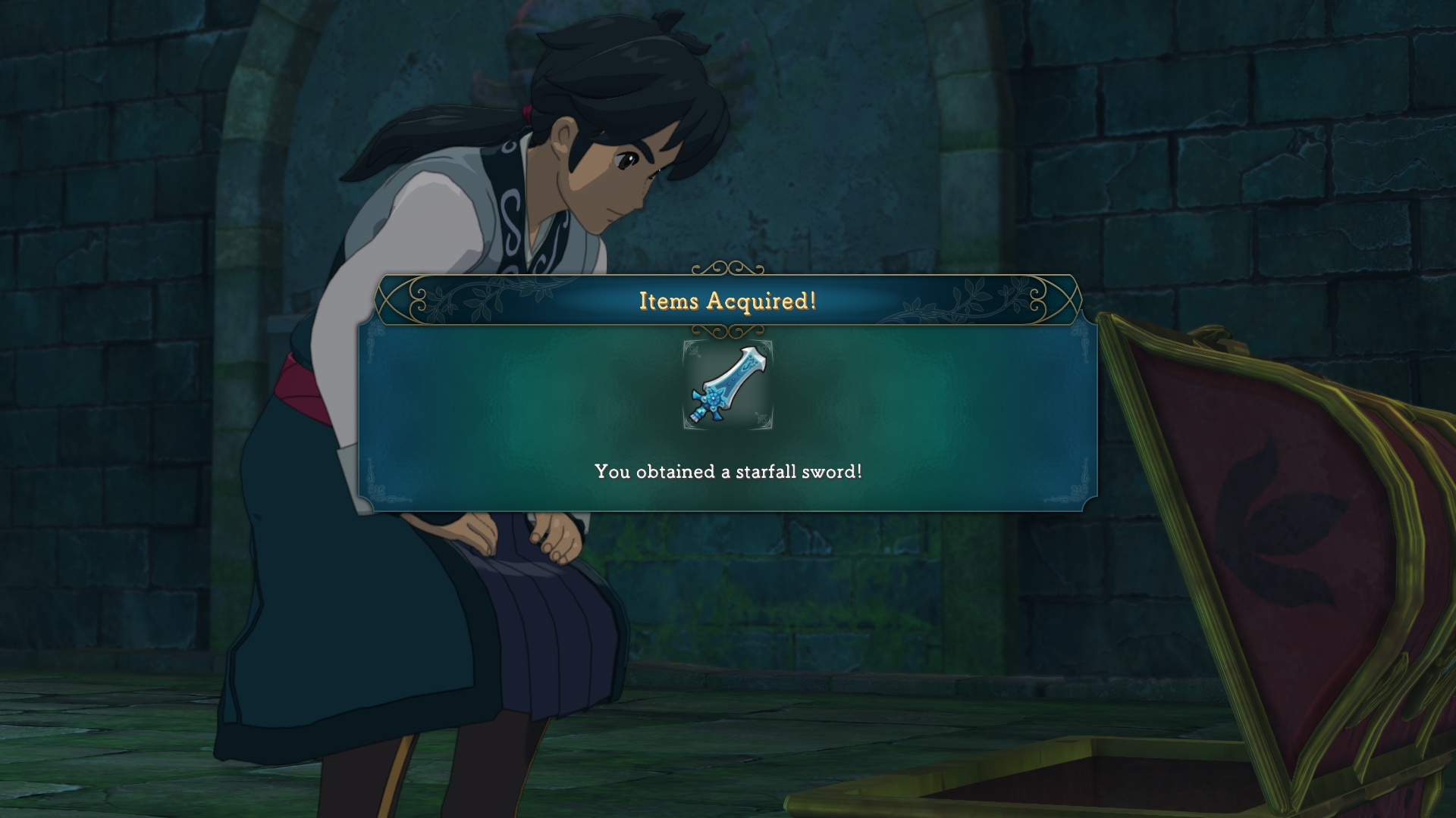 Oh, and if you’re ever wondering why I don’t bother with any of the chests.. you see the notification in this pic where we got a starfall sword? That sword is maybe seven less offense than the one Roland found in Evan’s room during the last story segment.