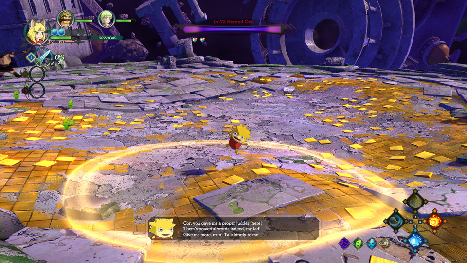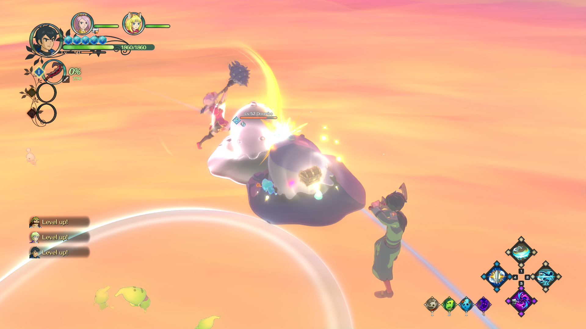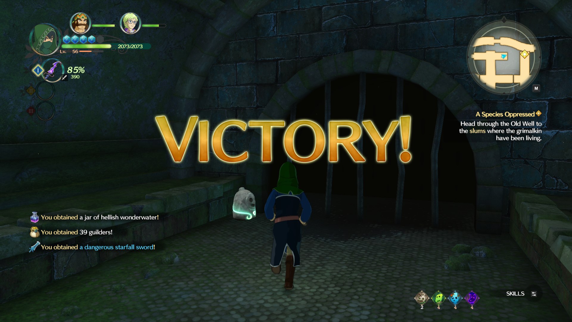 Oh right, I get oneshotted. Thankfully, we upgraded the General Store (to maximum, actually) and have Soreaway Sweets, which restore HP to everyone. I didn’t game over here, either. I mean, how much worse could it..