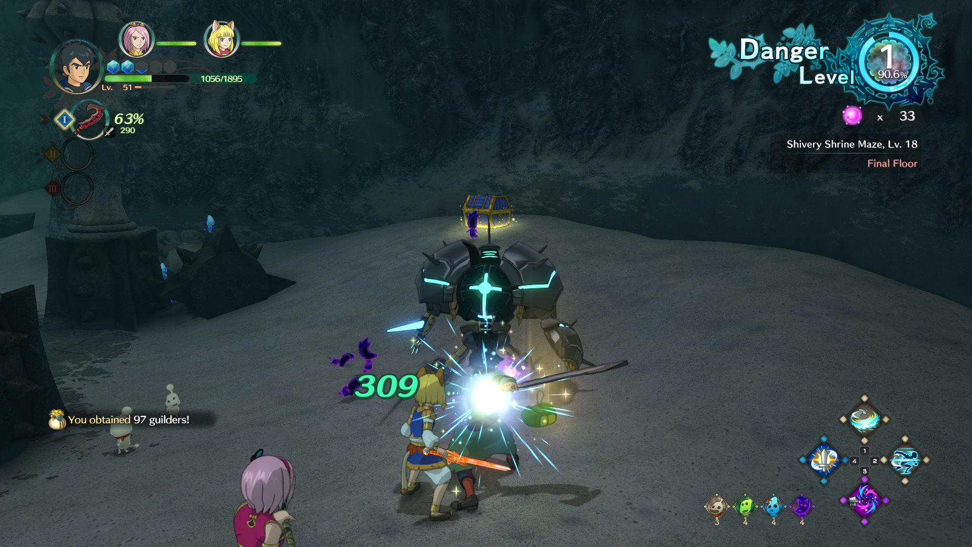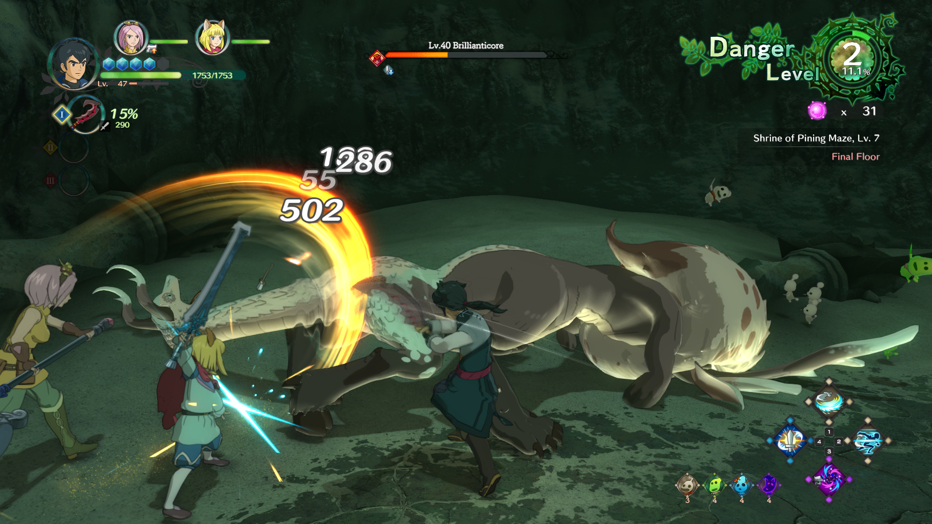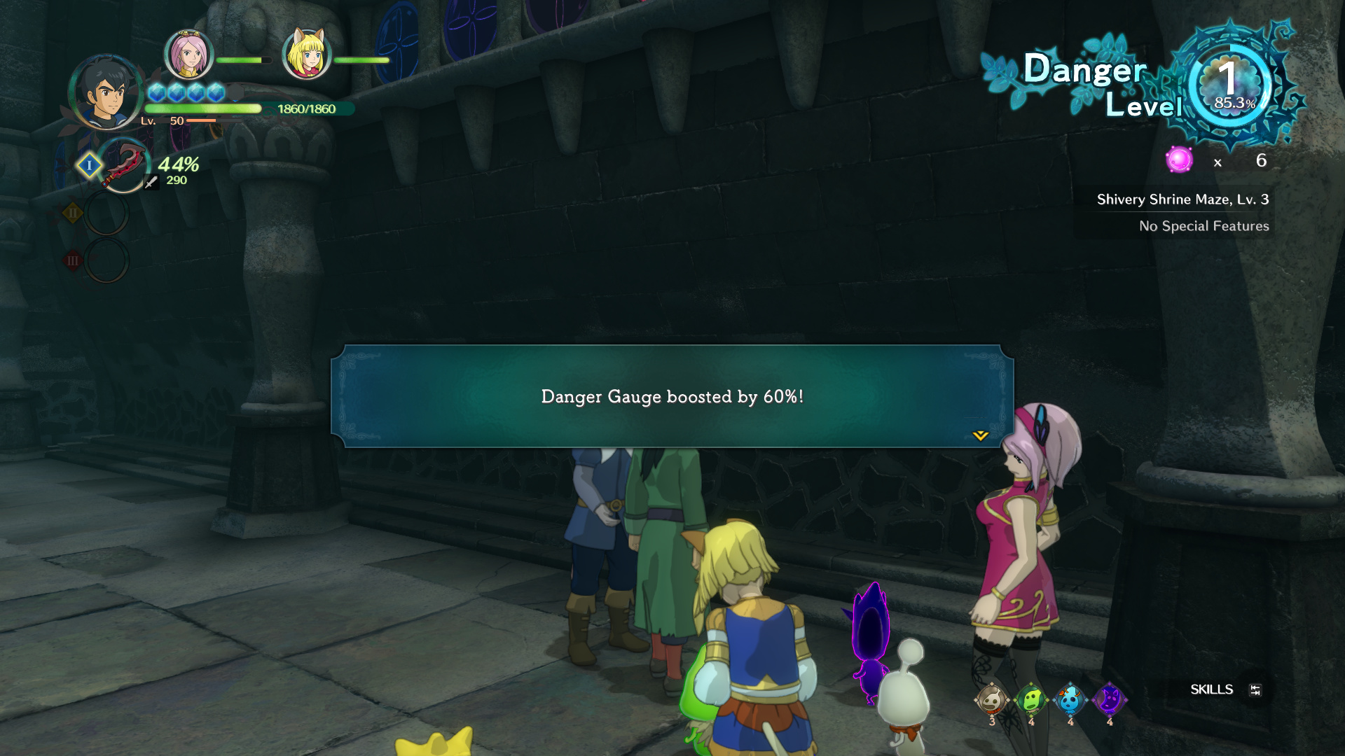 On the 6th floor, I purposely let the danger gauge go to level 2. This raises the average enemy level from about 34 to about 37. It’s not a big deal, really.