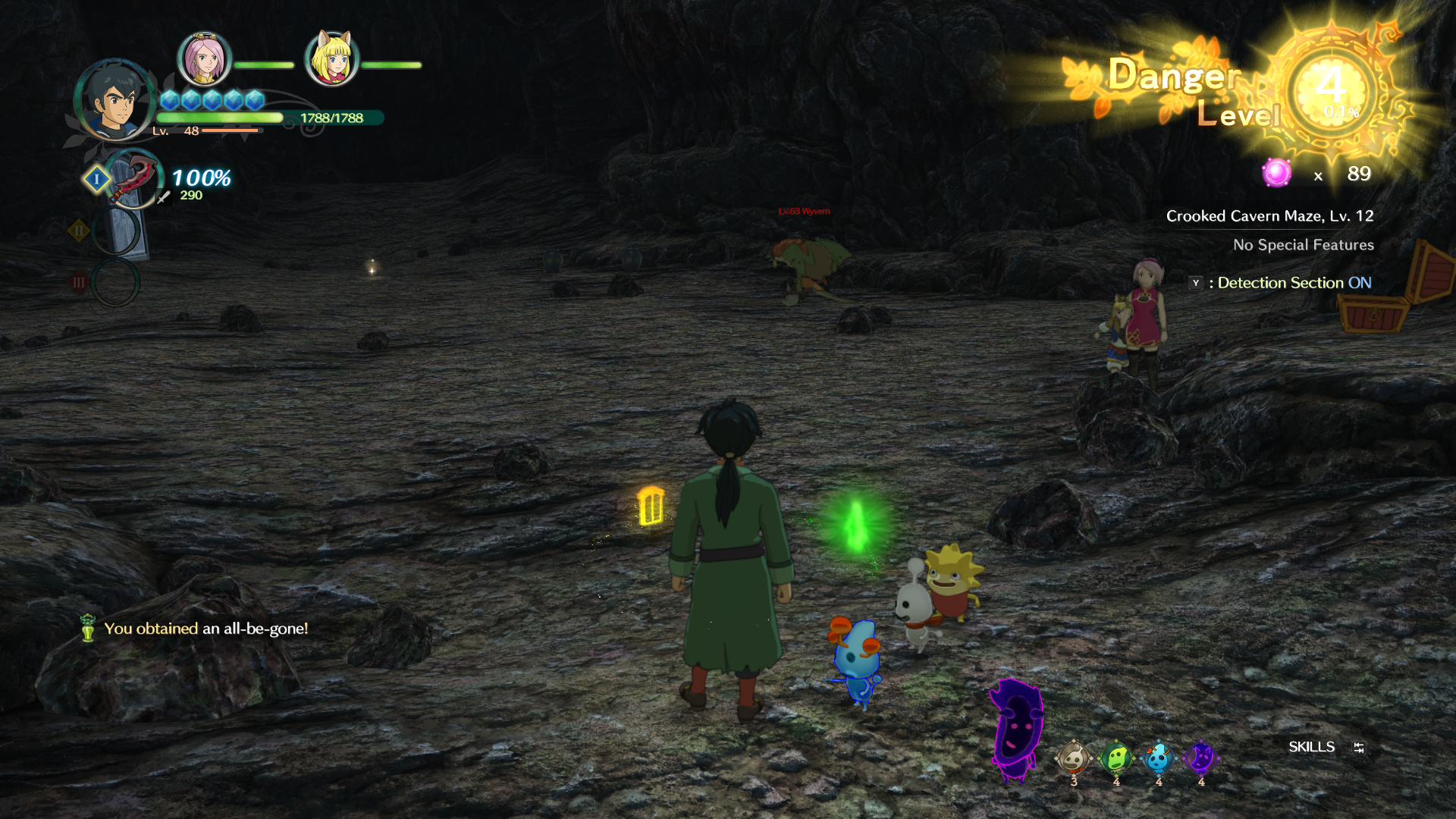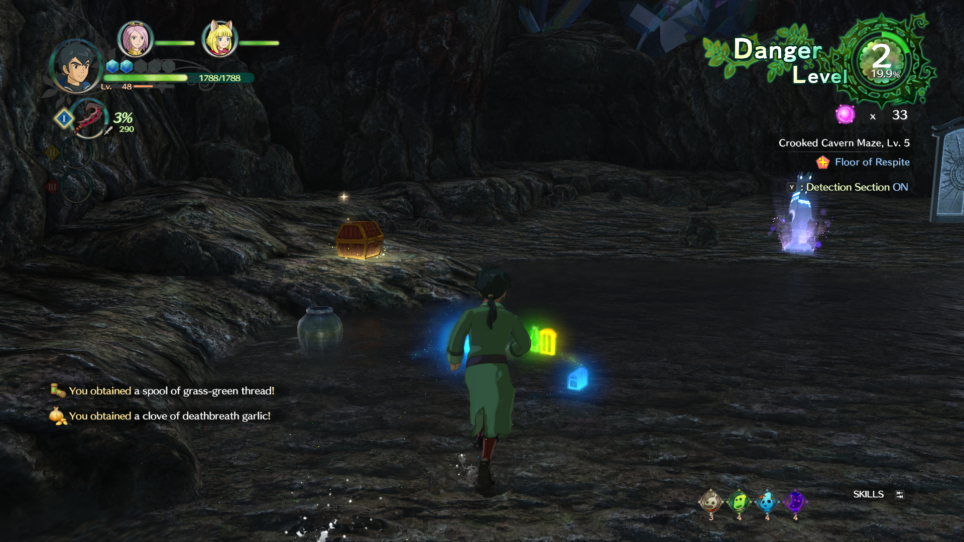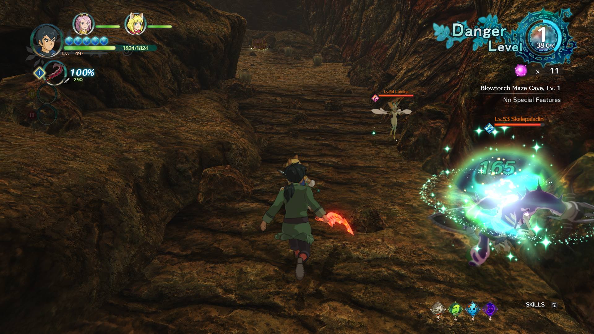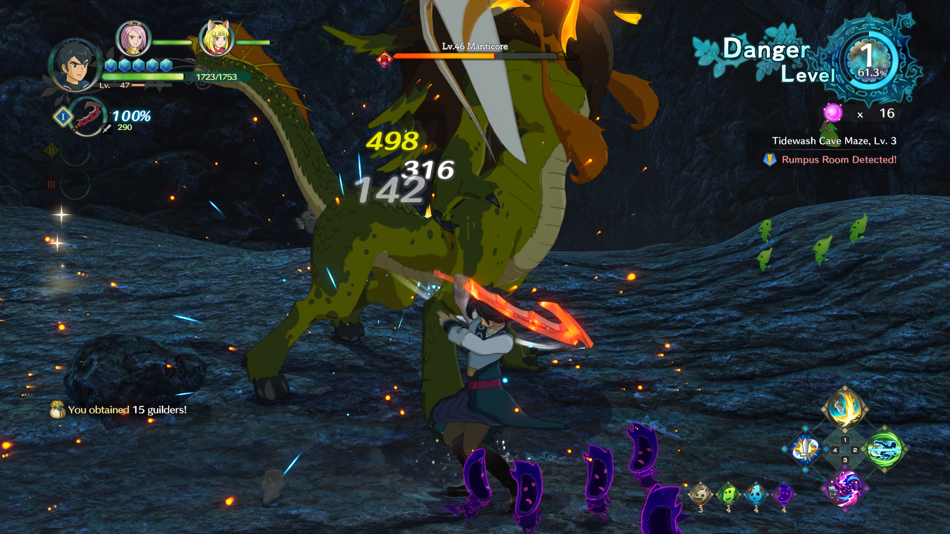 The faster gauge is enough to boost us into danger level 2, which raises the level of the enemies enough that they’re now in aggro range for us. This makes things significantly more annoying. Thankfully, Tidewash Cave only has seven real floors.
