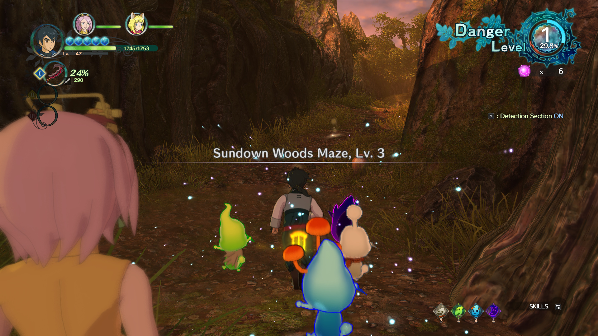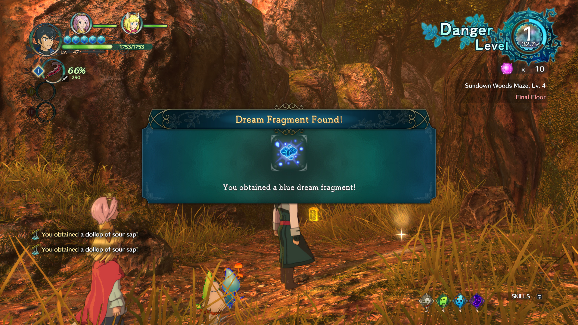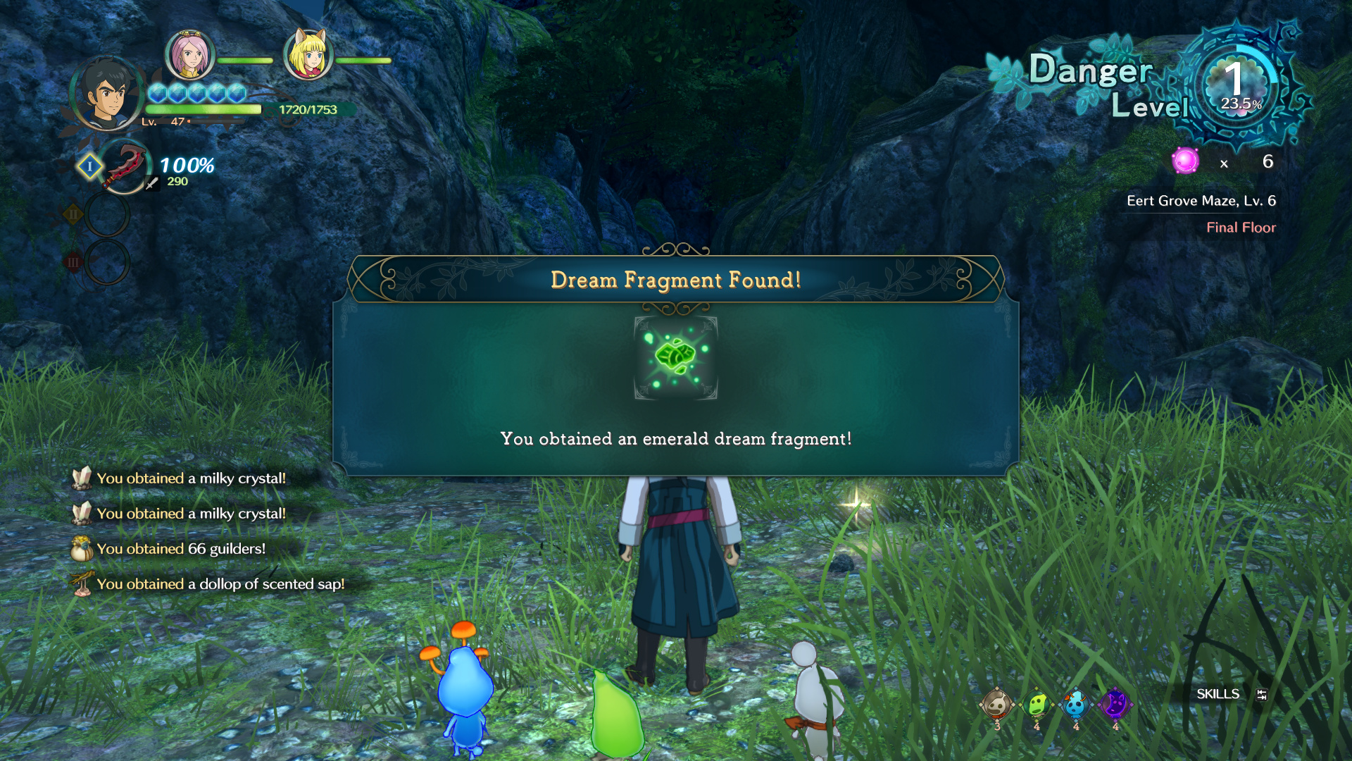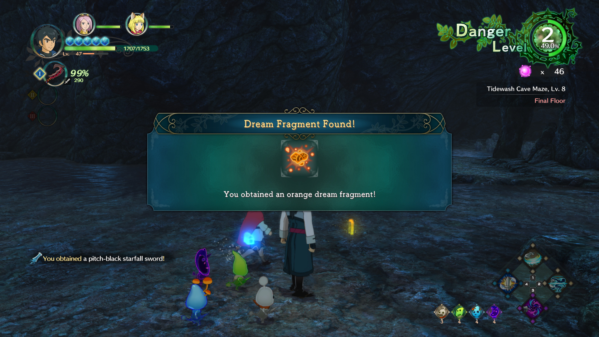 Unlike the other dreamer gates, the Faraway Forest is truly random: it uses all of the existing rooms from the other gate types as well as a few new ones. The enemies are also somewhere between level 65 and level 70 to start… and get harder the deeper you go. I believe the danger gauge also goes higher in the Faraway Forest than it does in the other mazes.