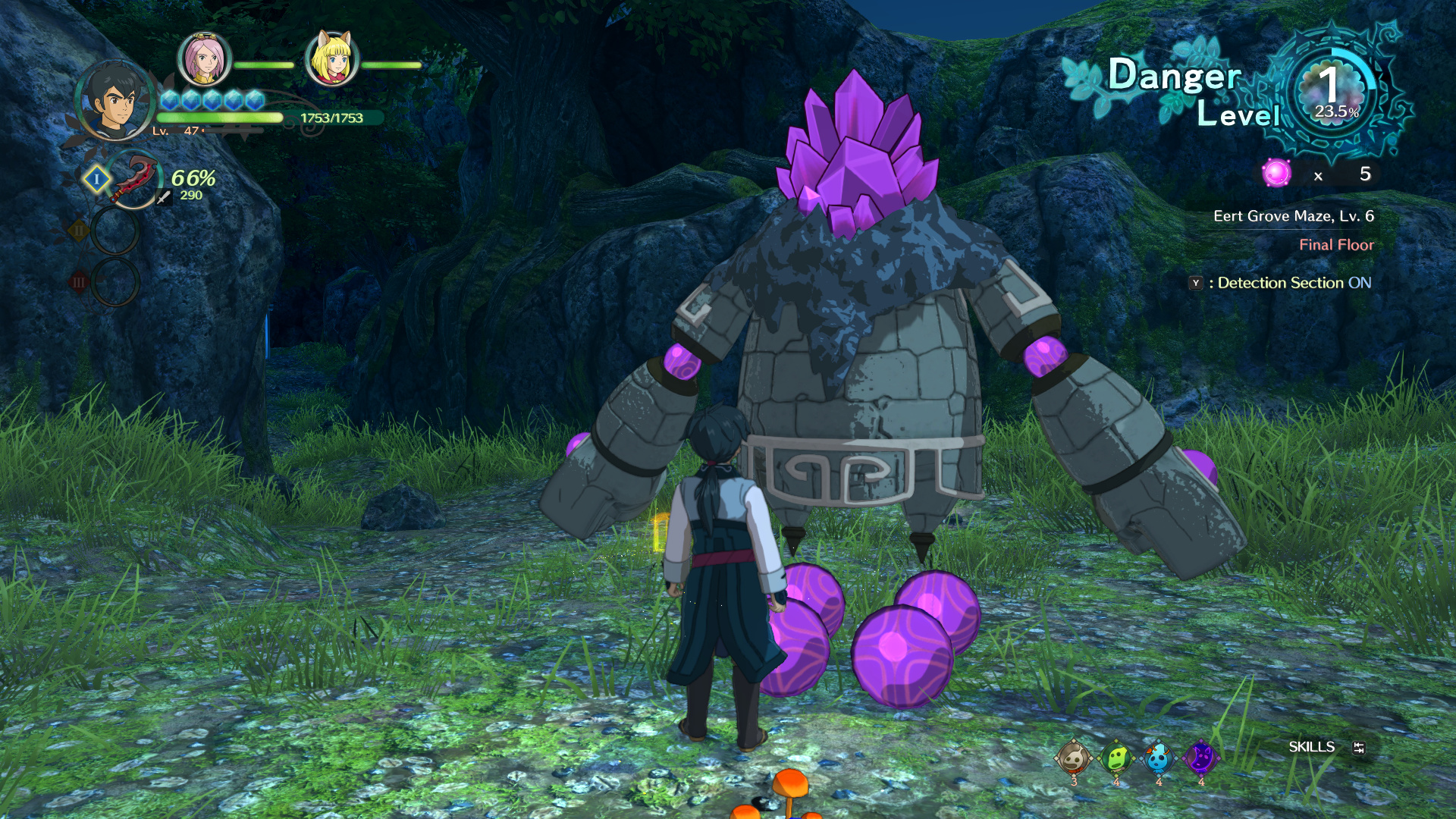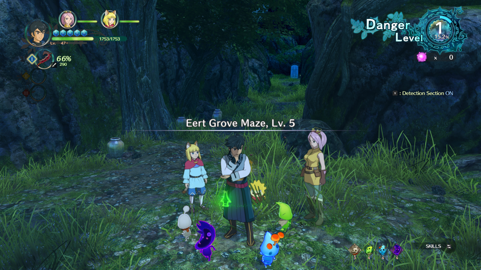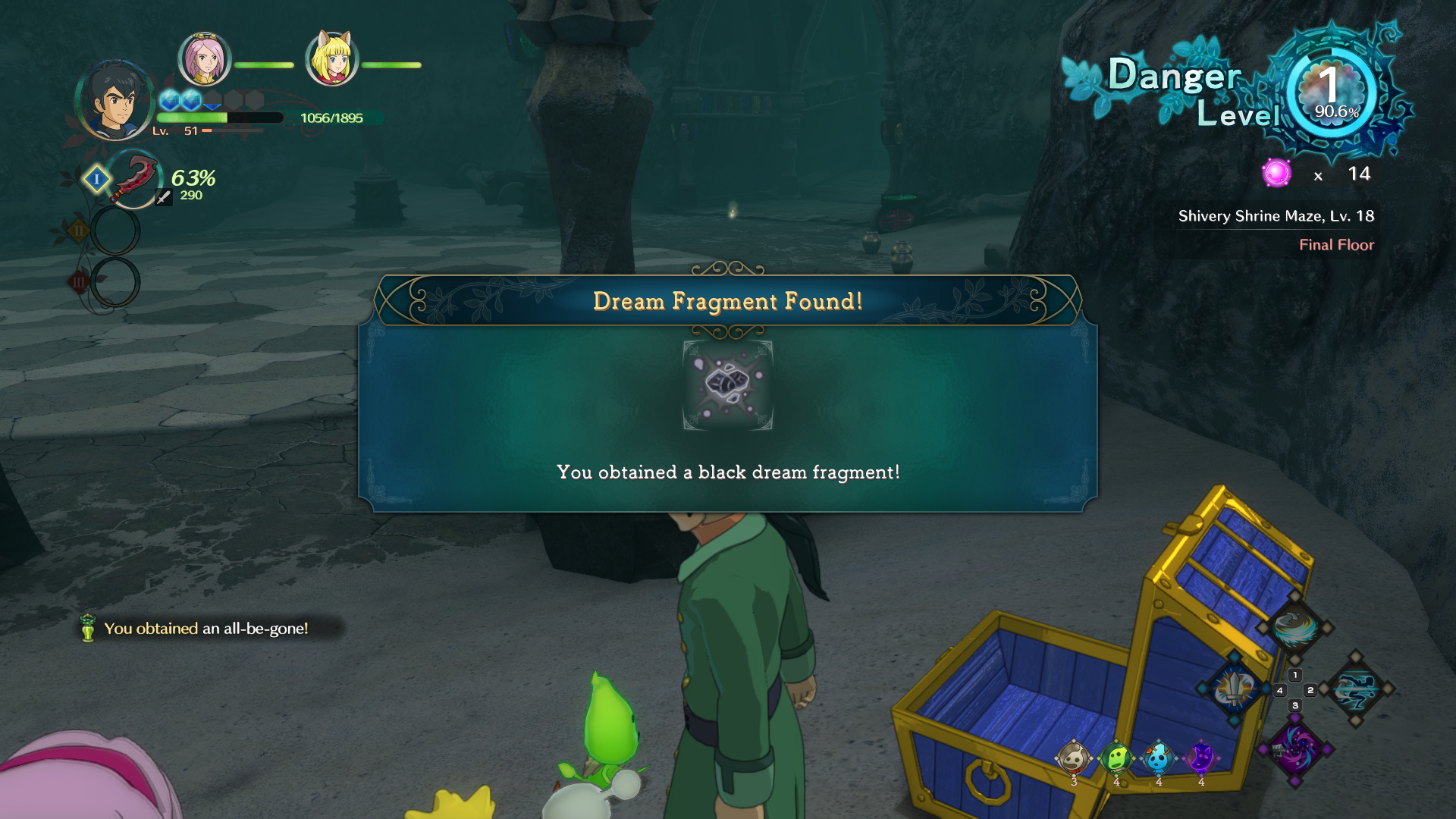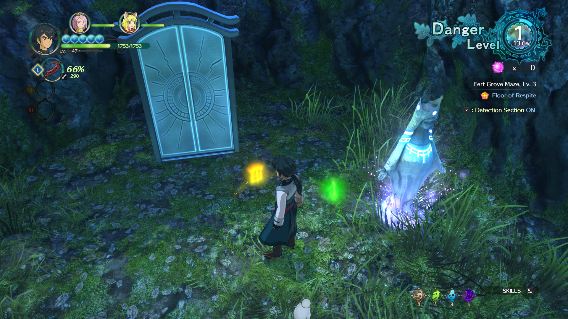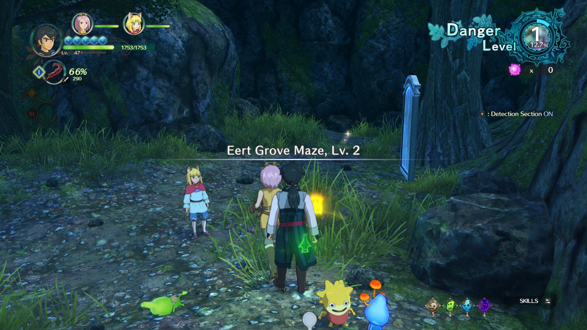 Unlike the other dreamer gates, the Faraway Forest is truly random: it uses all of the existing rooms from the other gate types as well as a few new ones. The enemies are also somewhere between level 65 and level 70 to start… and get harder the deeper you go. I believe the danger gauge also goes higher in the Faraway Forest than it does in the other mazes.