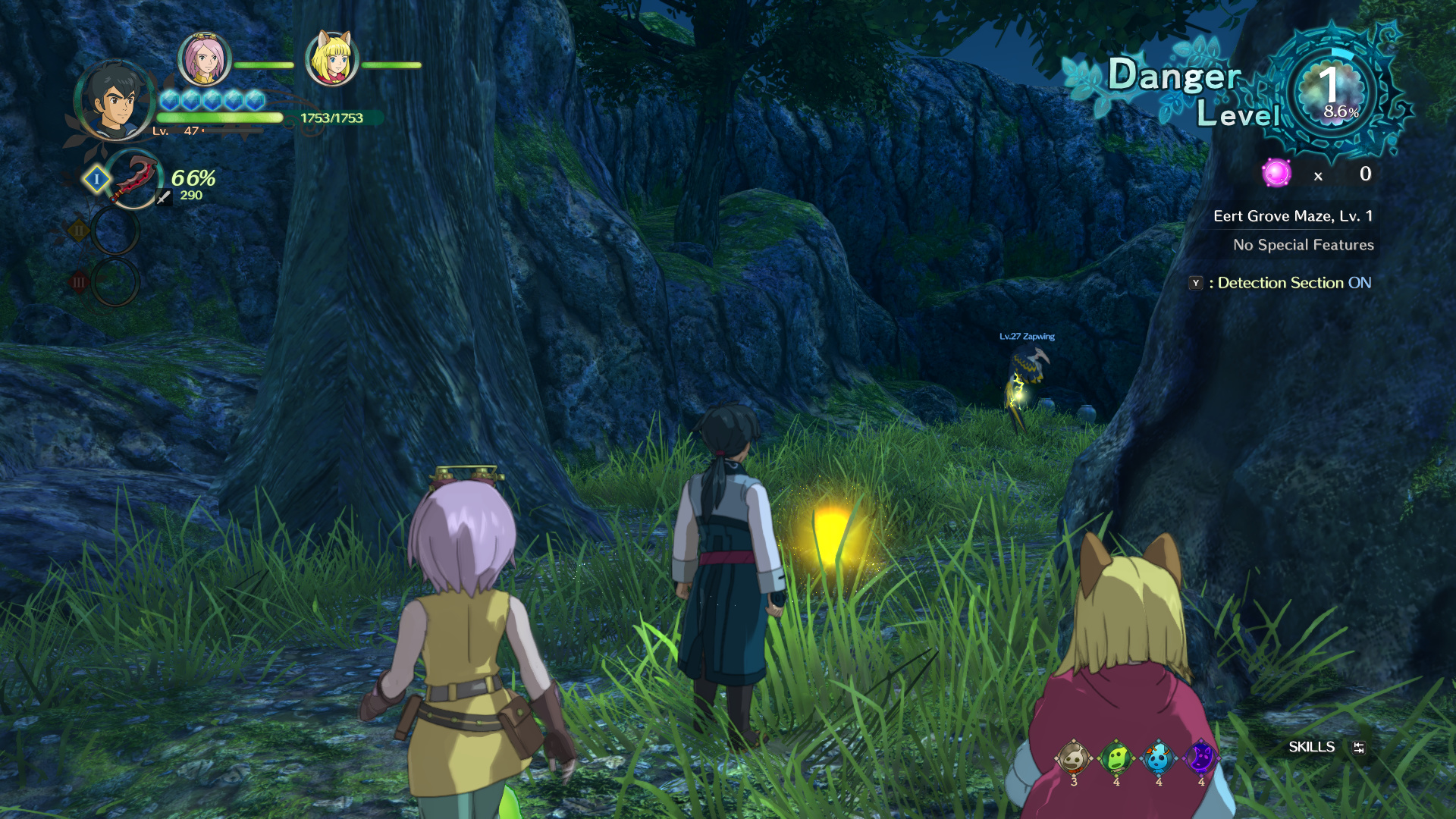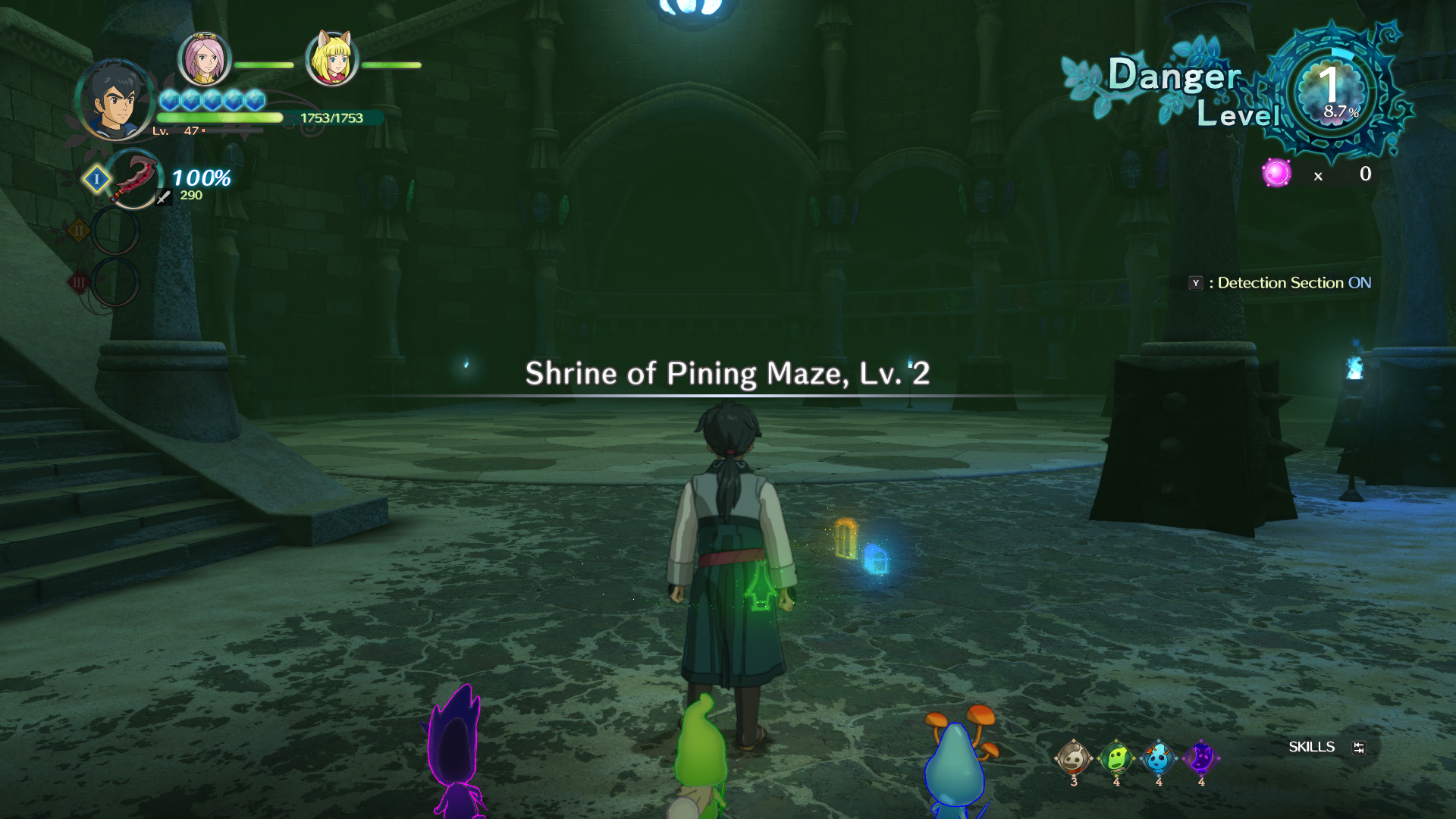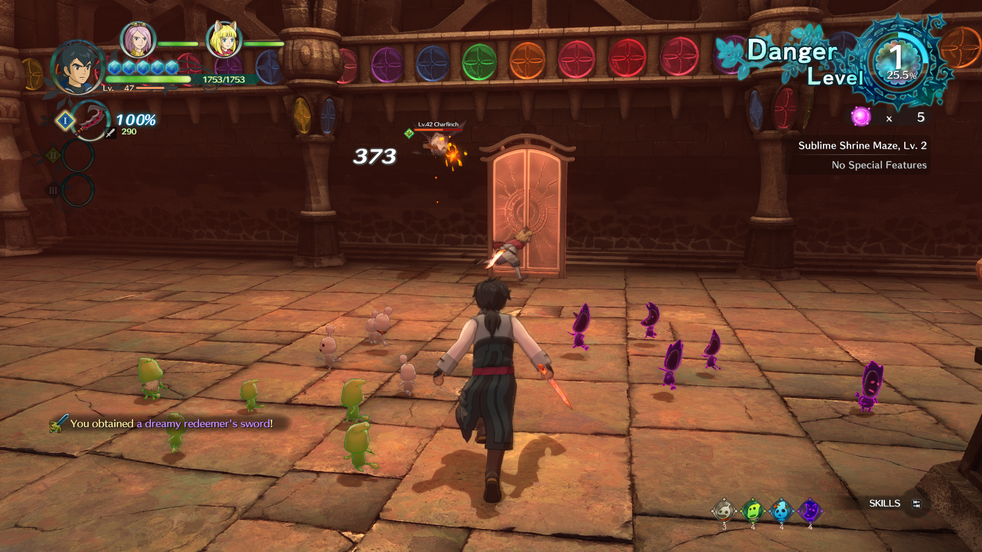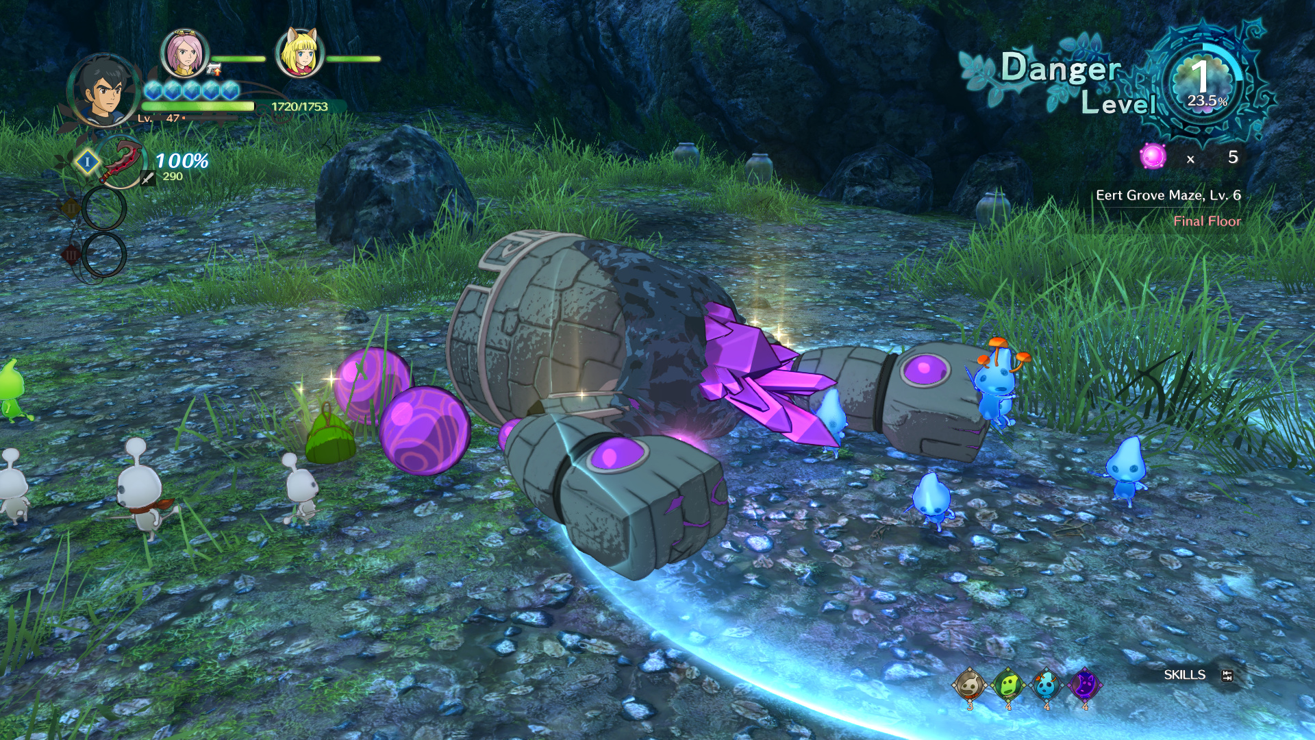 Unlike the other dreamer gates, the Faraway Forest is truly random: it uses all of the existing rooms from the other gate types as well as a few new ones. The enemies are also somewhere between level 65 and level 70 to start… and get harder the deeper you go. I believe the danger gauge also goes higher in the Faraway Forest than it does in the other mazes.