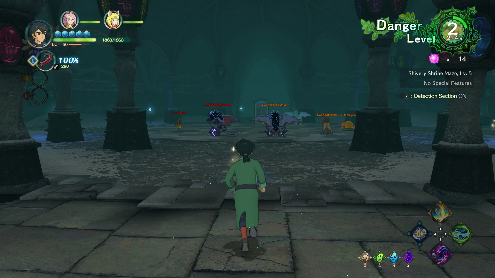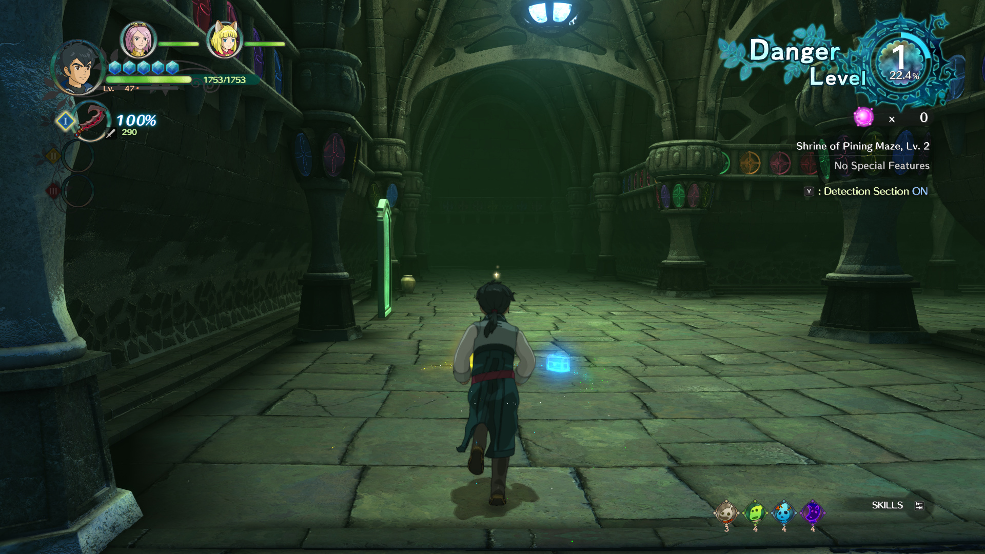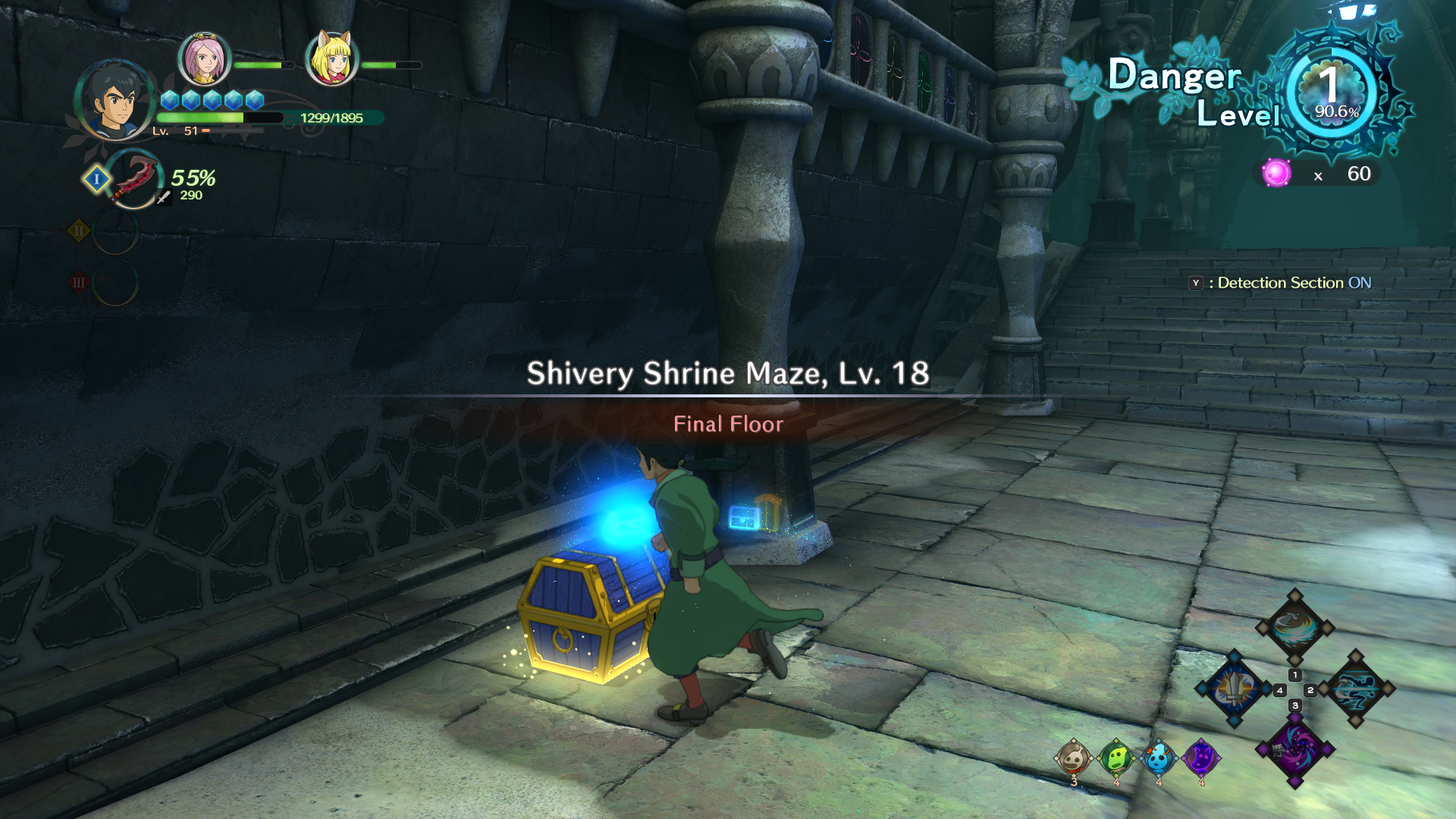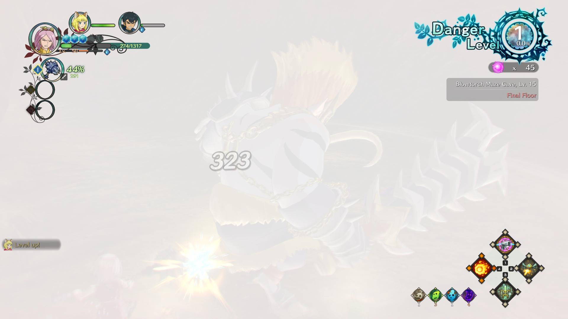 There are now enemies scattered throughout the maze rather than grouped up like they were in the previous ones. In fact, this got a bit annoying once I hit danger level 2 later on in the dungeon.