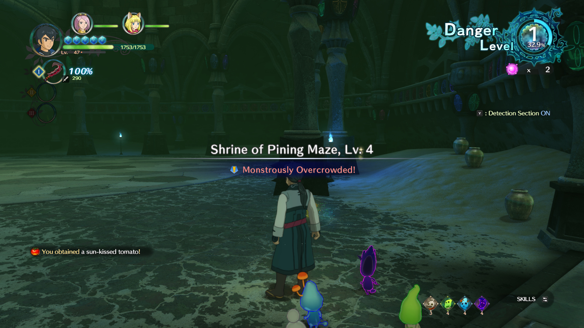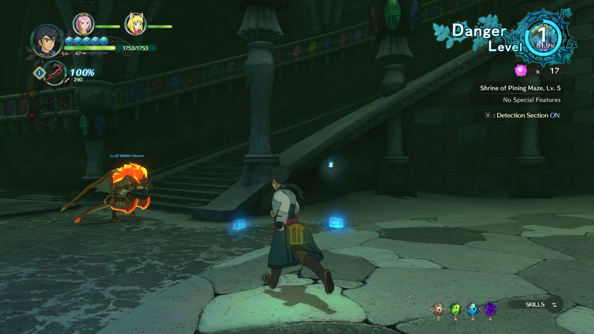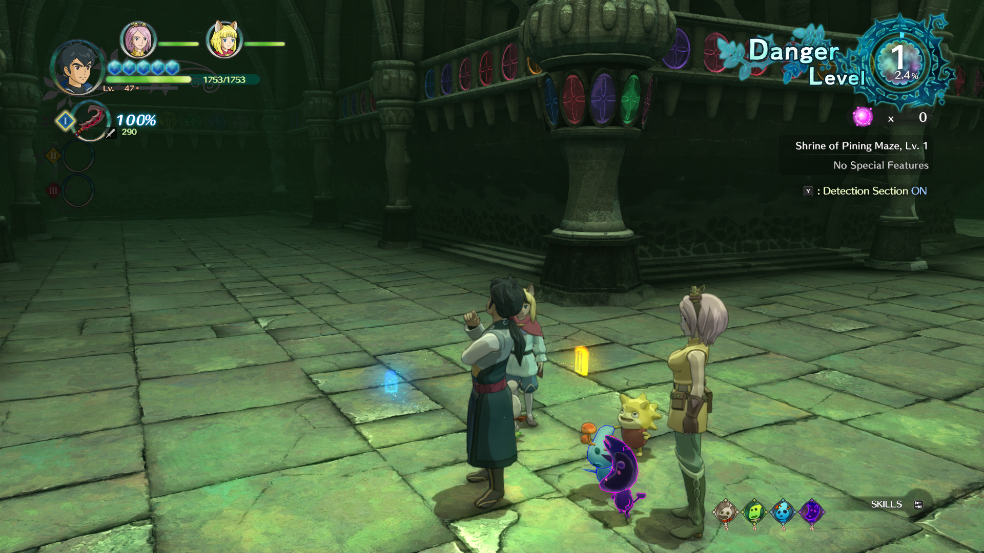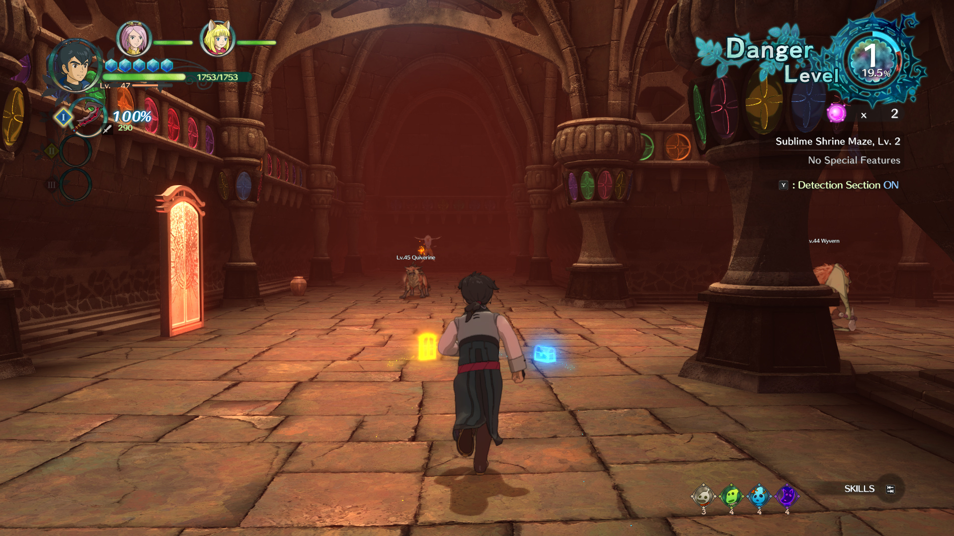 There are now enemies scattered throughout the maze rather than grouped up like they were in the previous ones. In fact, this got a bit annoying once I hit danger level 2 later on in the dungeon.