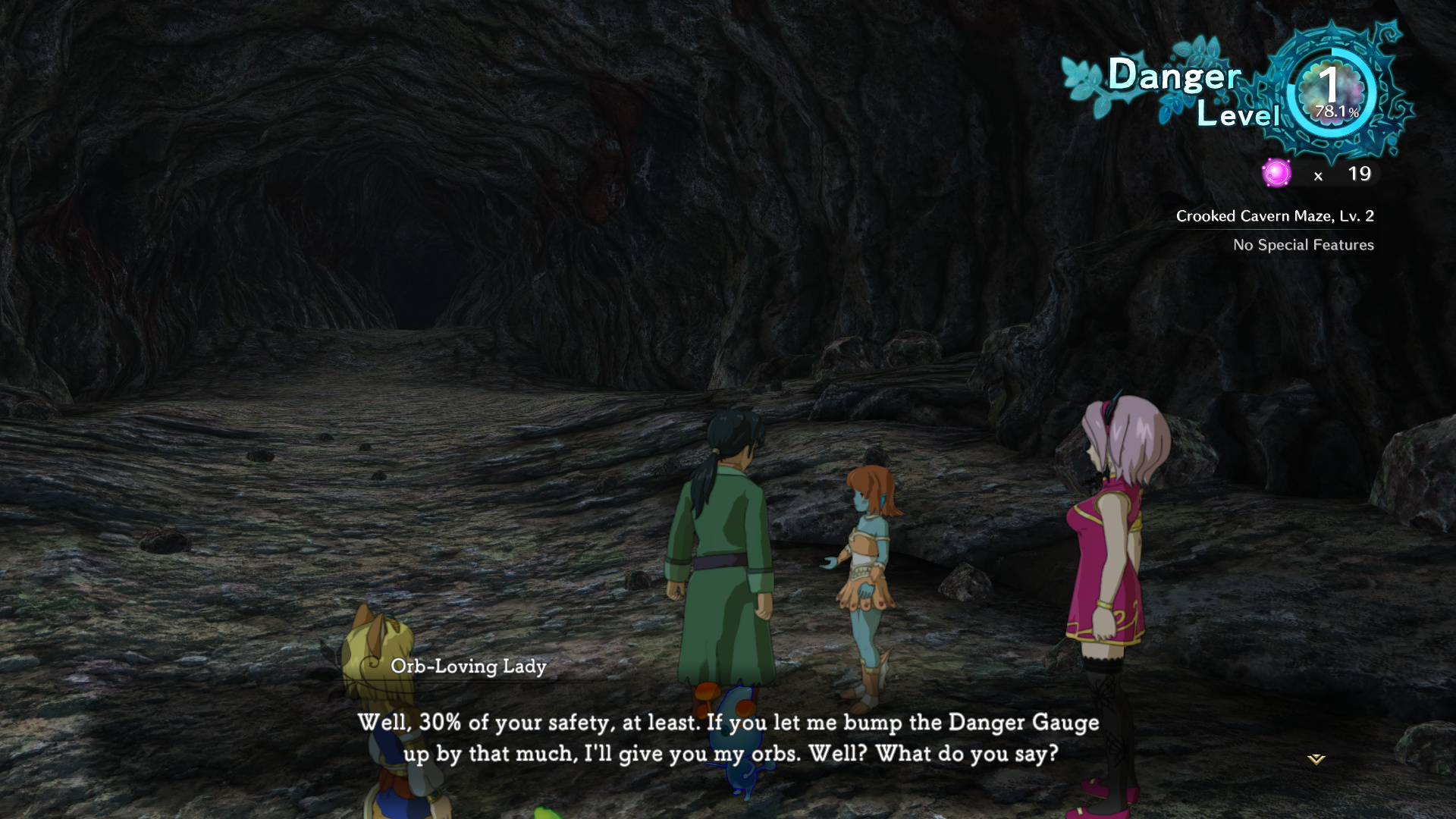 And an NPC who trades orbs in exchange for increasing the danger level. I felt like living on the edge and just accepted it blindly, bringing us to DL2 by floor 2.
