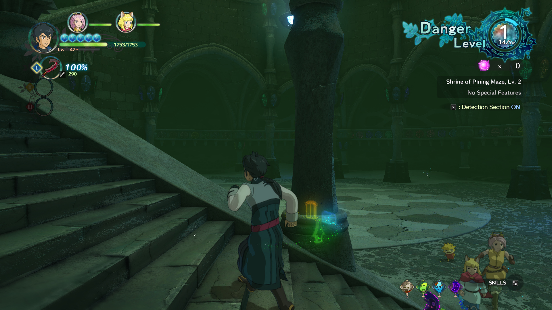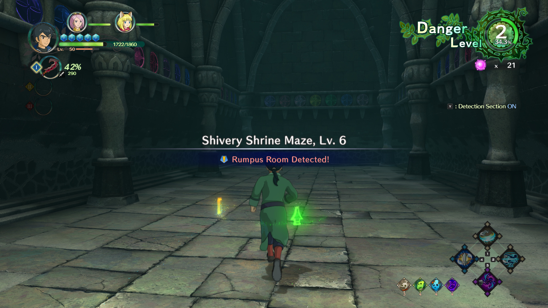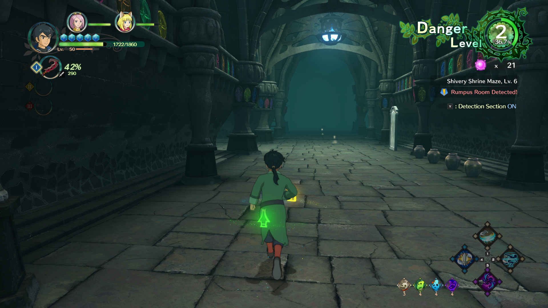 On Floor 2, the door was literally right in front of the starting position. Here, we can see the idol detector on Roland’s back. The idol detector actually works as advertised: it pops up when you’re within a certain range of an idol and gets brighter as you get closer. In this case though, we got through the maze so quickly that there was no point.