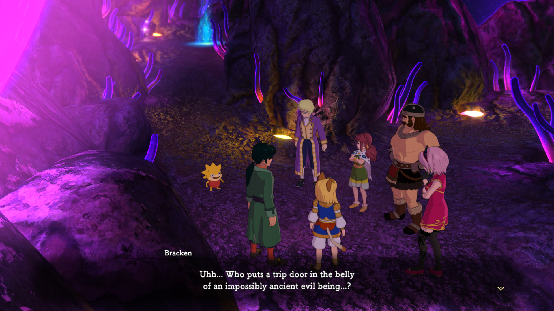 Our next stop is Blowtorch Cave, which I grabbed the warp point for when getting Evan’s alternate outfit. There’s no enemies between us and the gate, but there is one group out of the way. Let’s just check and..