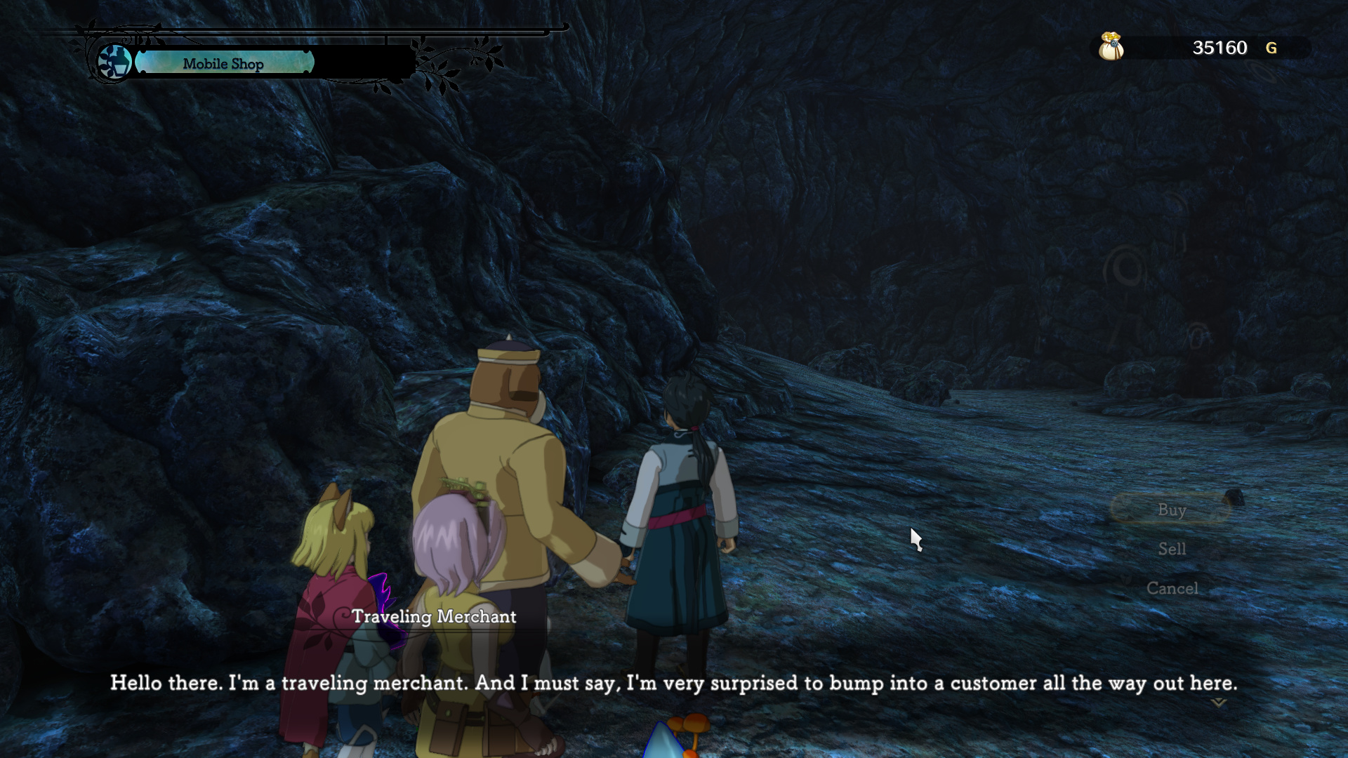 We also run into a random merchant. This guy just sells materials that we can already get at the general store, but without the discount we get there.