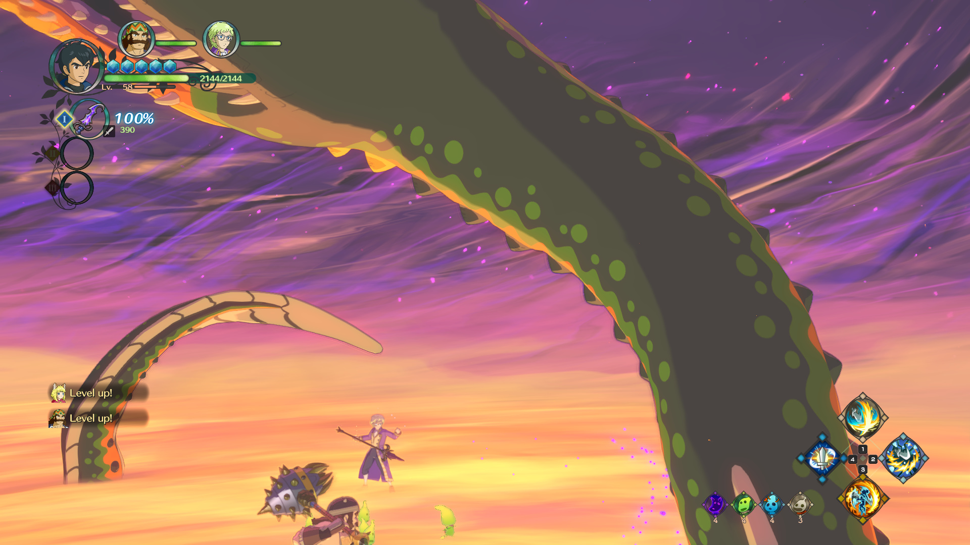 Not much interesting happens until Floor 3, when we get an effect that boost all EXP earned. I got Bracken to level 50 here, which I believe is higher than I was at this point in my first playthrough. The fact that I built the second-tier training ground in Evermore and got the extra EXP boost upgrade definitely helps.