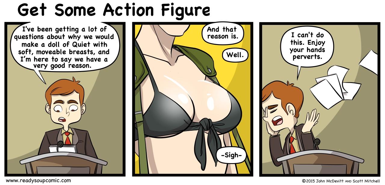 I recall people petitioning, or at least mailing in letters complaining. He could also be talking about the perv fans as well, you’ll feel bad about goin’ at it because of her secret reason. There’s any number of deeds I can think of one doing with regards to Quiet’s design, either positively or negatively.