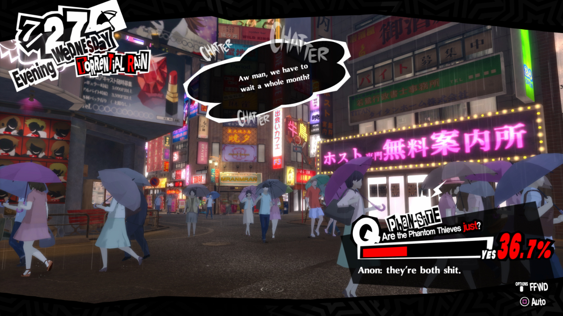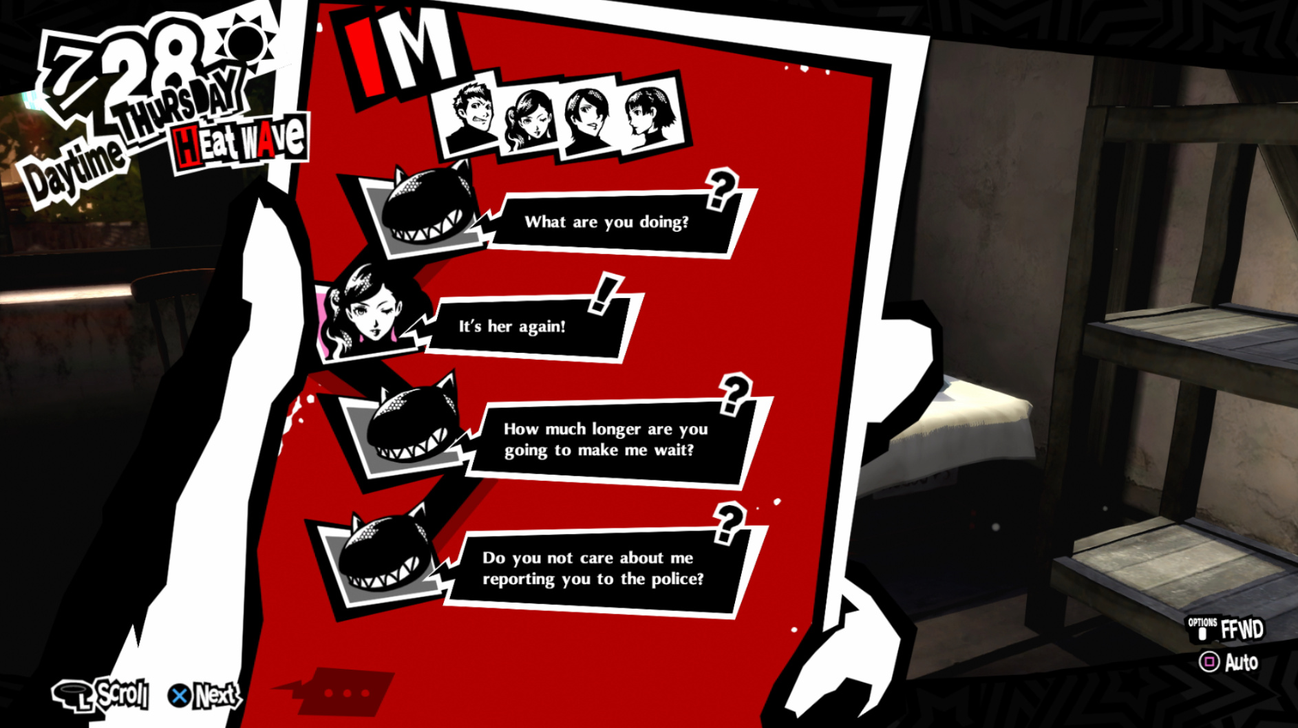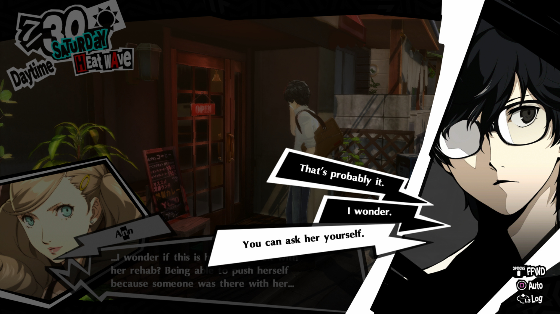 : Did I say I didn’t hate this cutscene? Scratch that, it should’ve ended right when Ryuji left, and now Ann’s telling us shit we already know.