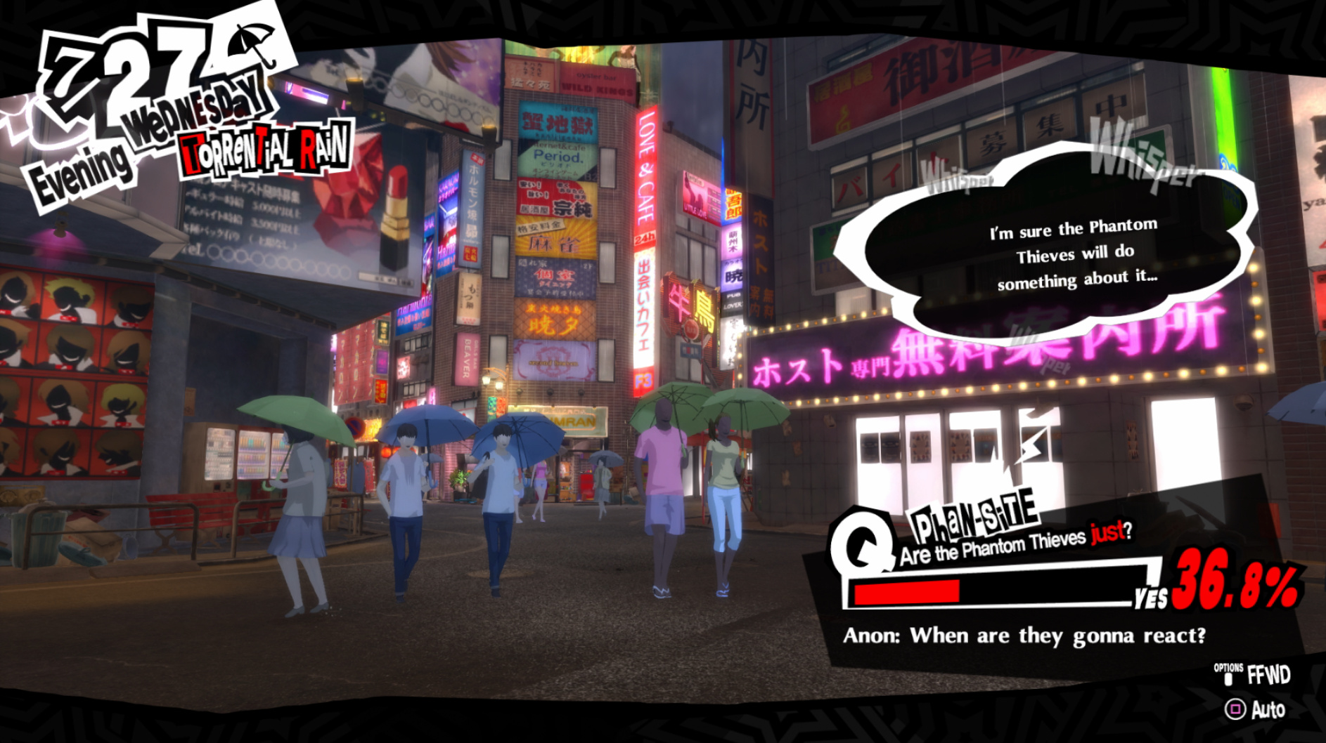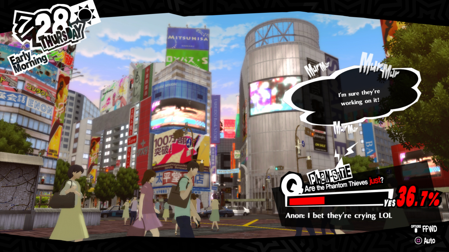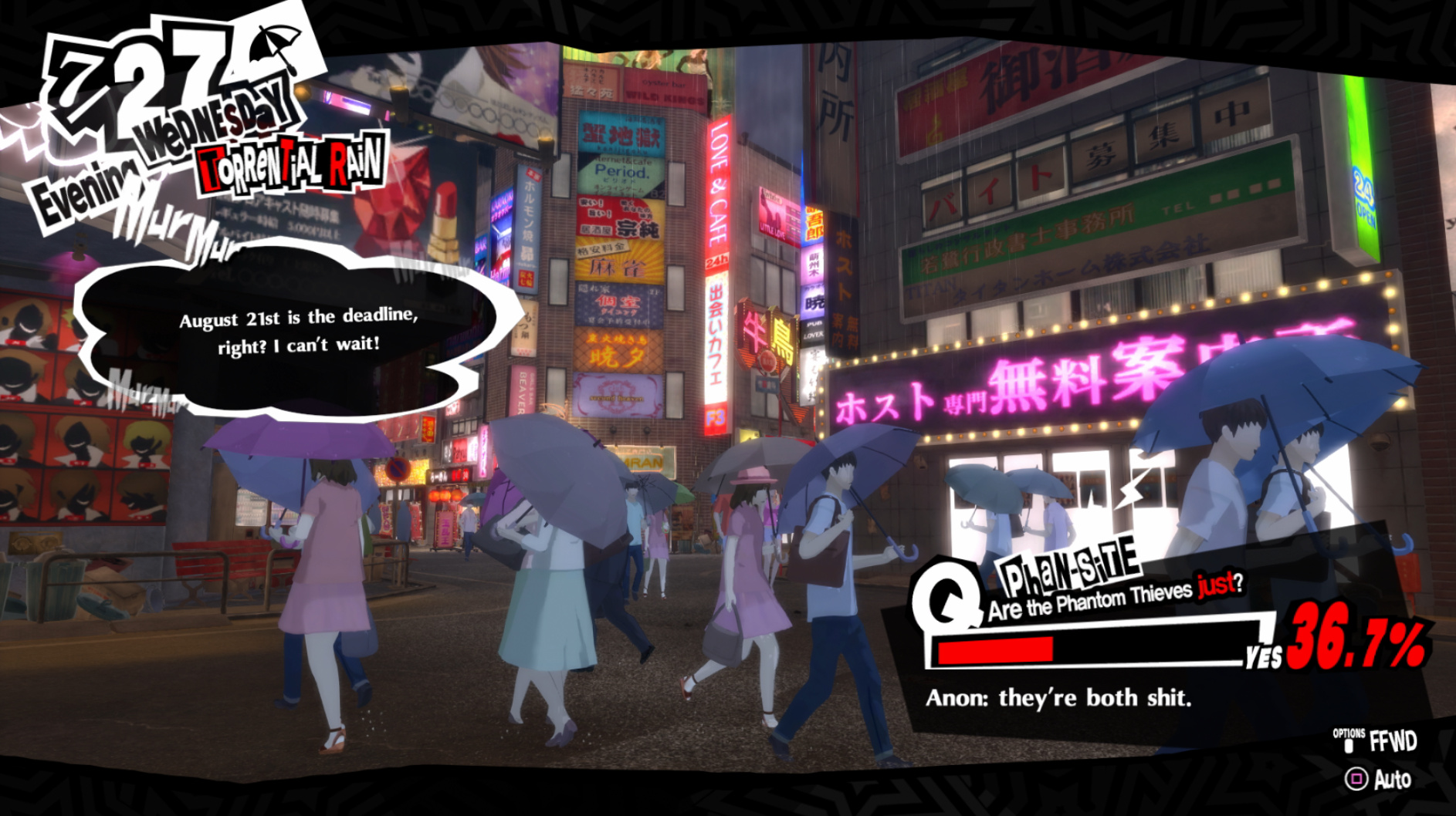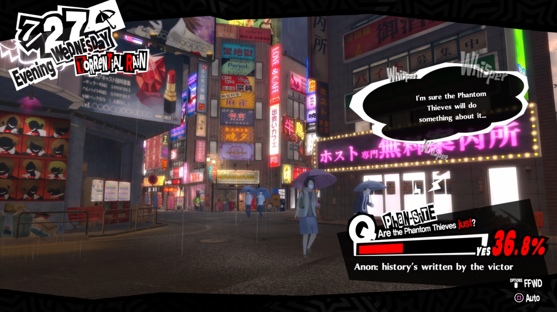 : Did I say I didn’t hate this cutscene? Scratch that, it should’ve ended right when Ryuji left, and now Ann’s telling us shit we already know.