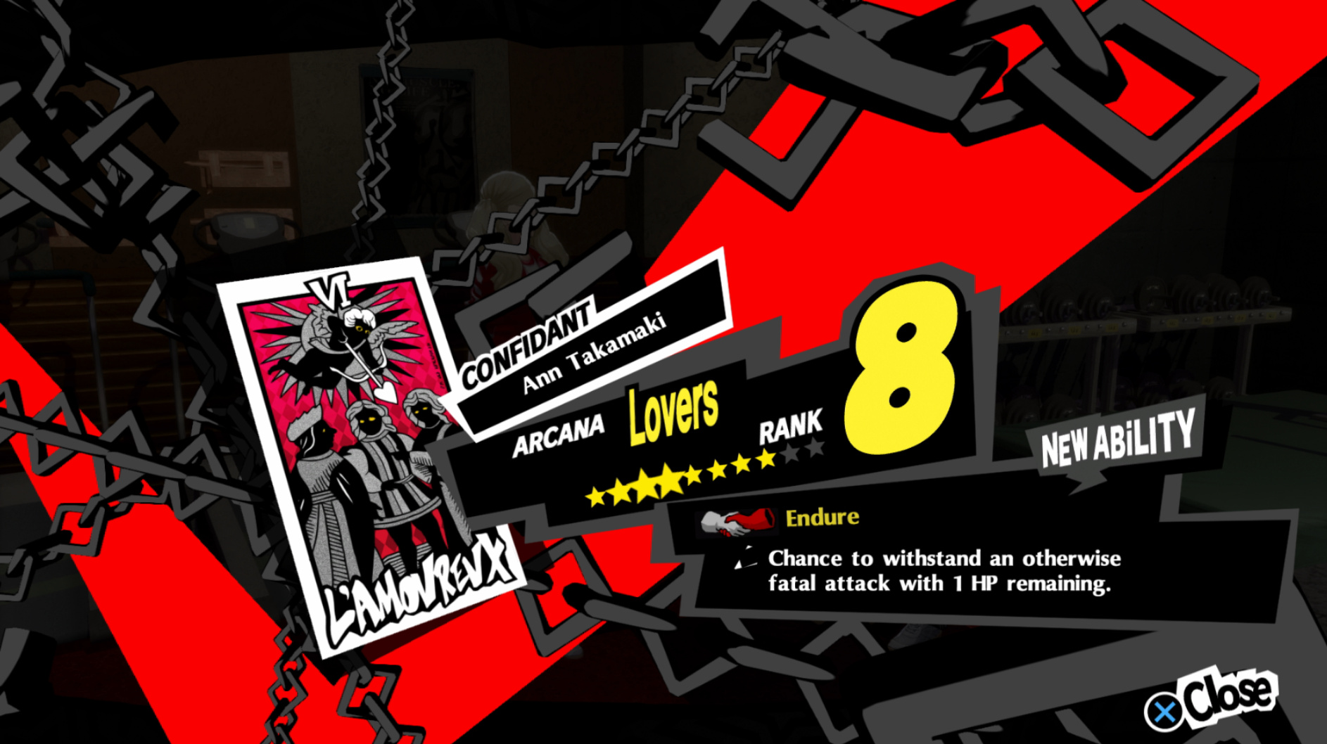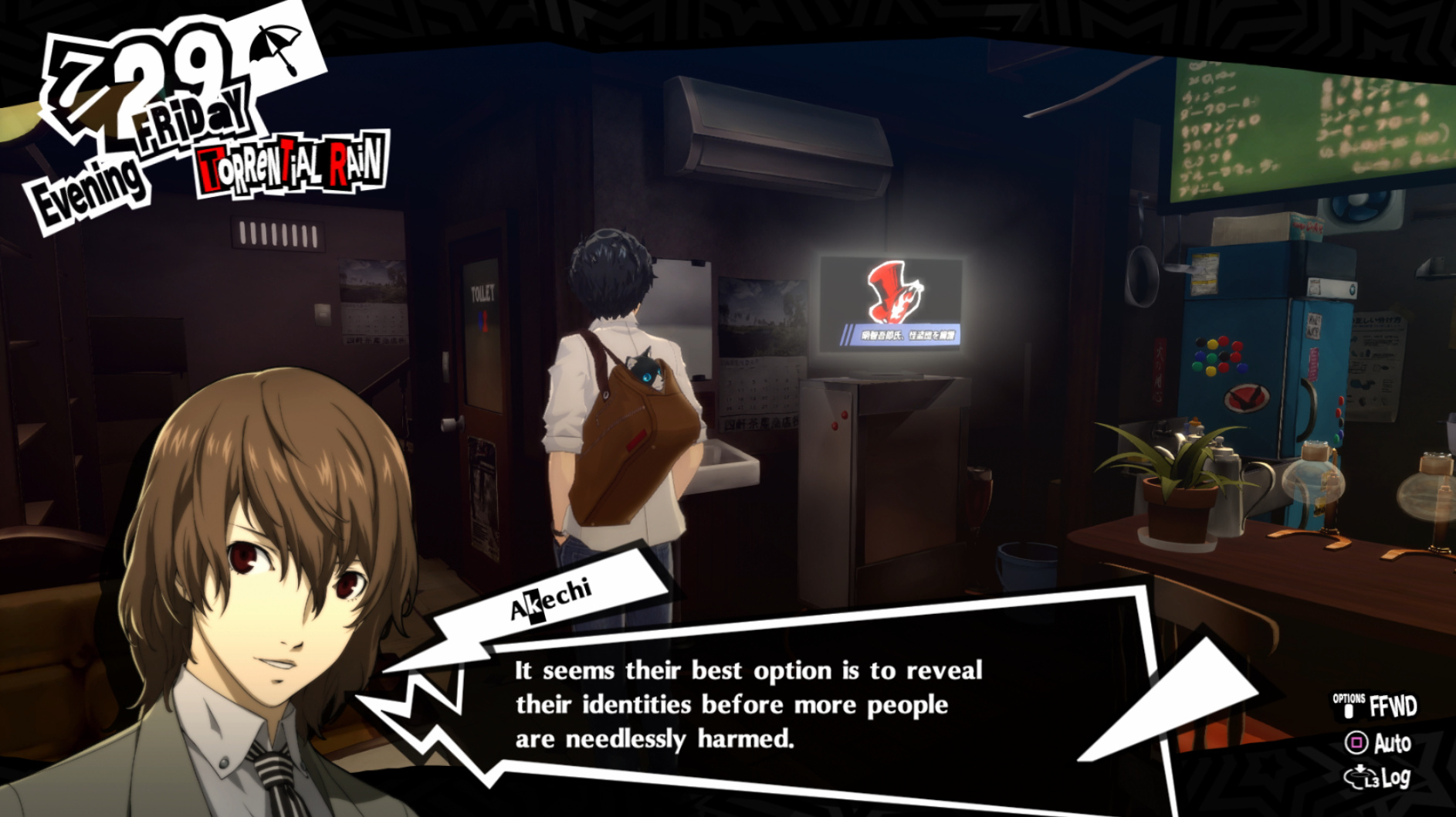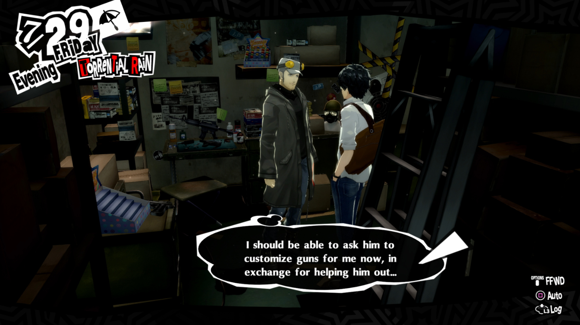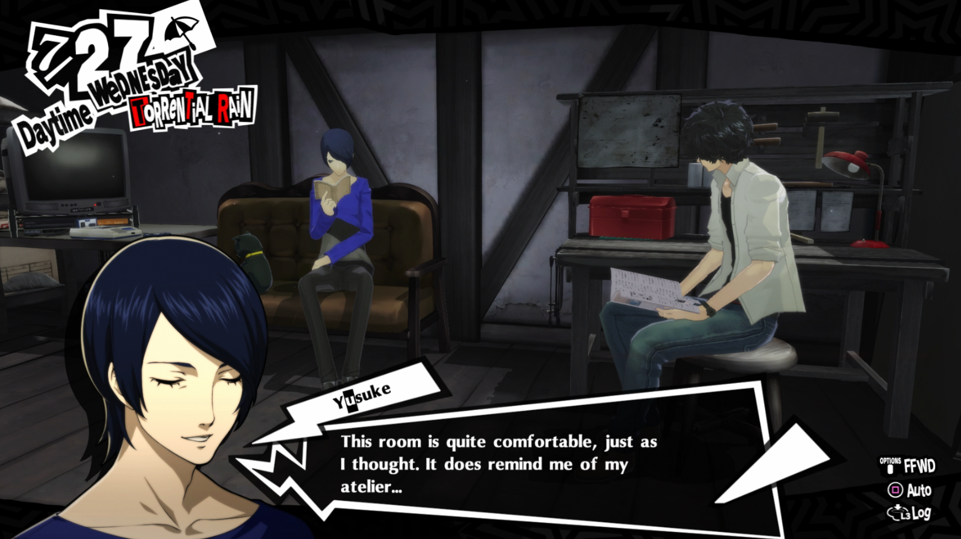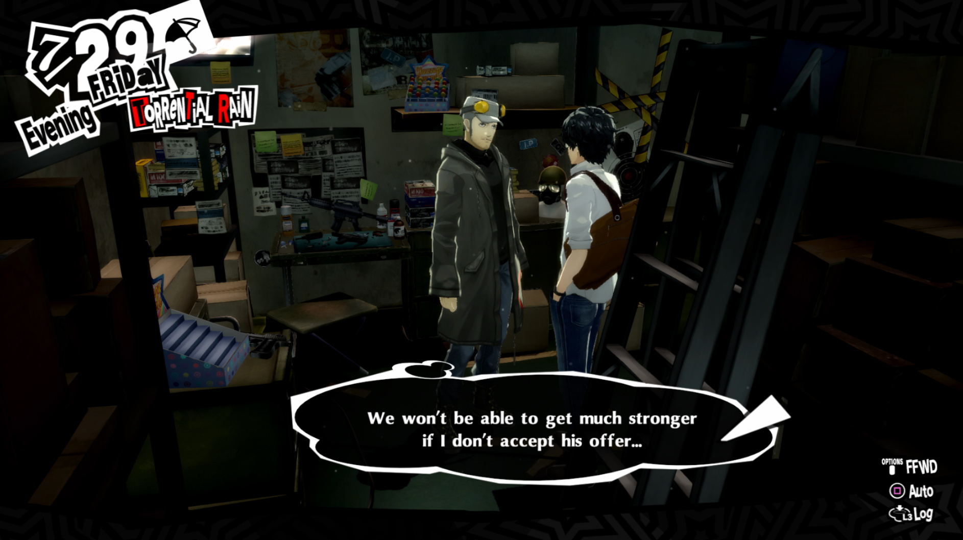 : I love how unrealistic this scene is. This is 2016, Ryuji would be reading that either on a laptop or on his phone. Anyway, we get five points to Guts and three to Ryuji’s confidant.