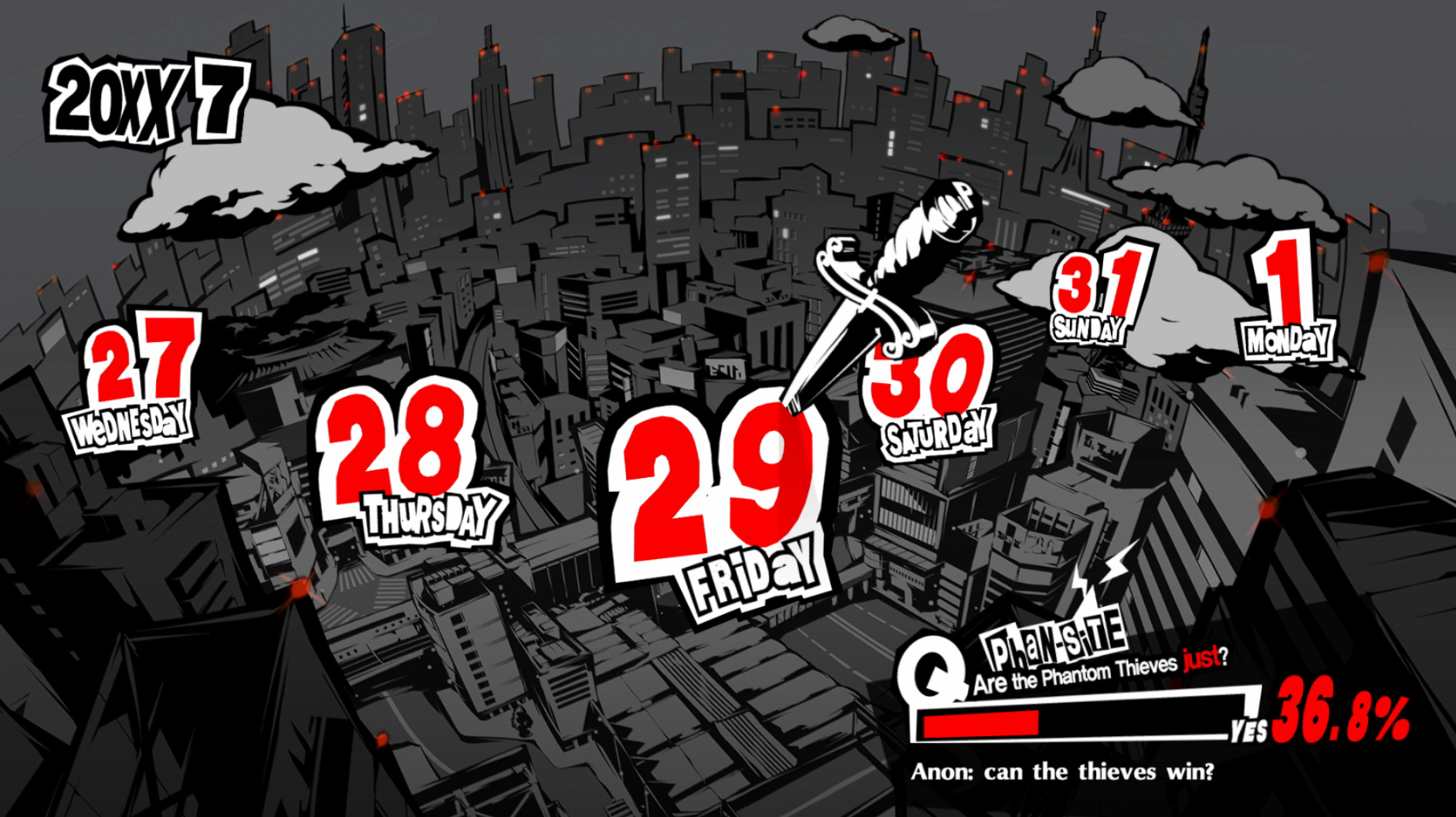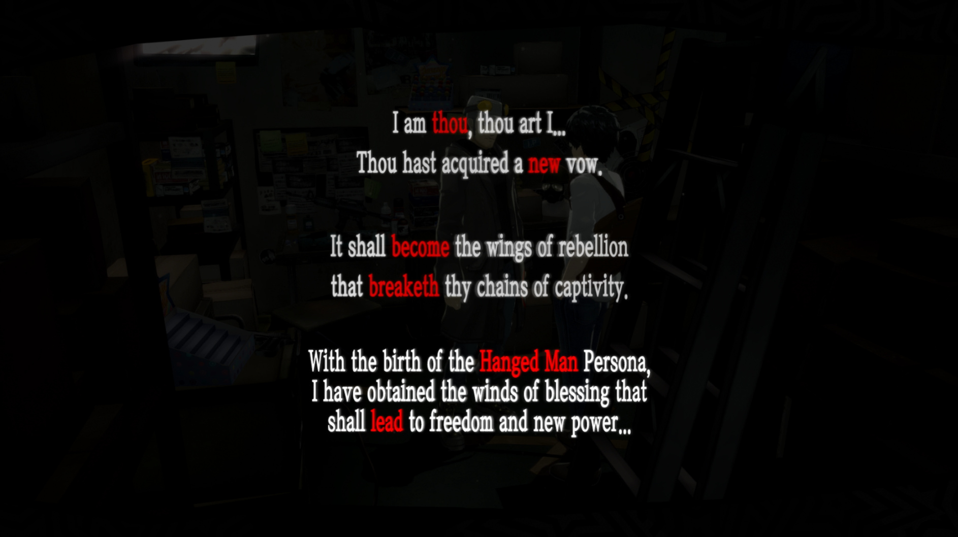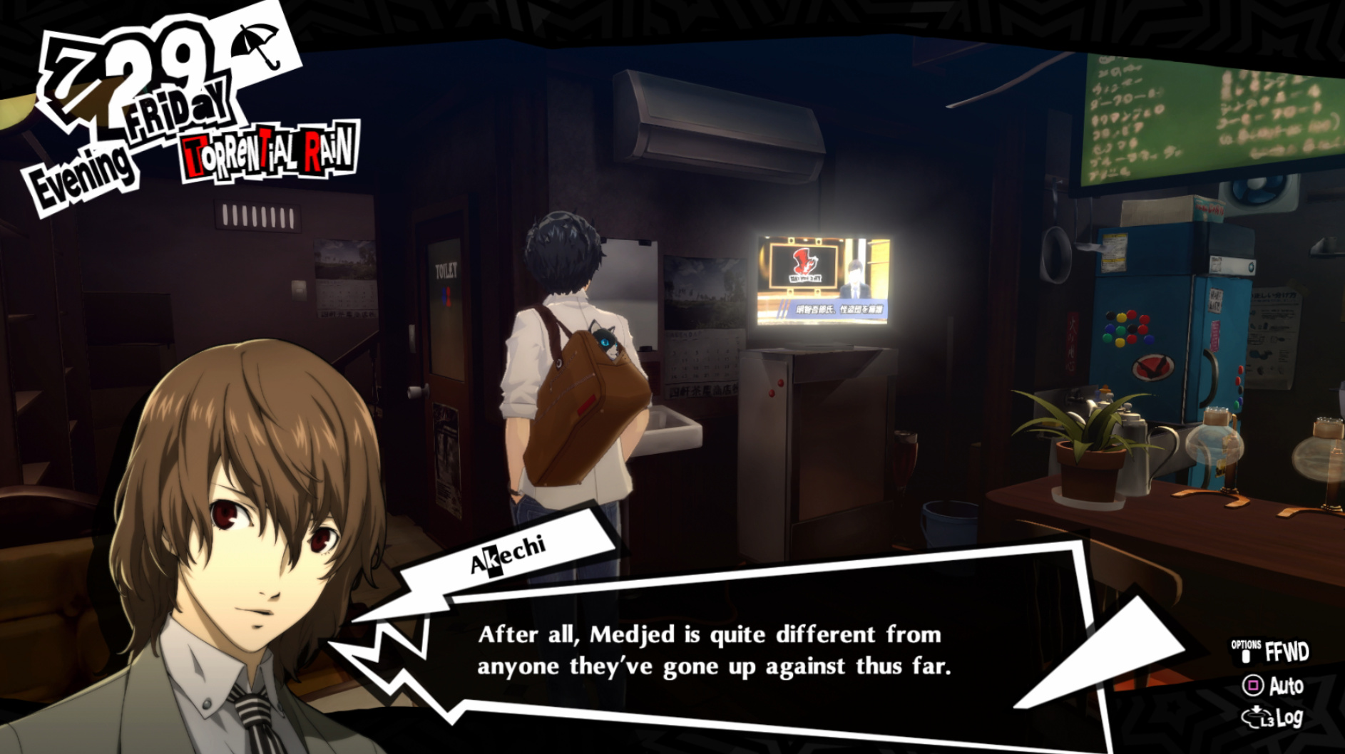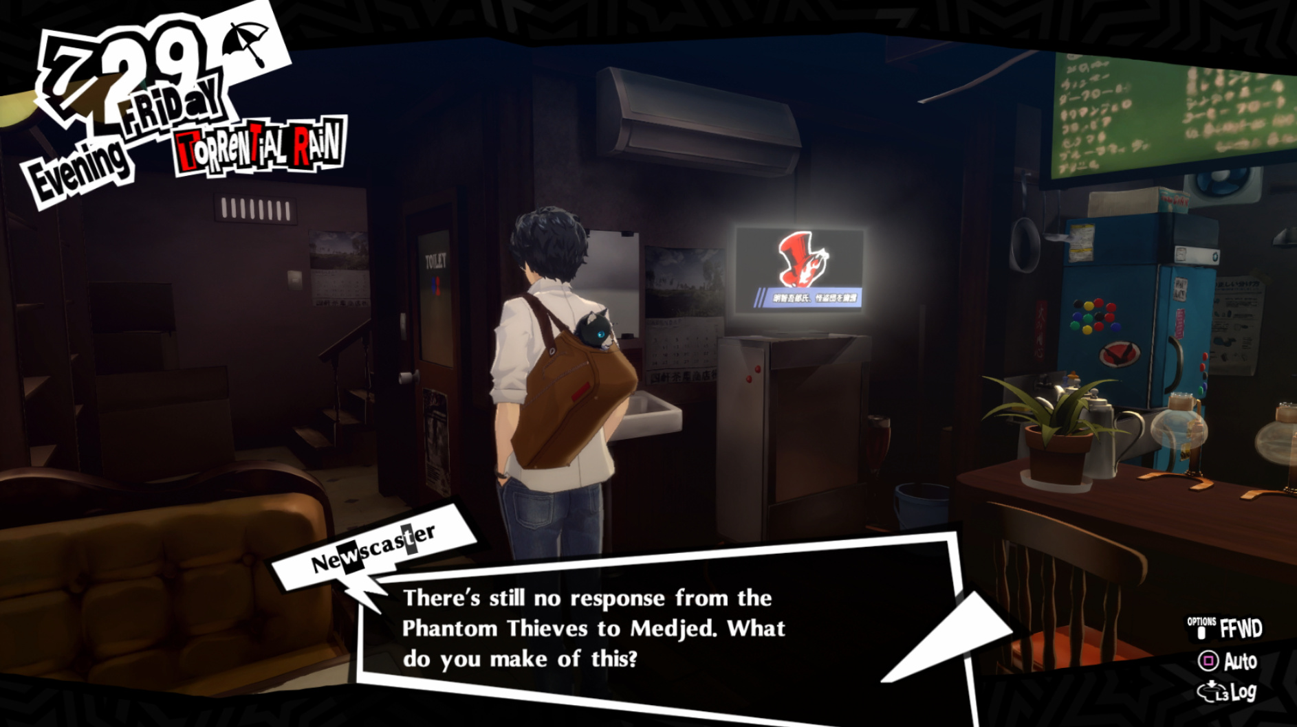 : I love how unrealistic this scene is. This is 2016, Ryuji would be reading that either on a laptop or on his phone. Anyway, we get five points to Guts and three to Ryuji’s confidant.