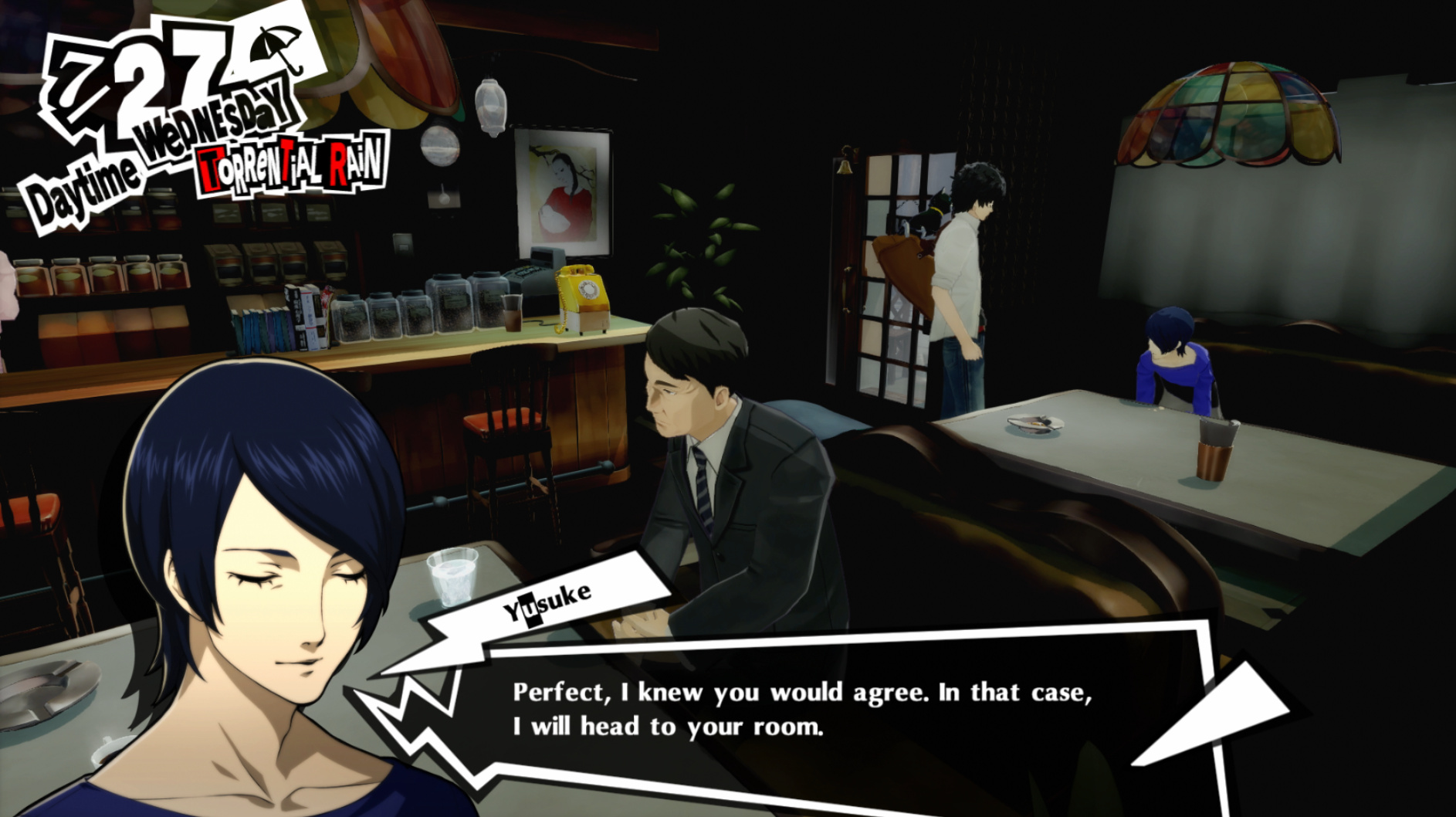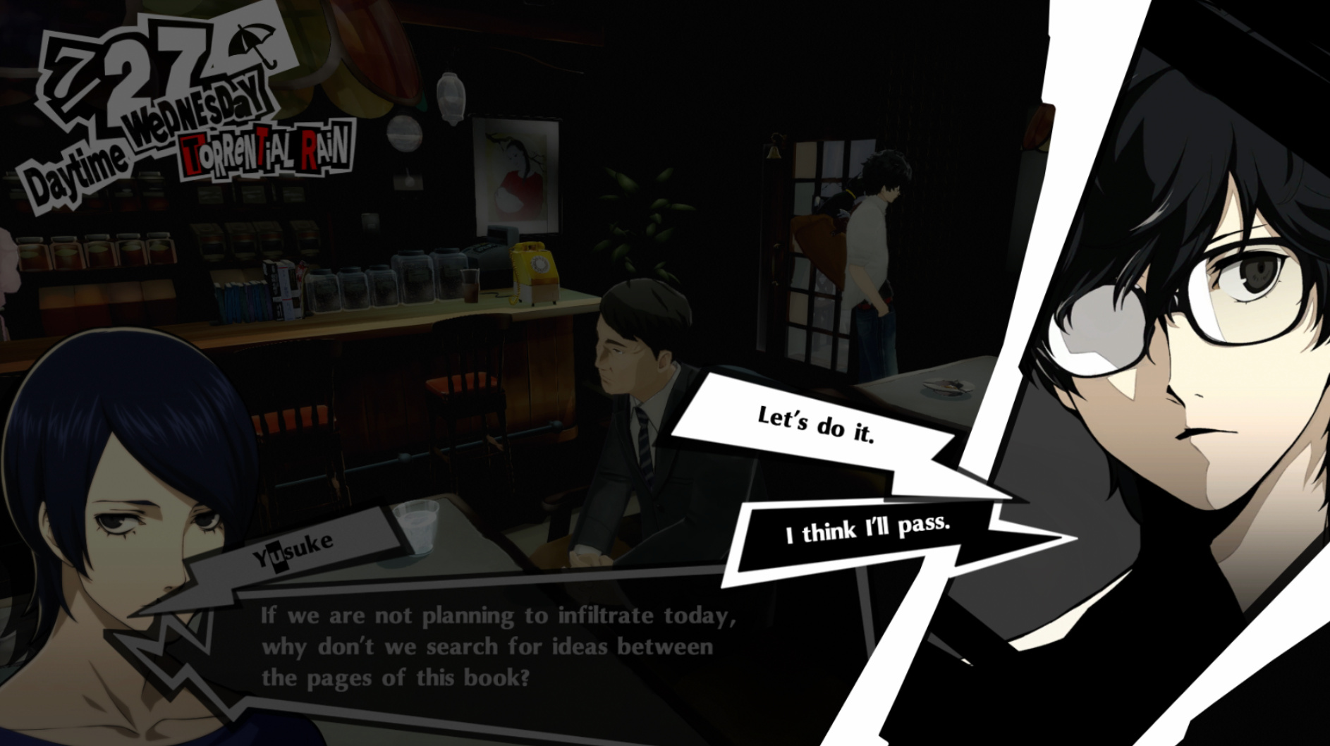 : During scenes like these, we can ask whoever Joker’s with to go get coffee or go to the bathhouse. Unfortunately, this is where I had to do Kawakami’s rank 10 scene.