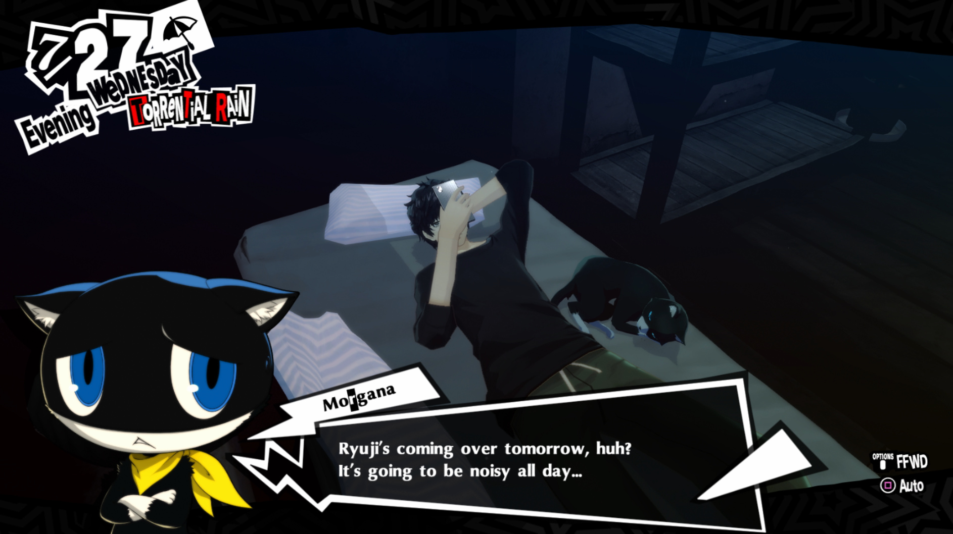 : Joker reaches a hand out. “Wait. Put her on speakerphone.” Ryuji starts sweating, as he too is a secret orphan.