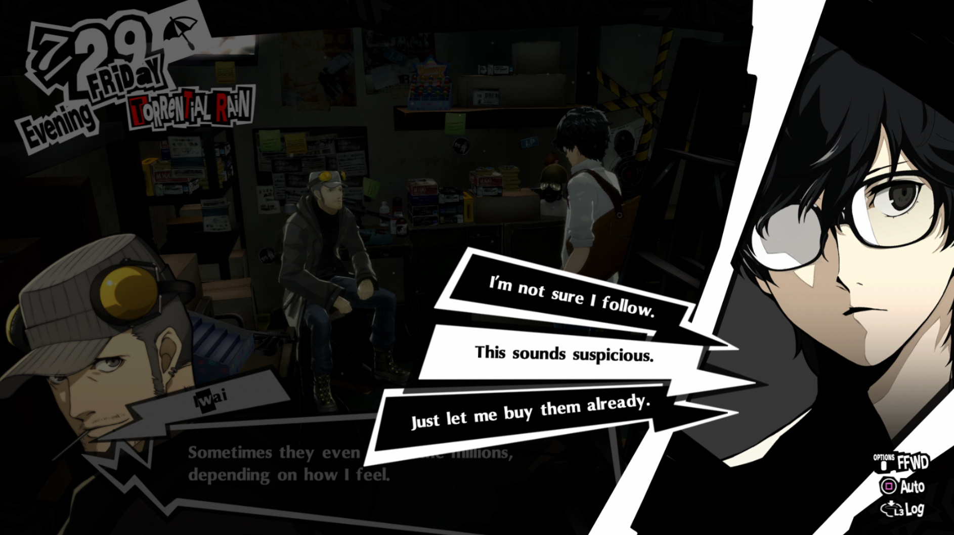 : We’re going to start Iwai’s confidant tonight, but first.. shopping time.