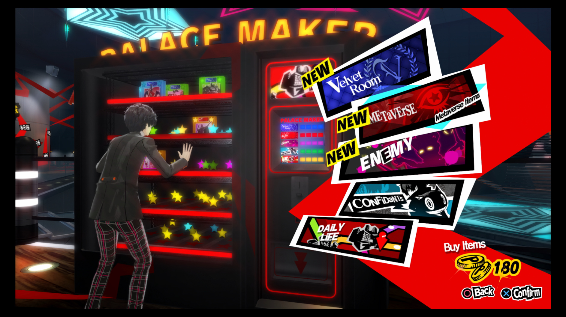 : You can spend the medals at the Palace Maker machine, which pretty much directly confirms that this is Joker’s Palace. The stuff in “Confidants” only unlocks when you max a confidant, and the stuff in Daily Life requires doing a whole bunch of stuff we have no reason to do.