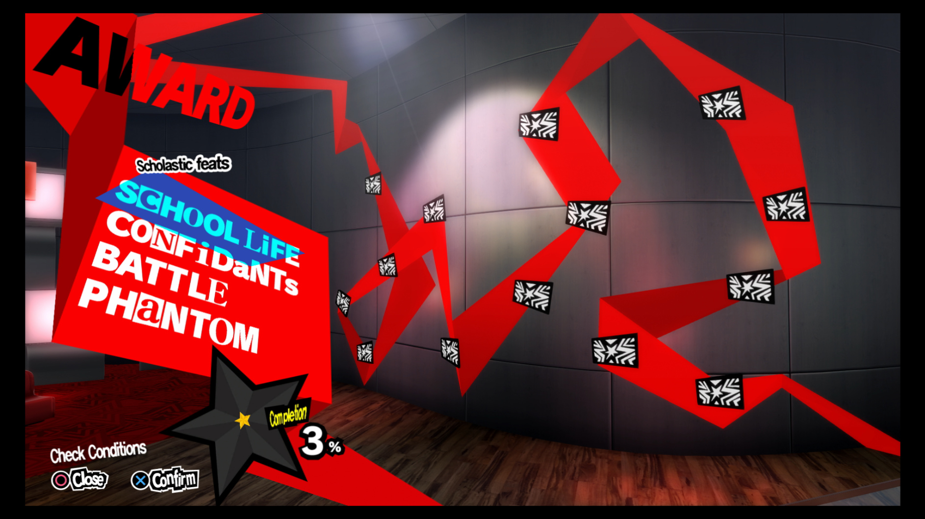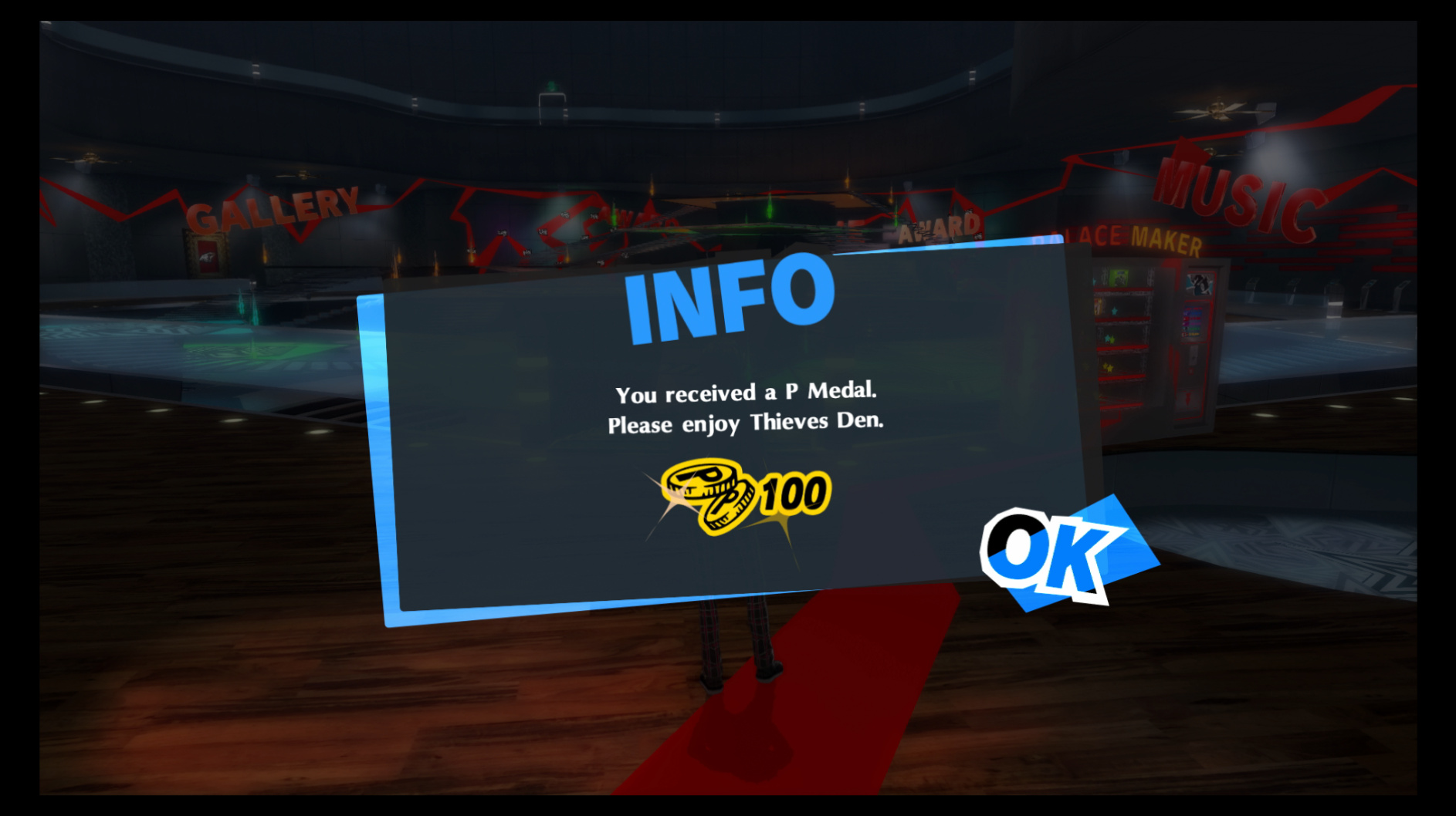 : P Medals are currency you can use to buy stuff to decorate with. You get them for doing certain achievements, and getting all the achievements gives you a thing that makes it so security level never goes up and allows you to summon any Persona for free from the compendium. This requires a minimum of two complete playthroughs and requires killing four optional super-bosses which I am not going to do. Maybe if it had allowed me to import my save data from the base game.
