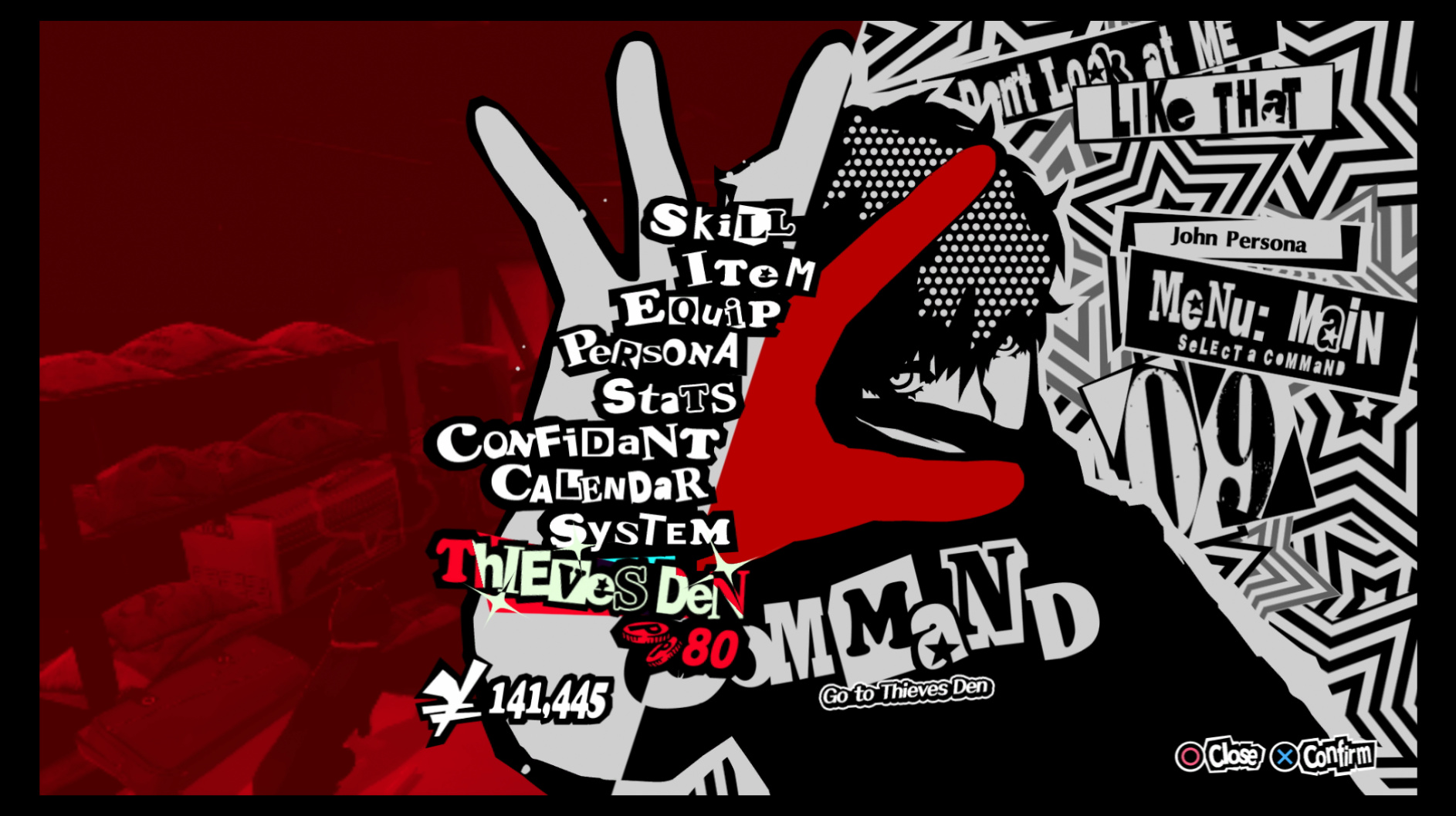 : It’s time to go to the Thieves Den for the first time. You might notice that the menu tells us we’re John Persona now. This is part of the reason I’m glad I didn’t name the character John Persona.